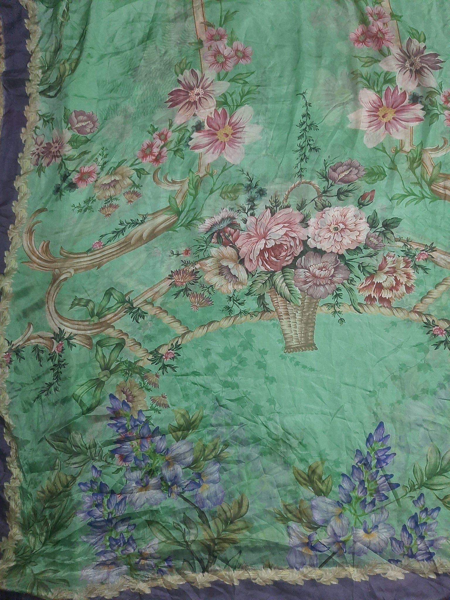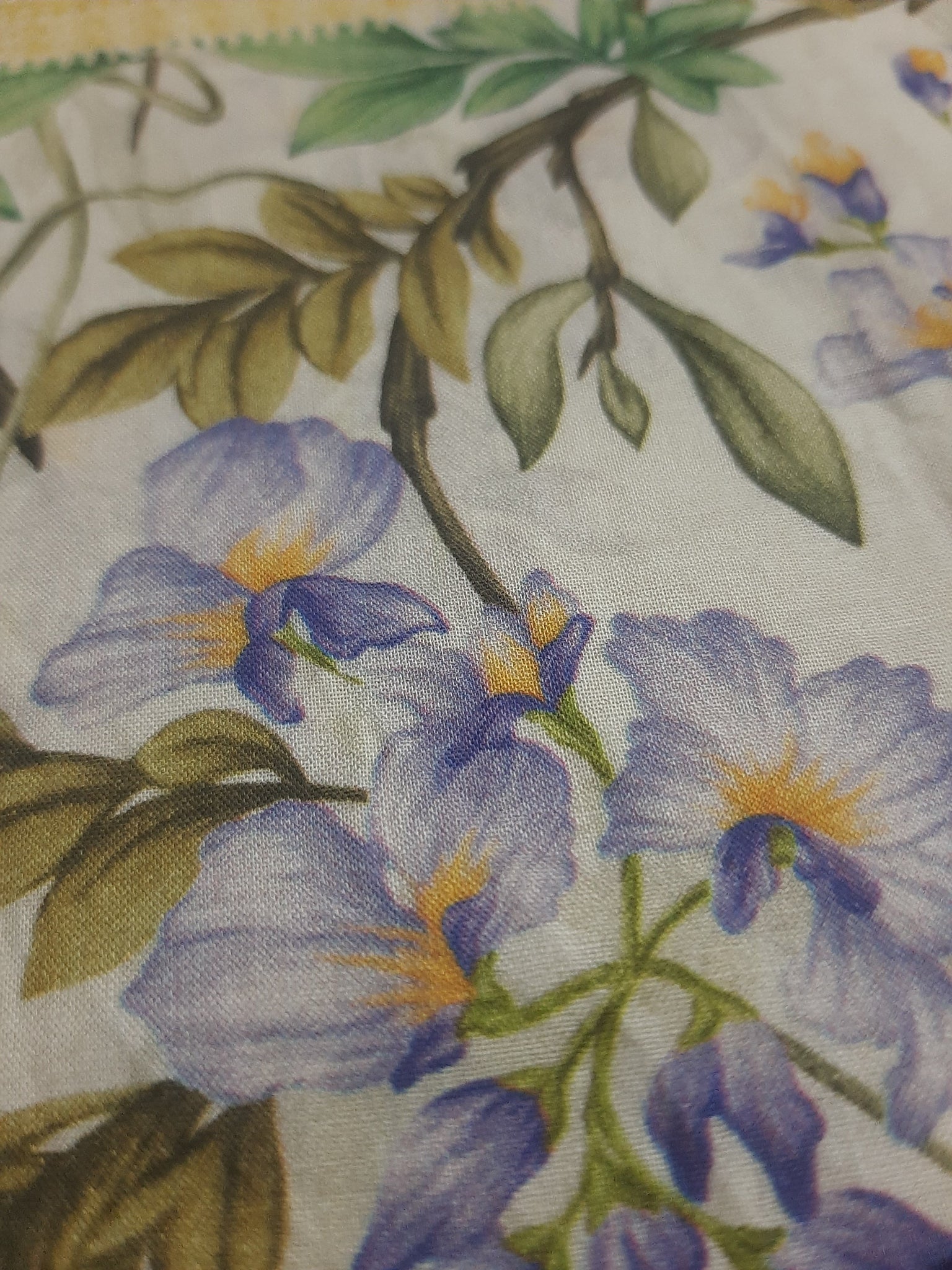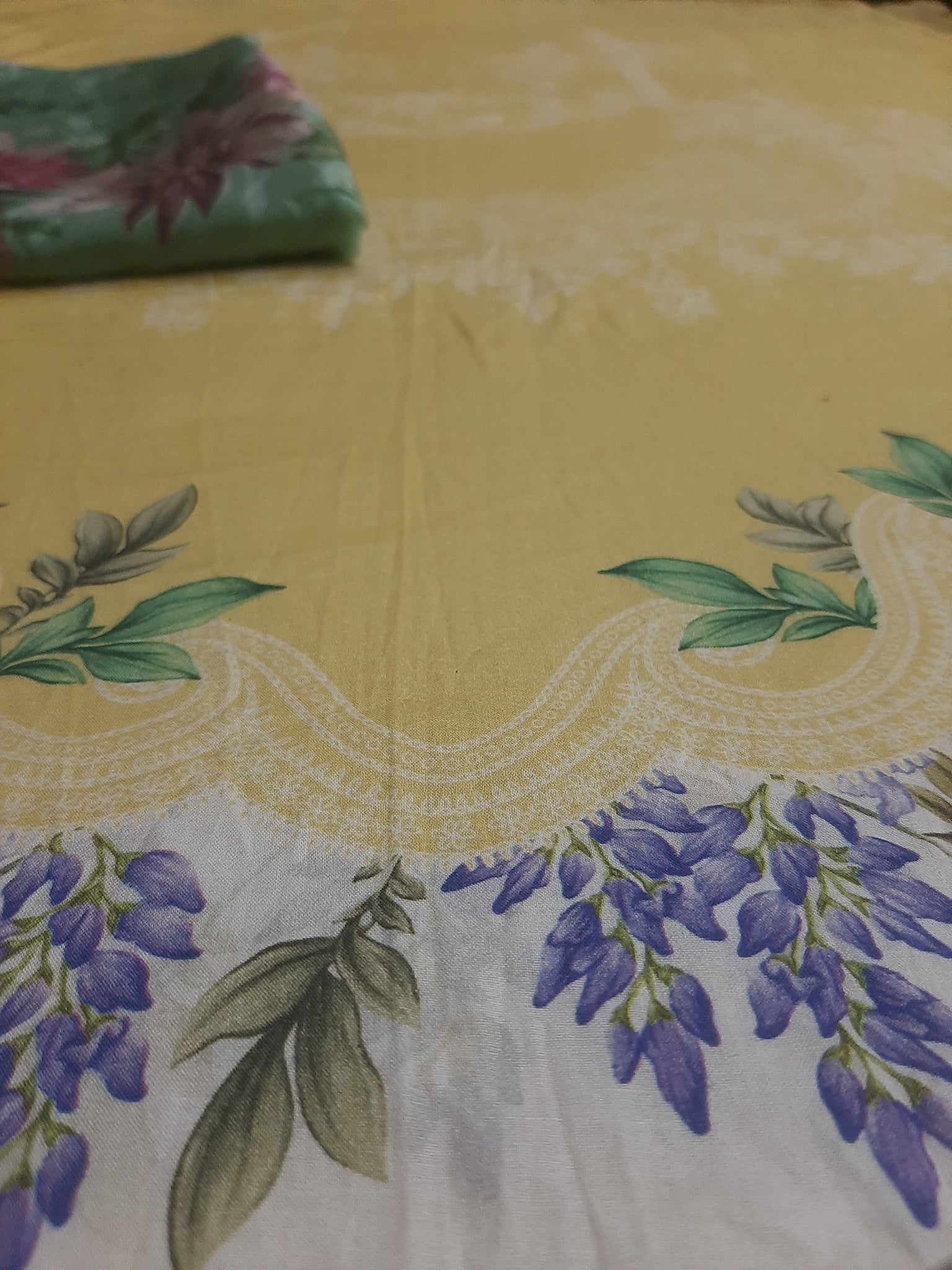 Fully printed shirt in lawn stuff, lighter in shade but open pictures are being reflecting dark.