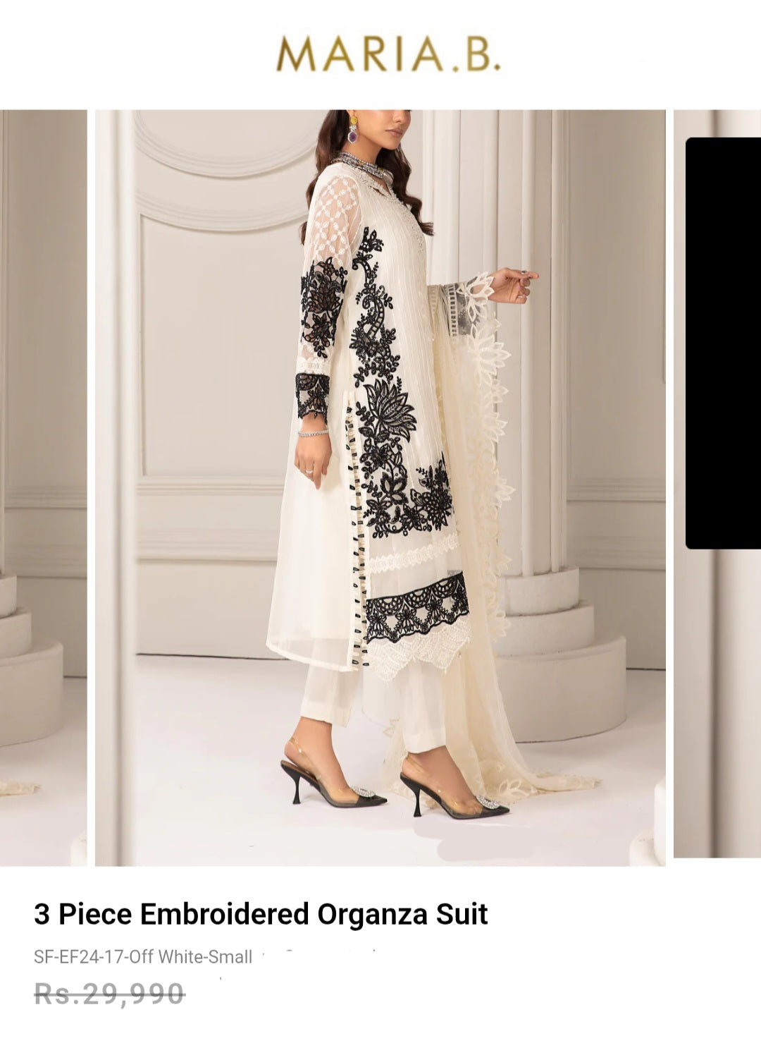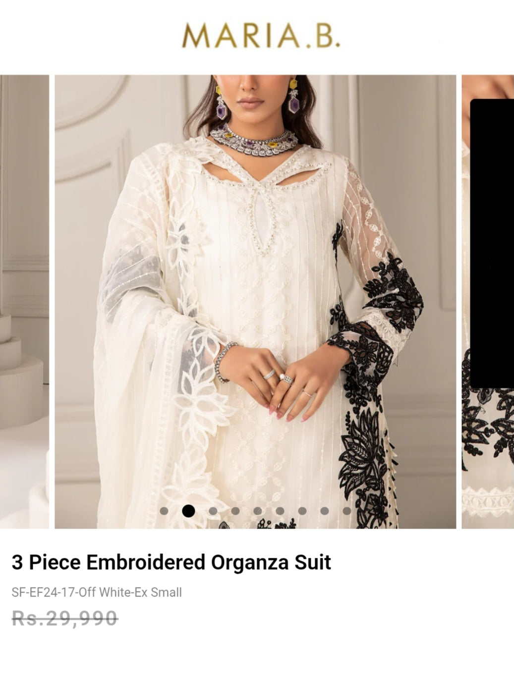 Exude sophistication with our 2-piece embroidered organza suit, featuring a mesmerizing white canvas artfully illustrated with eccentric floral imagery weaved by black and white threads and accented with delicate sequins and pearls that instantly captivate. This straight-fit trousers, making it a statement choice for al your summer soirees.