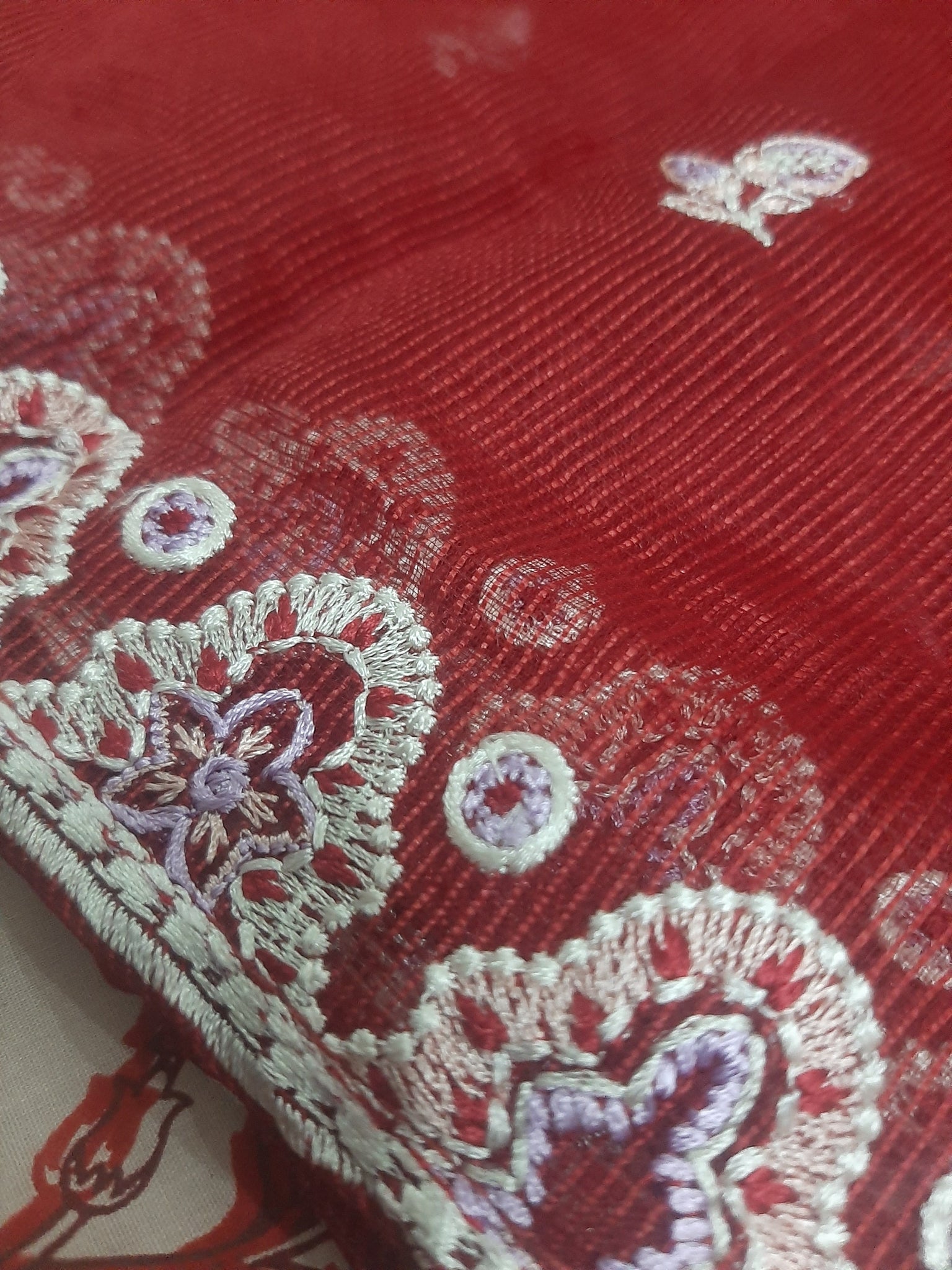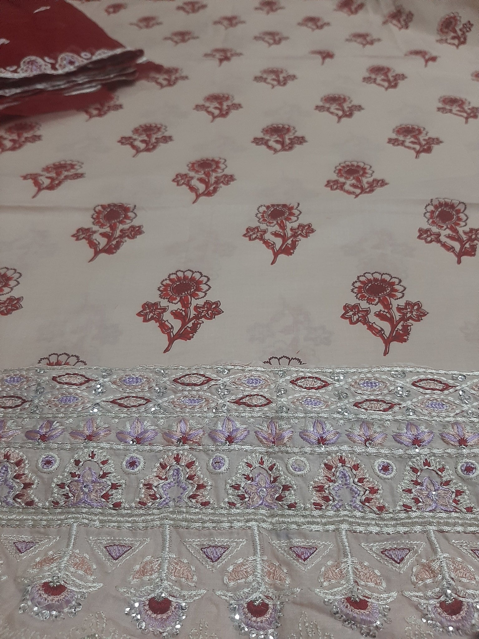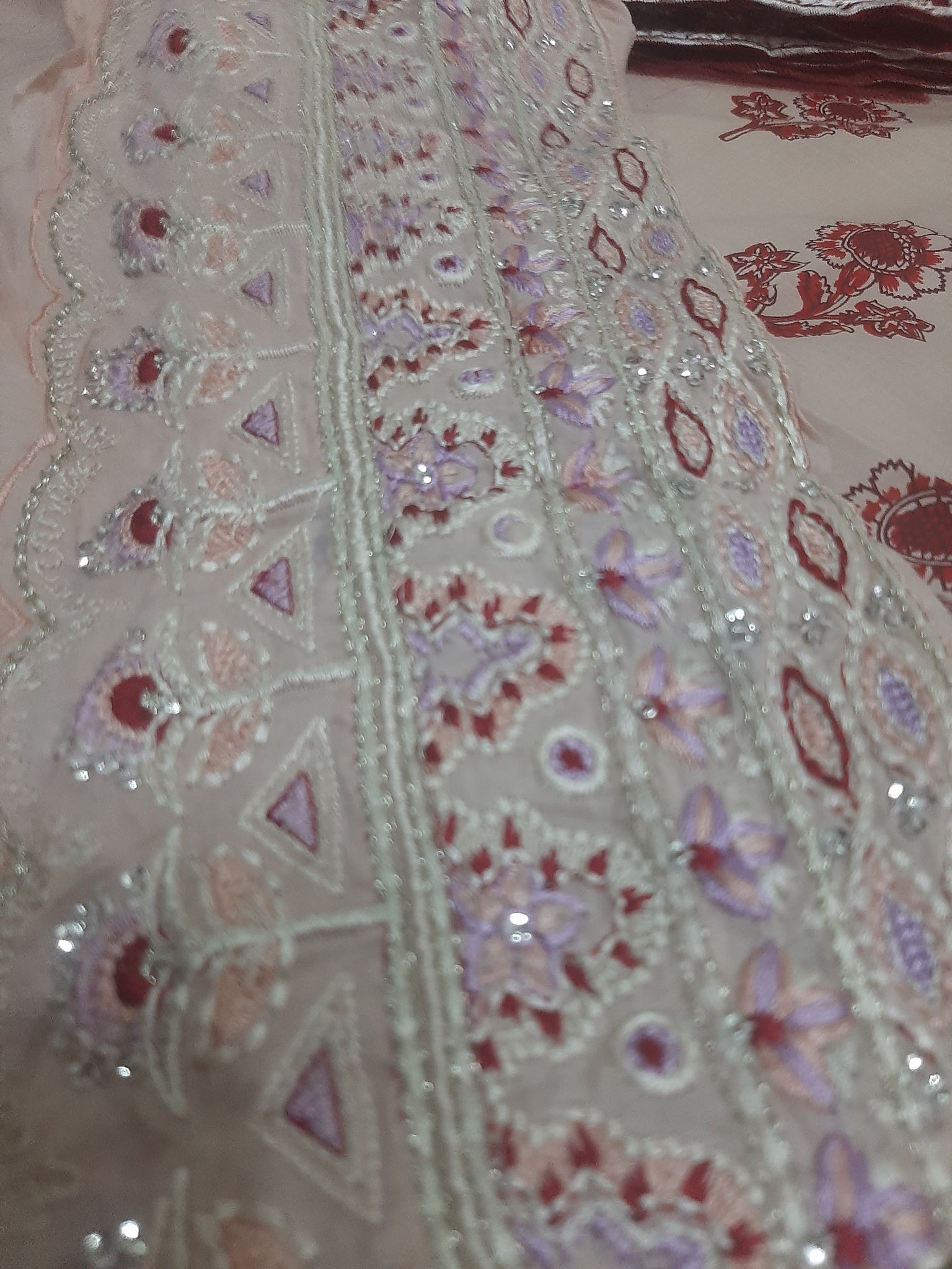 DUPPTA: 2- sided thread embroidered duppta border. Measurements is 2.75 yards semi stitched.