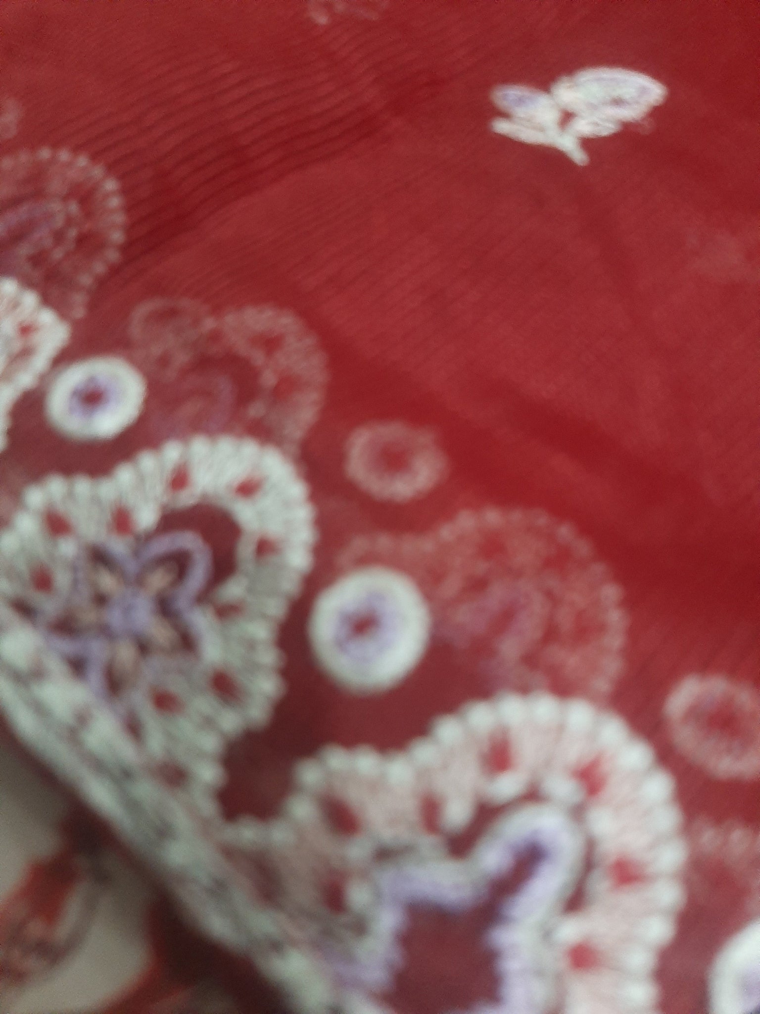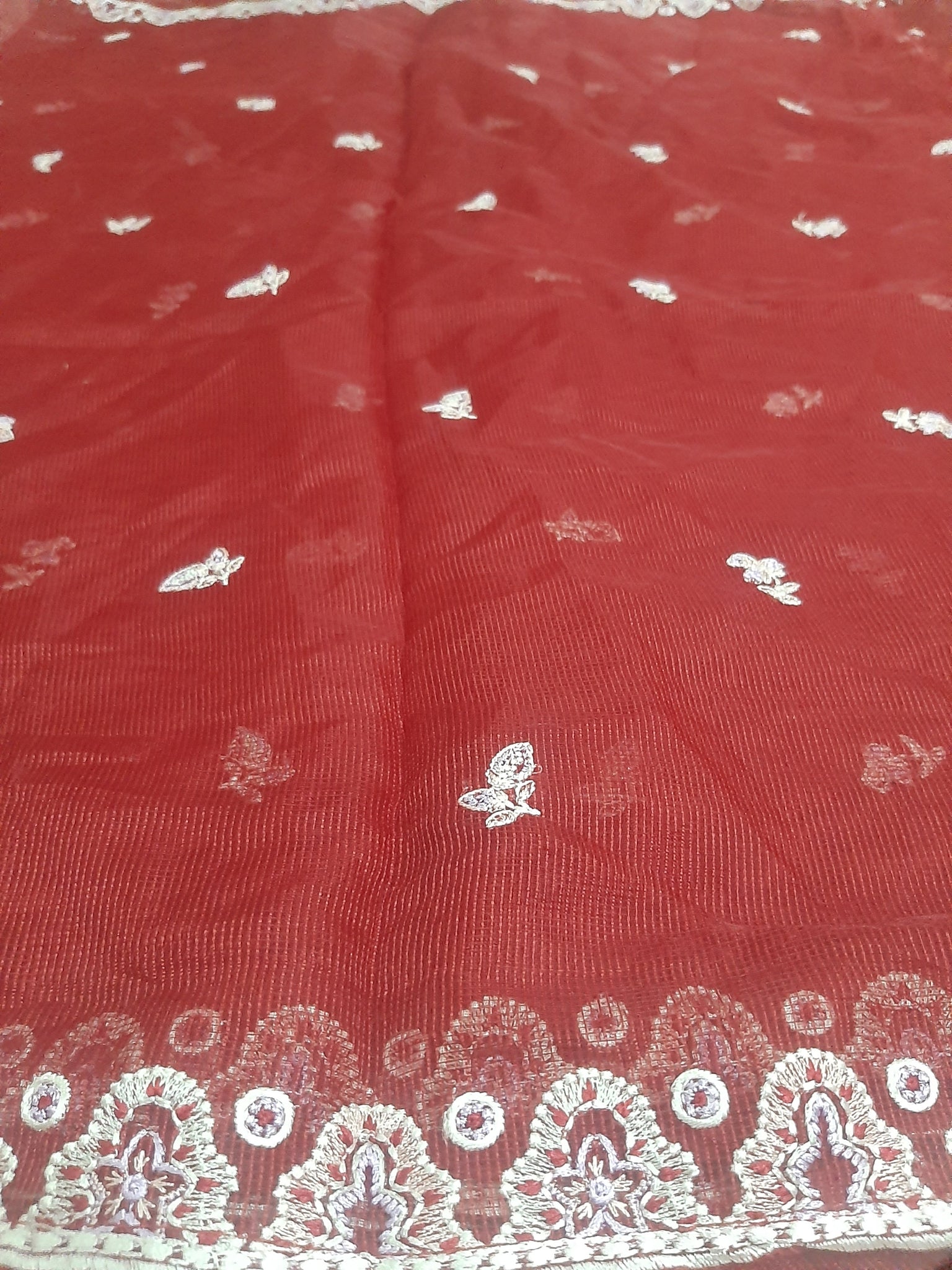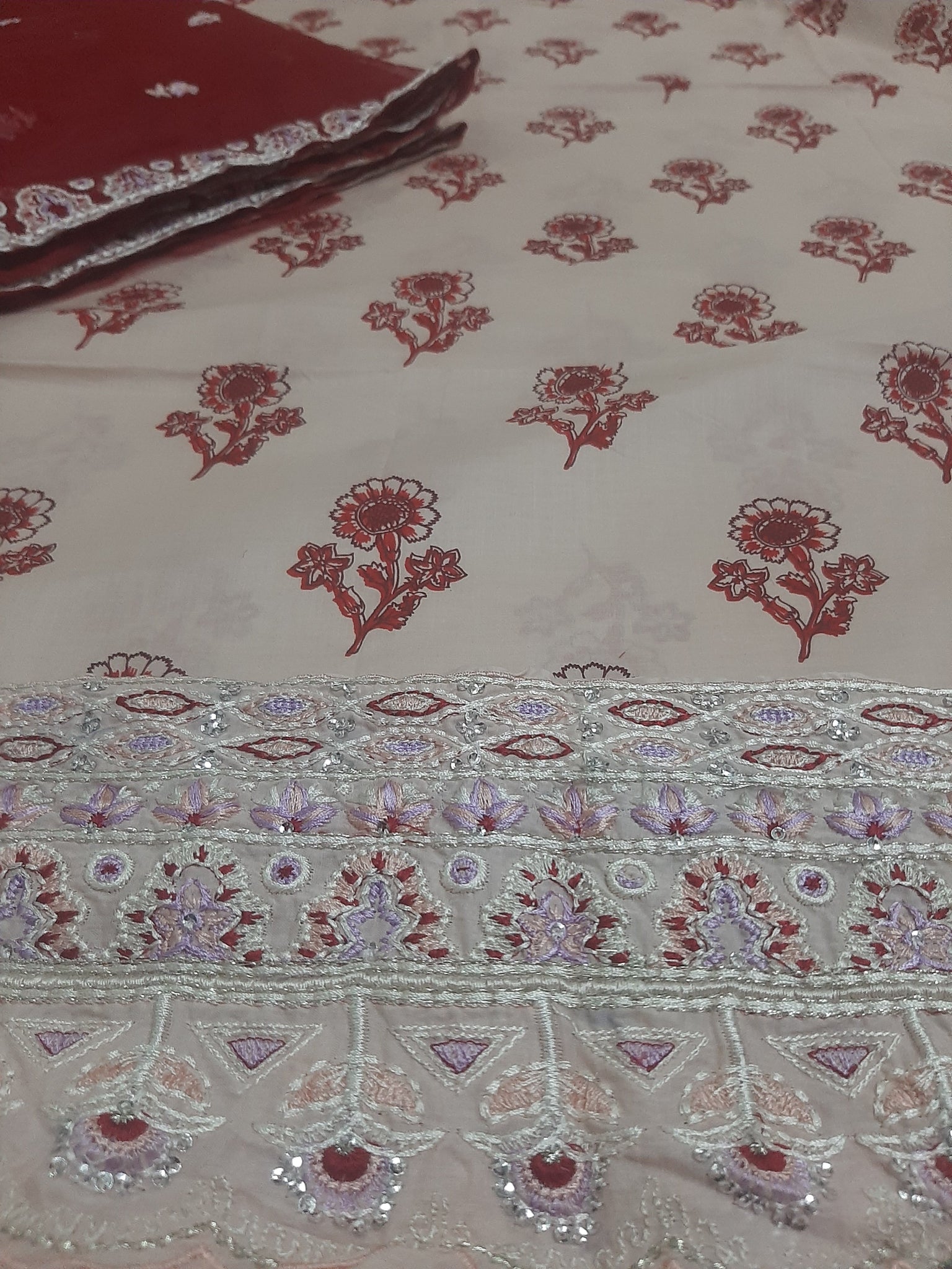 DUPPTA: 2- sided thread embroidered duppta border. Measurements is 2.75 yards semi stitched.