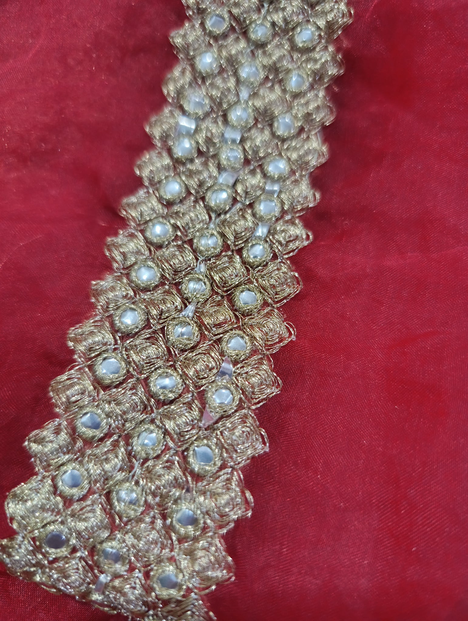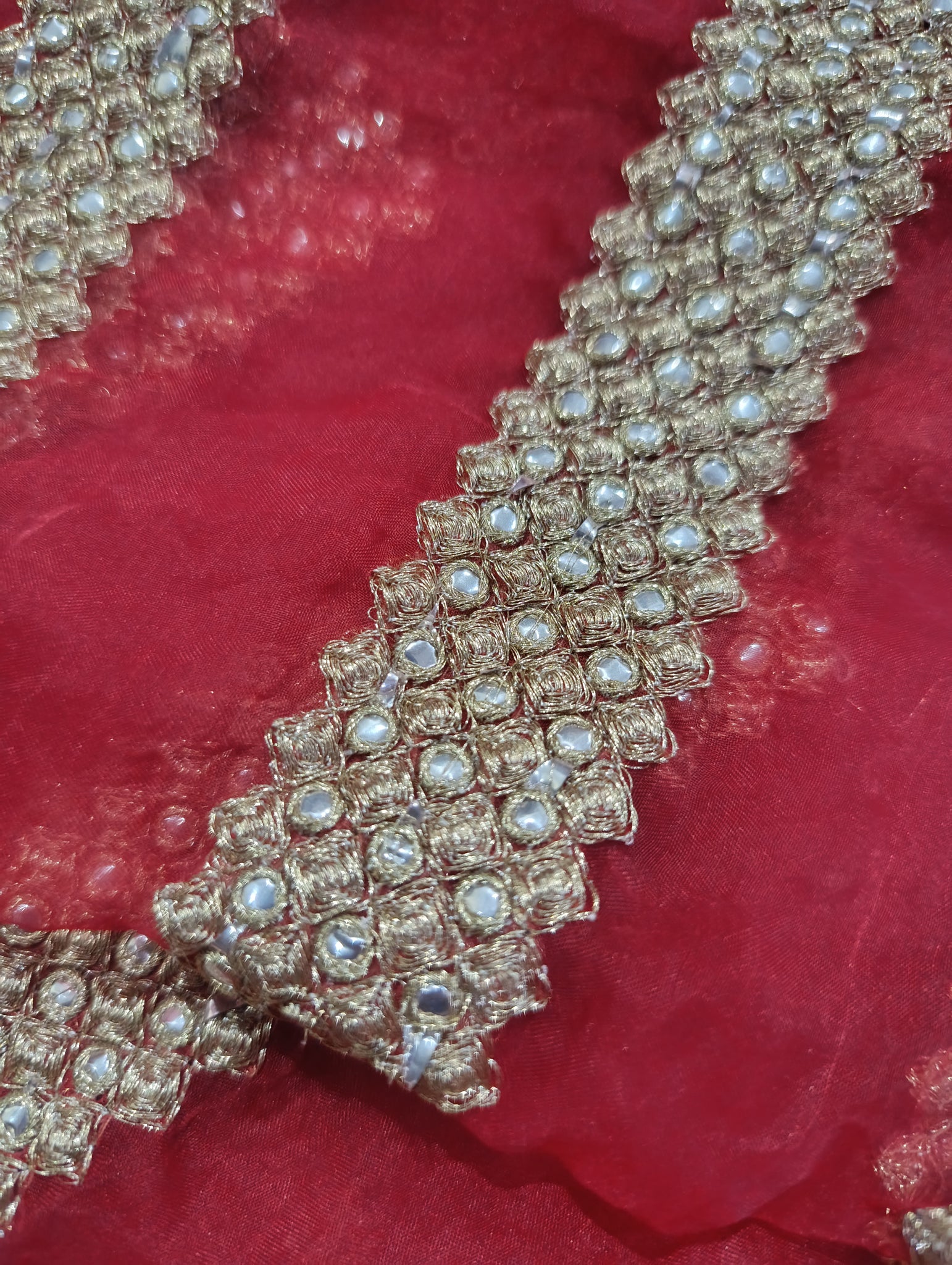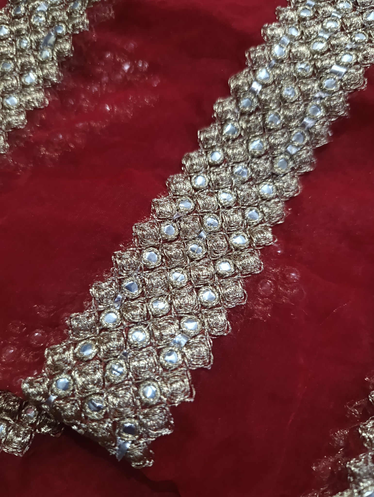 Fully thread embroidered with golden tilla and silver foil work.