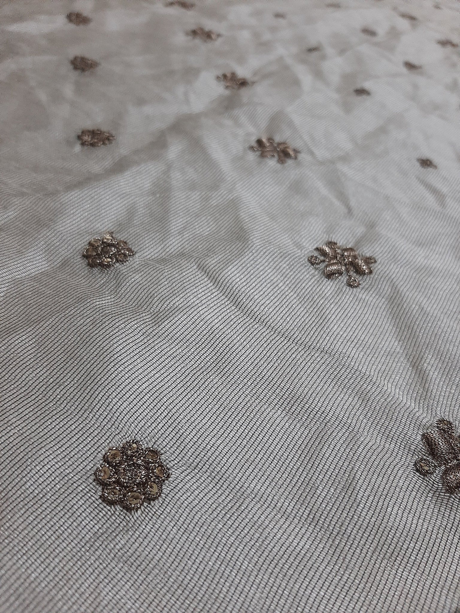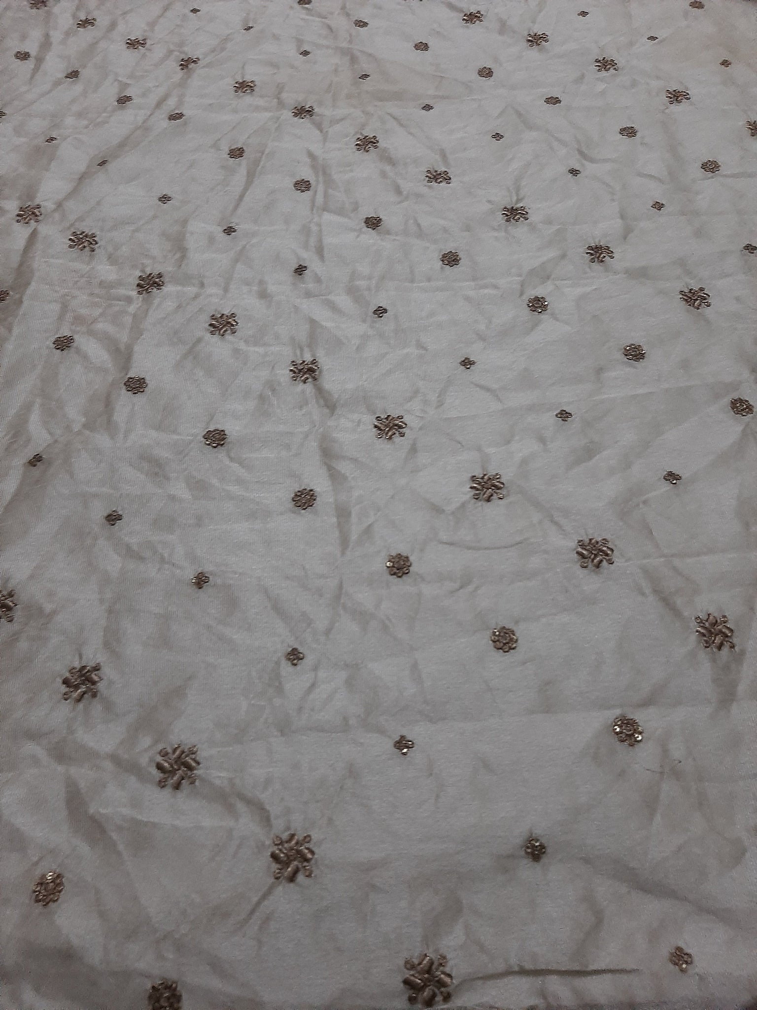 Fully copper tilla embroidered with regular two style motives as model is wearing in the sleeves.