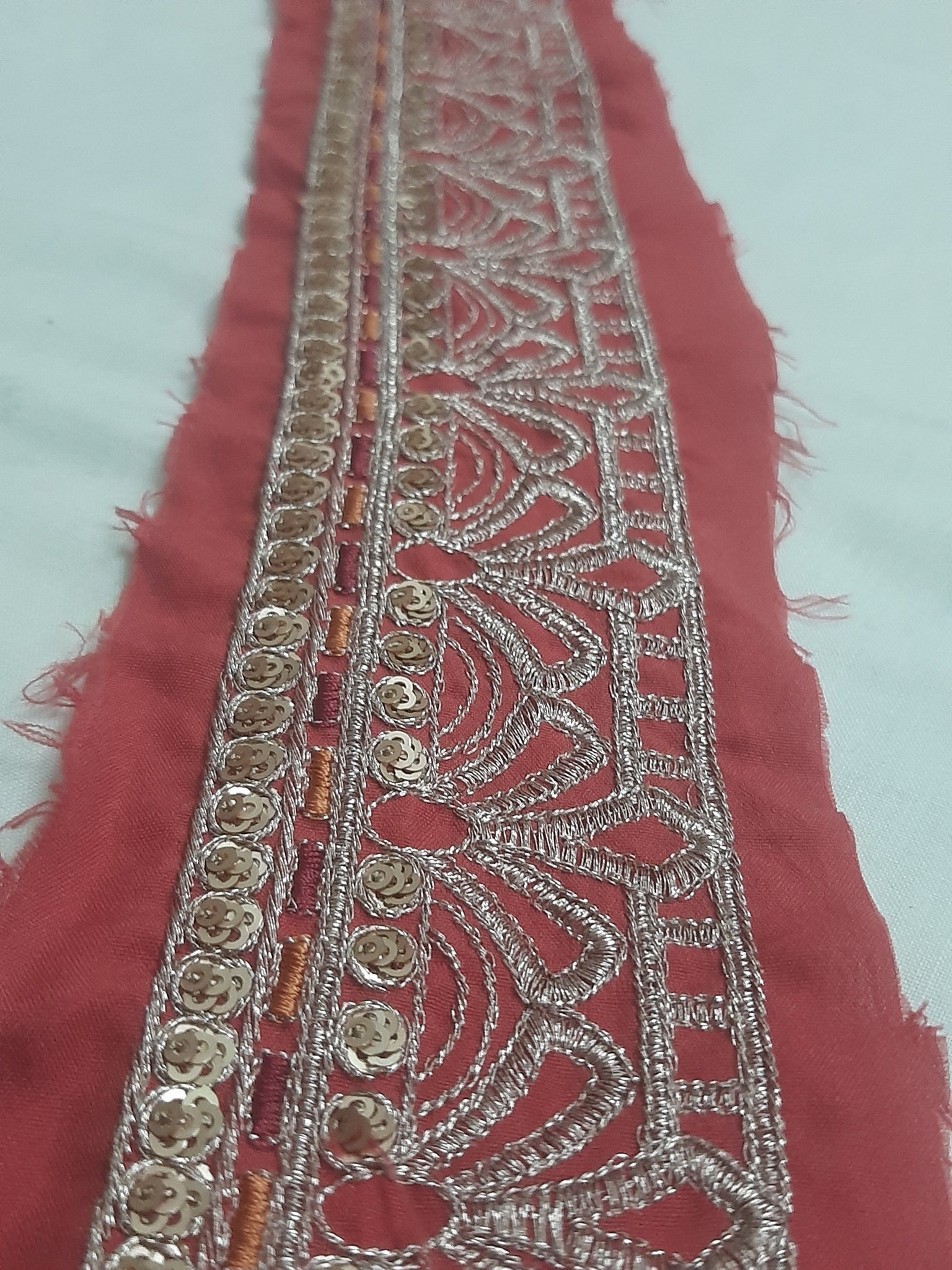 Heavily thread and golden tilla embroidered with sequins embellishments