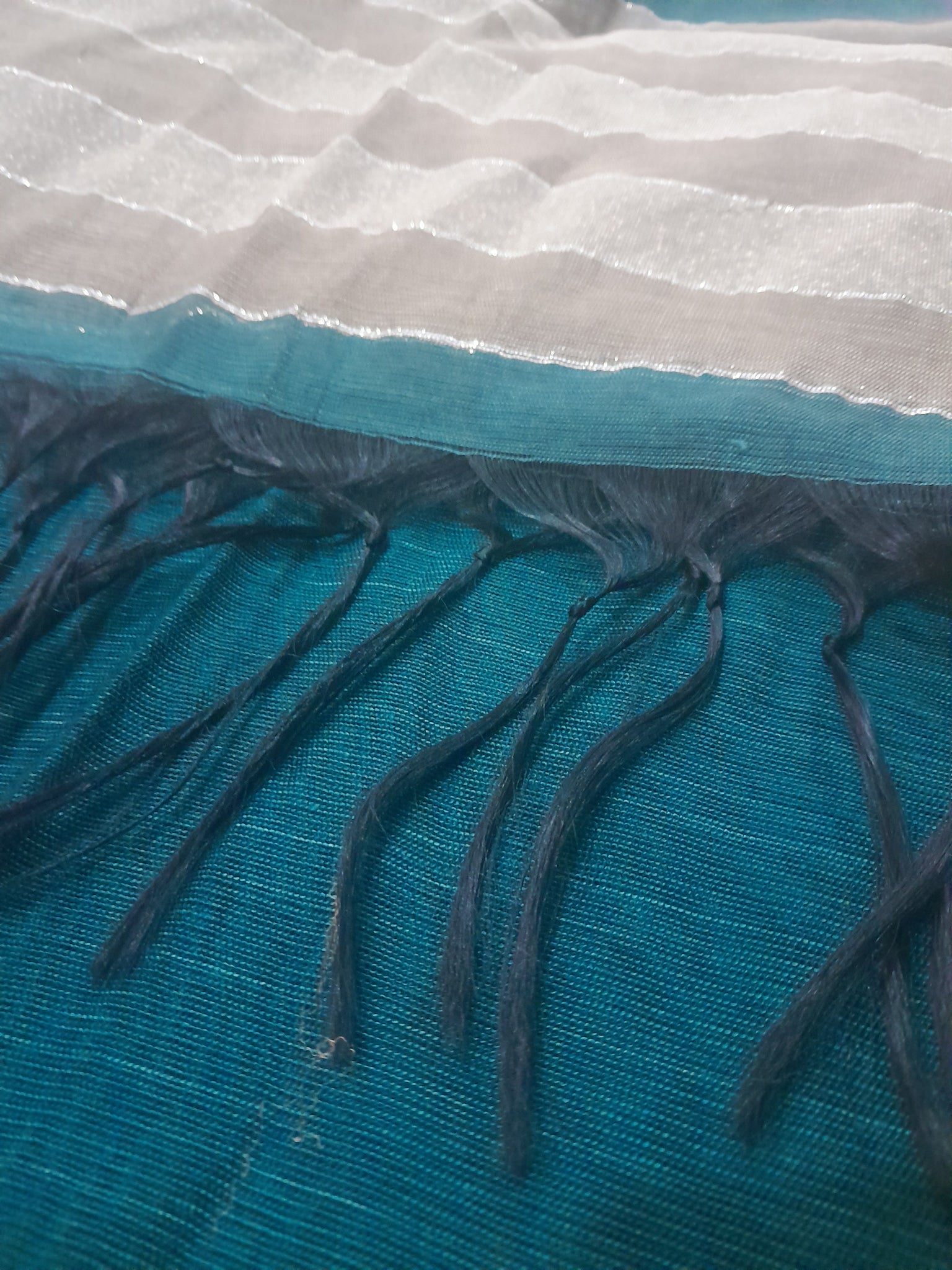 Soft cotton net with 2 sided machine stitched and tussle ahd zari on both pallus