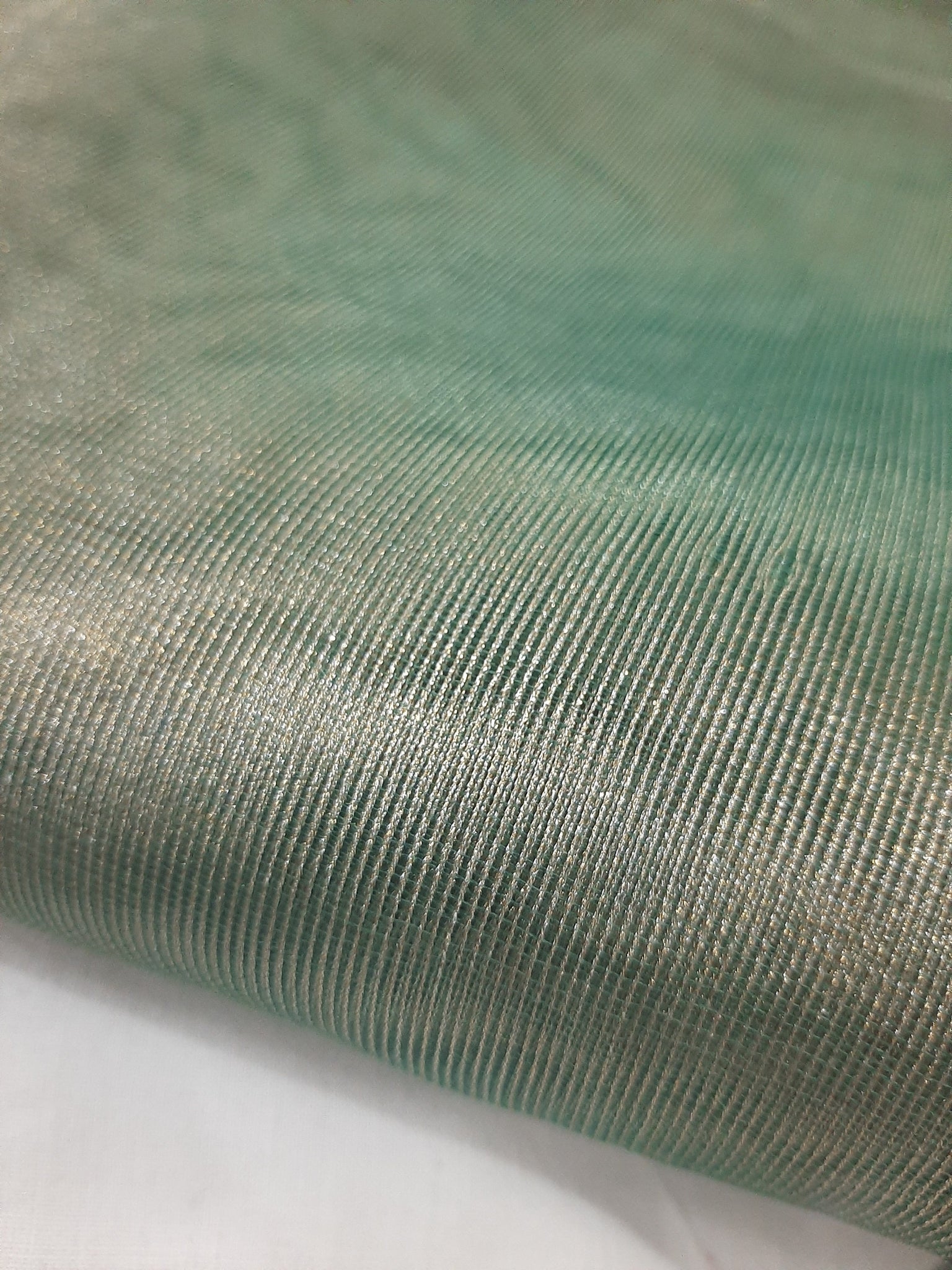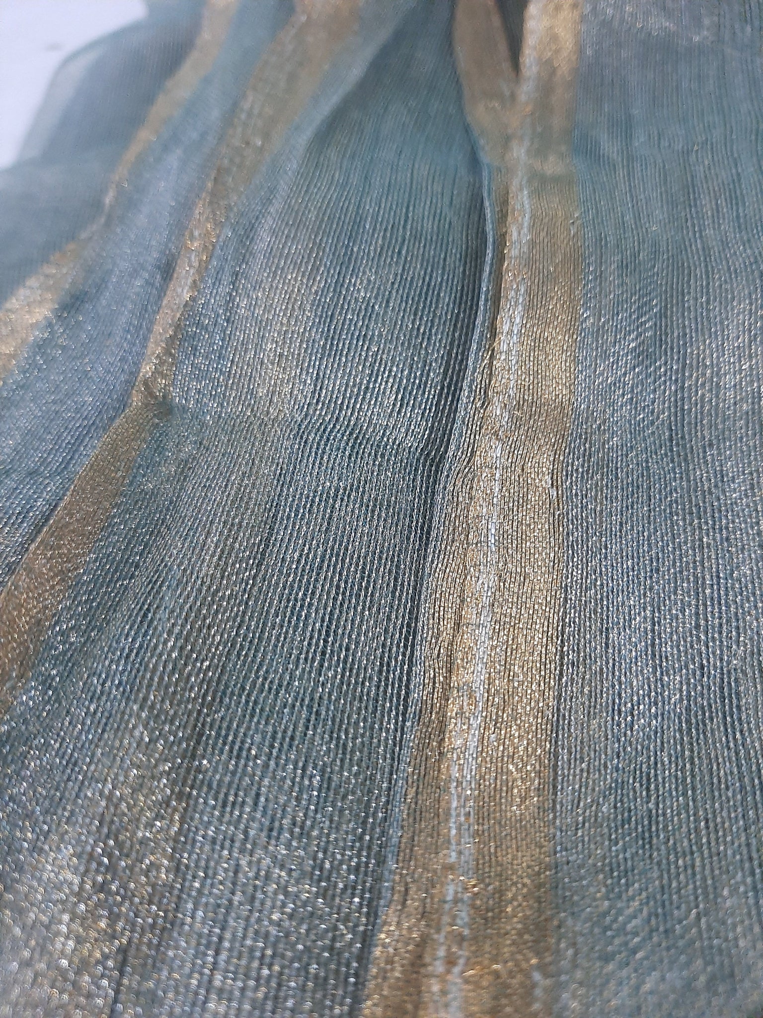 Shimmery cotton net stuff light gold shimmer with golden kinari.