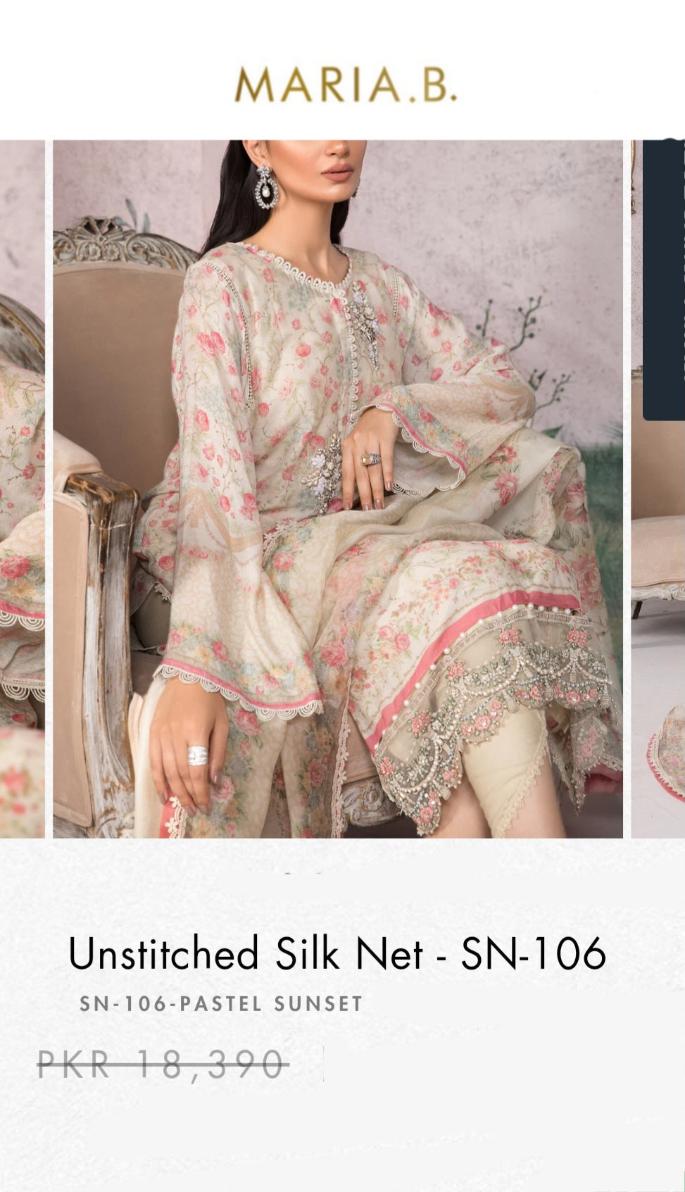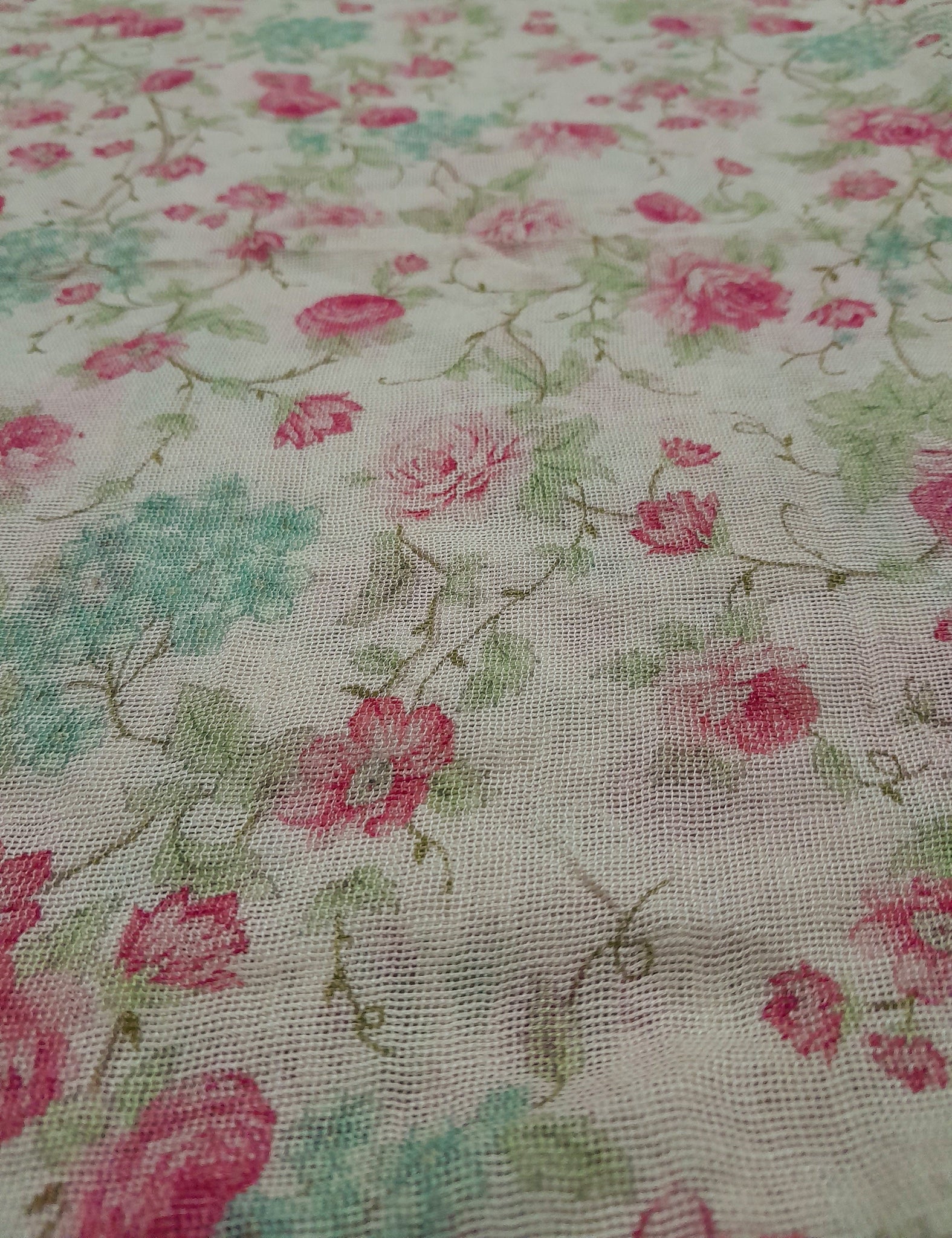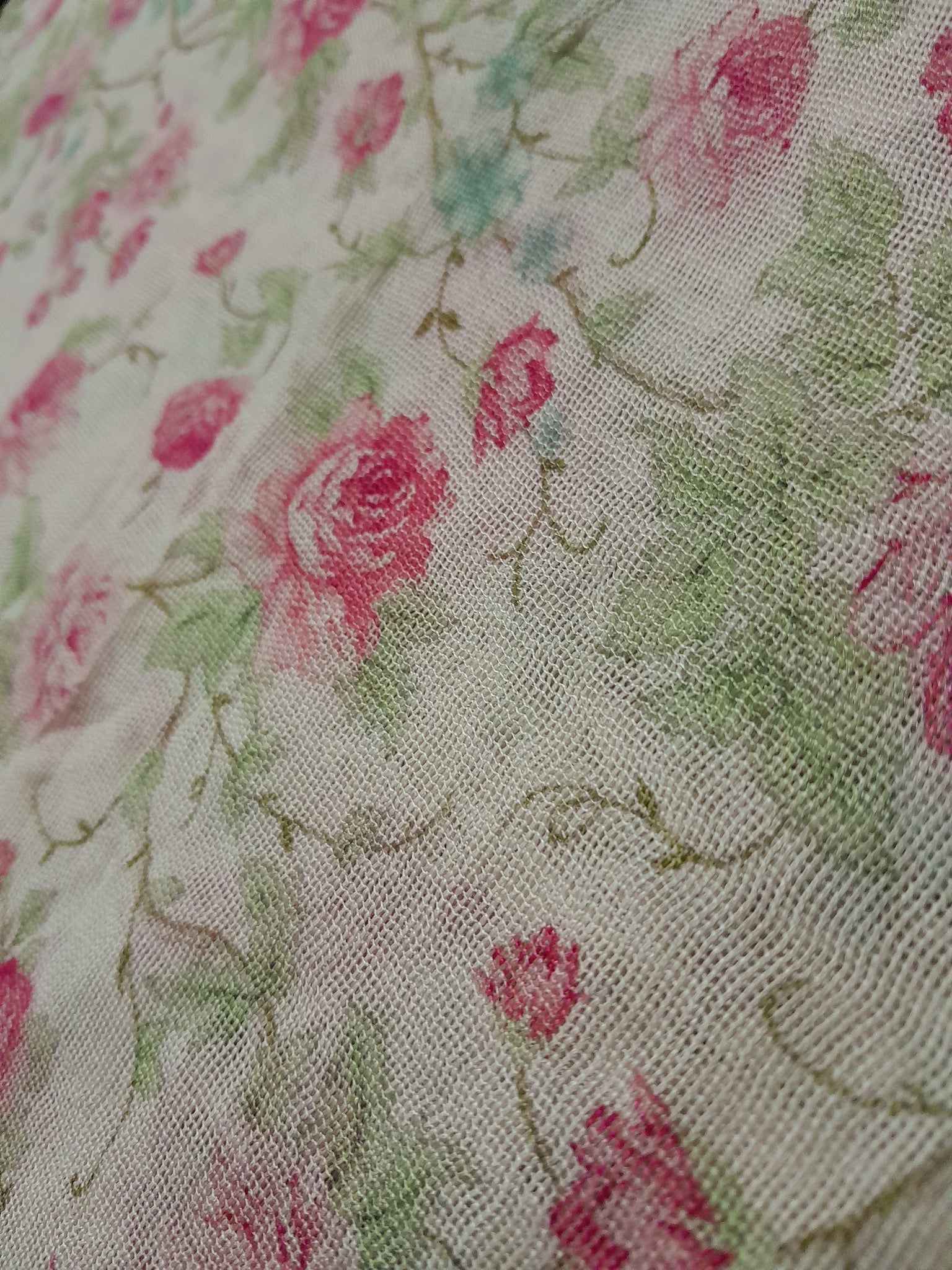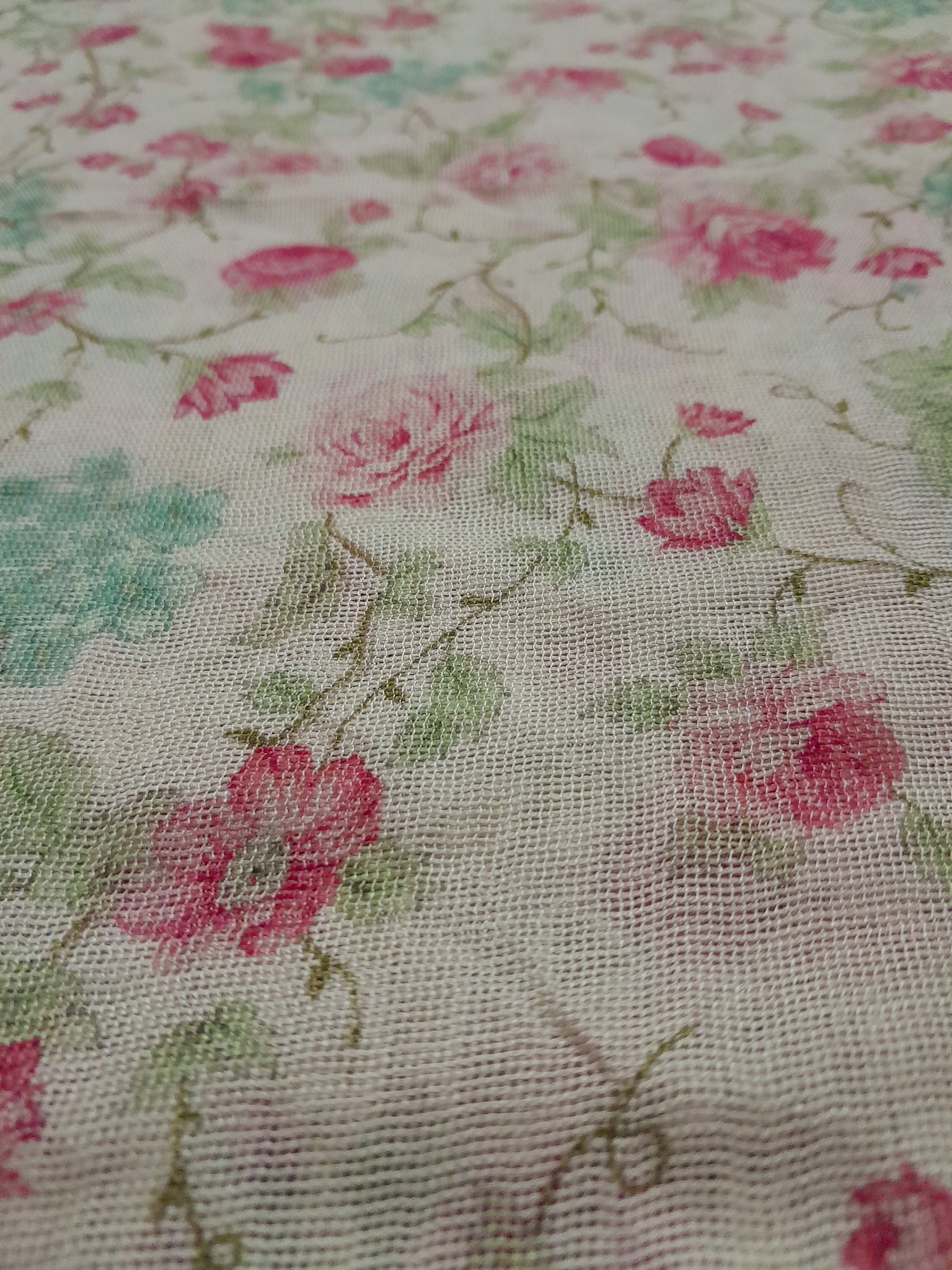 Fully floral printed front, back & sleeves with border same design overall on pure silk net fabric.