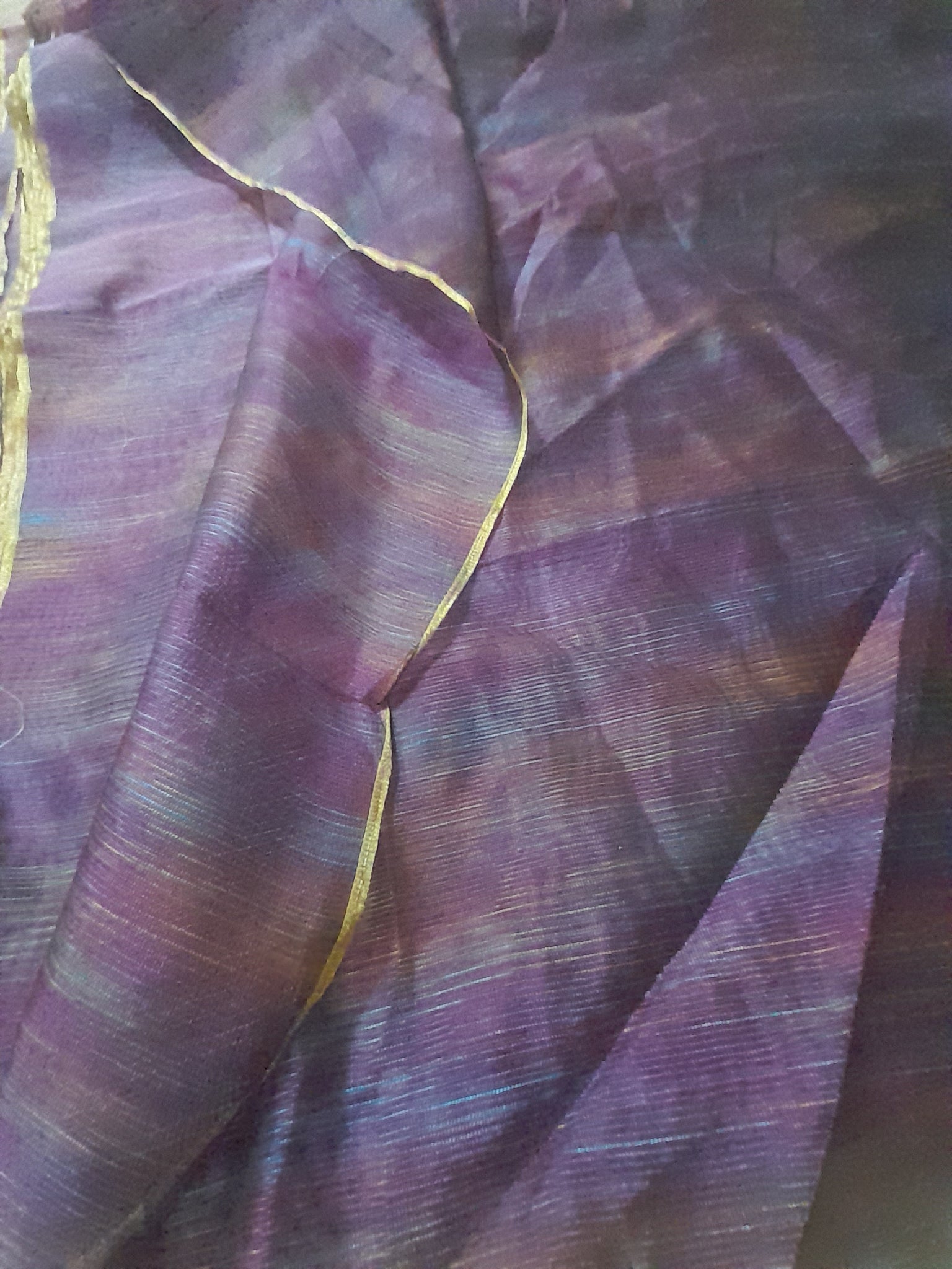 Cotton net weaved with different colours of thread seems like Multi / Rongali duppta.