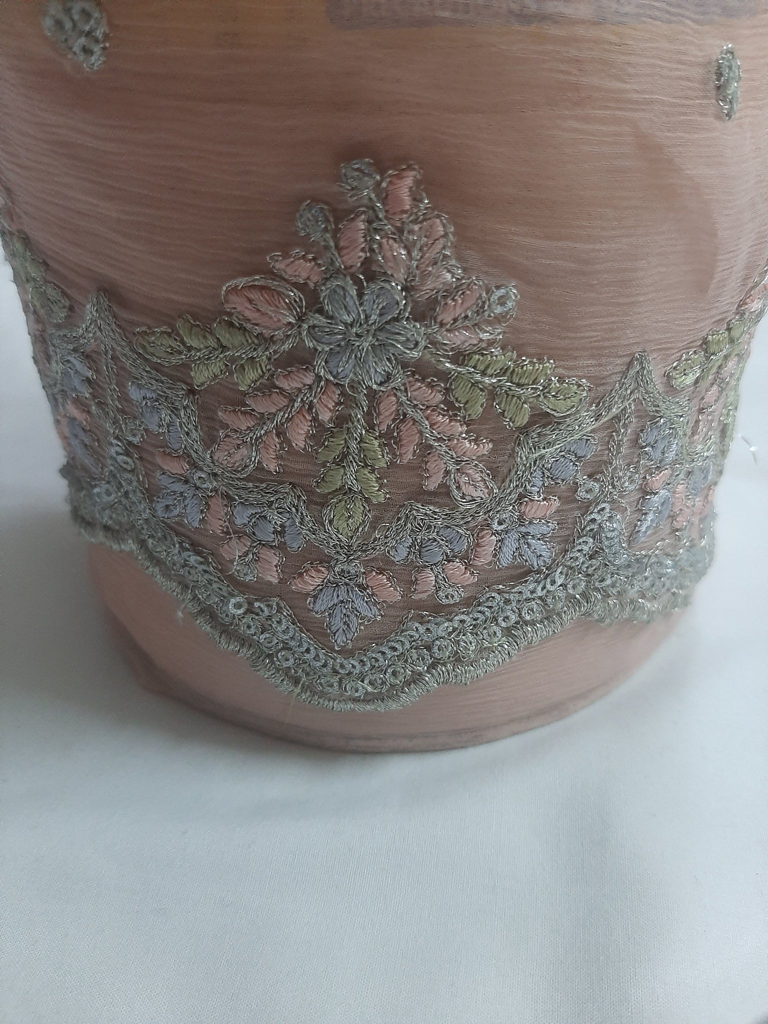 Fully thread with silver tilla embroidery and silver sequins embellishment.