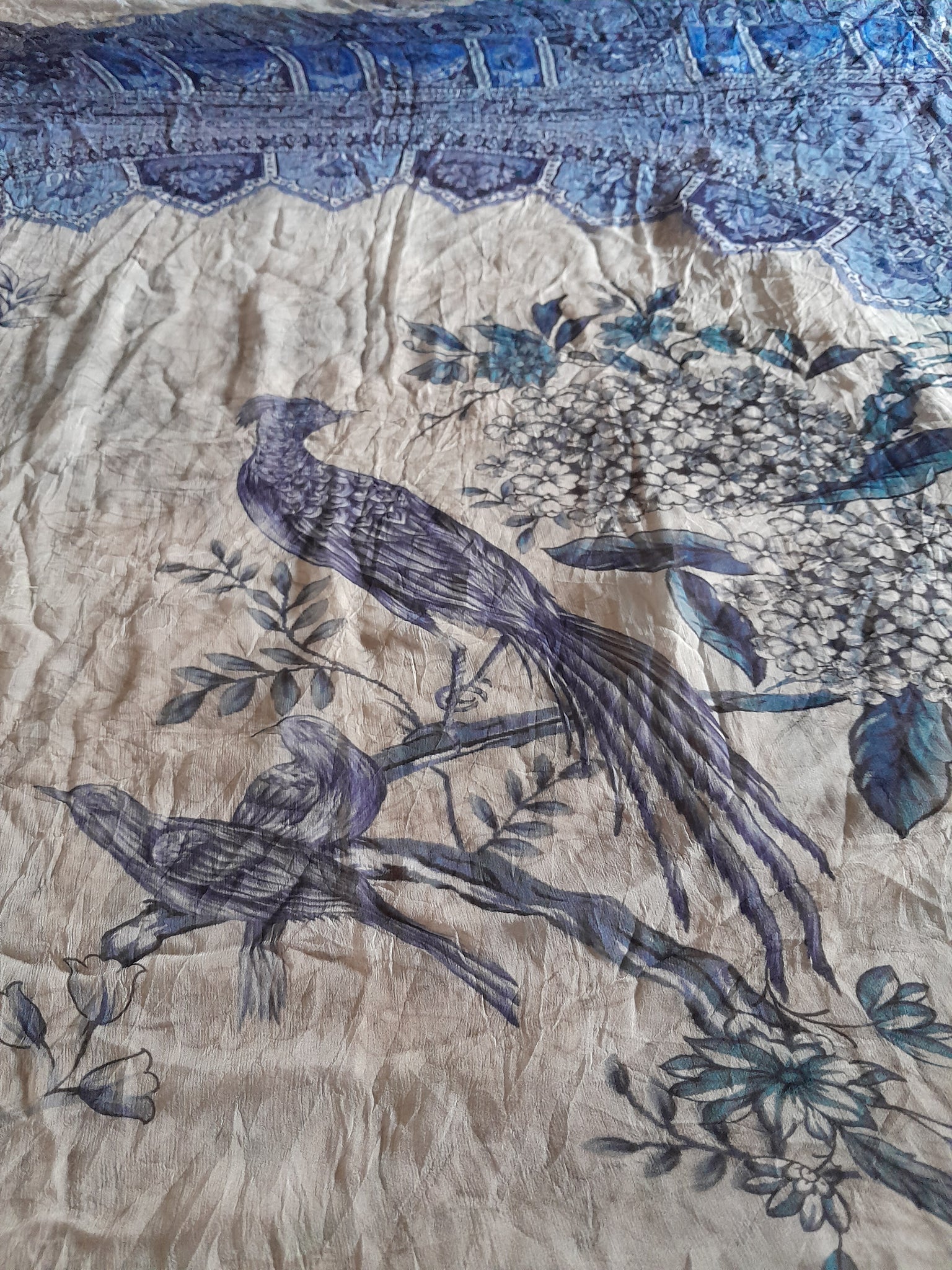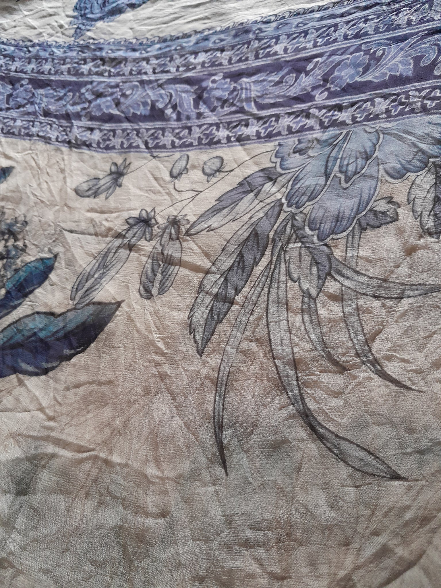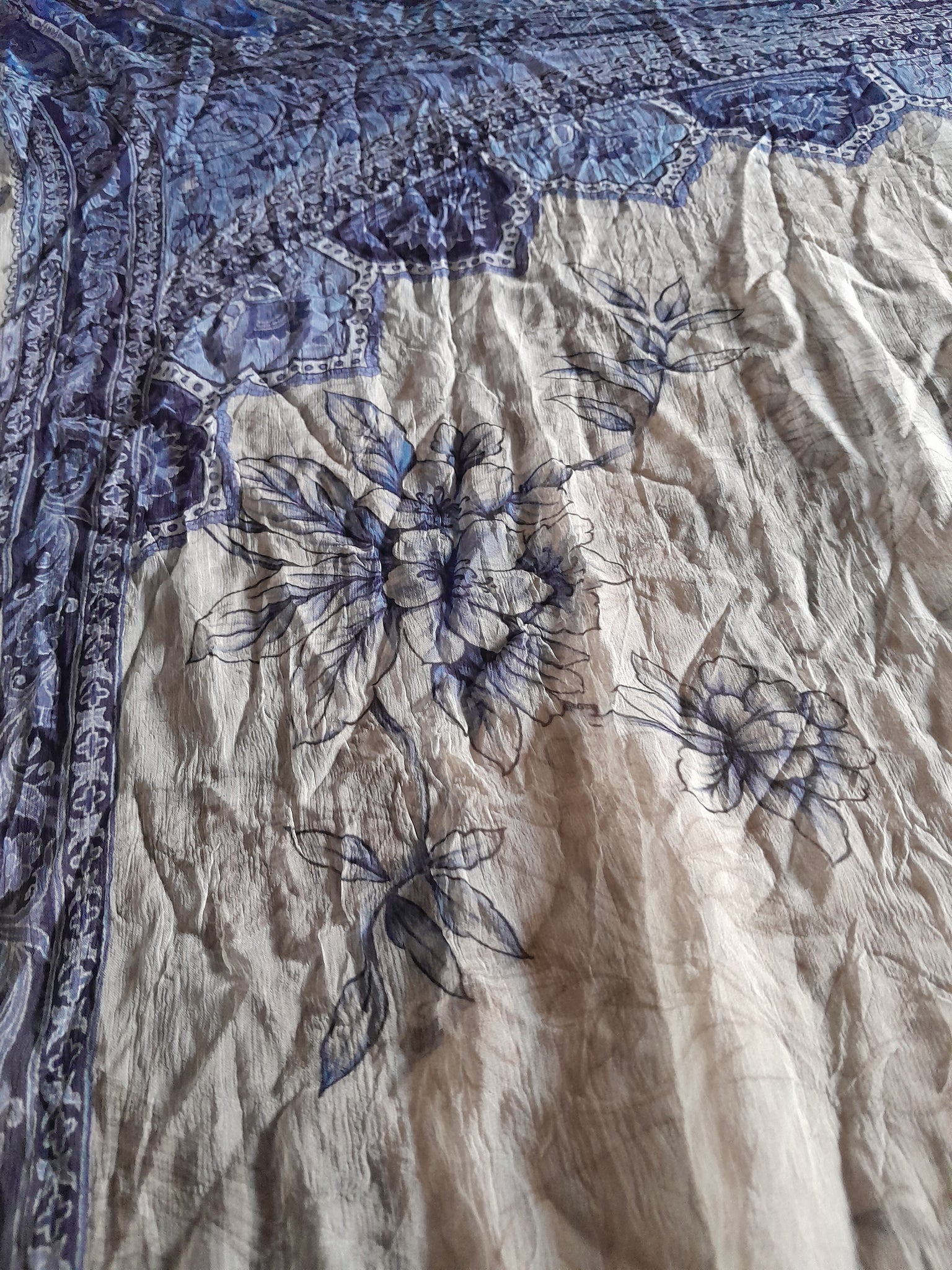 Full printed Chiffon with four sided border and floral print in the middle.