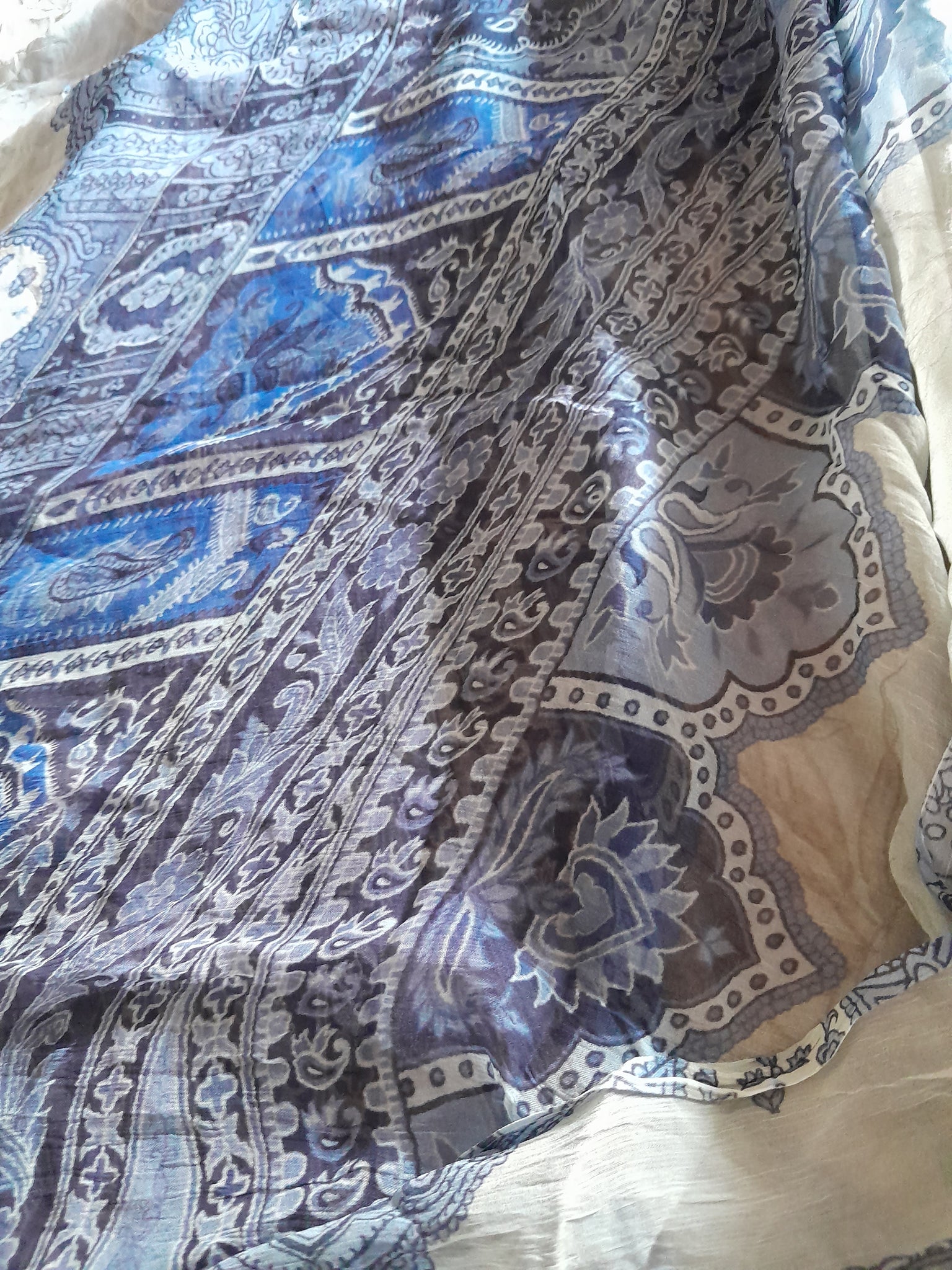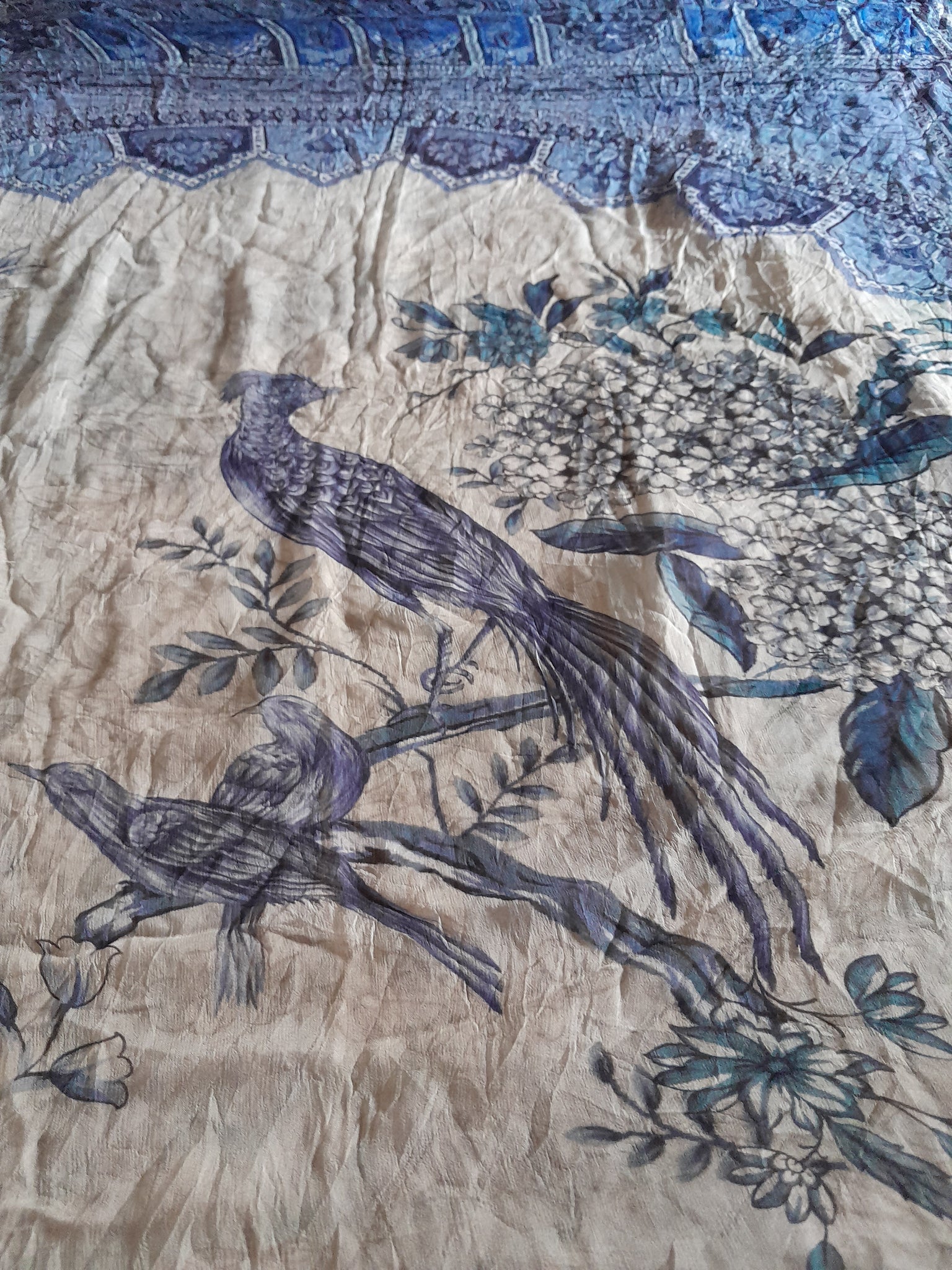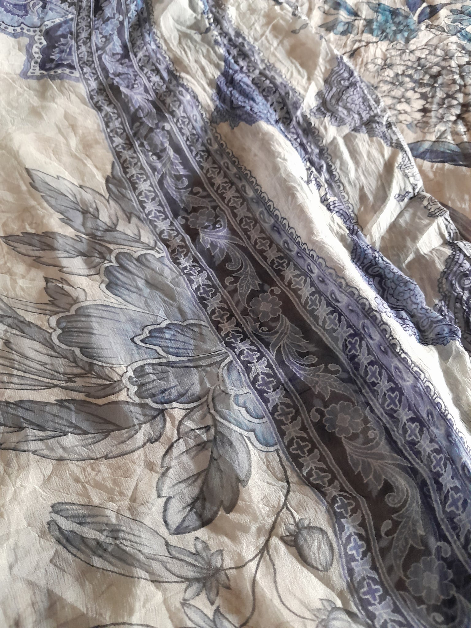 Full printed Chiffon with four sided border and floral print in the middle.