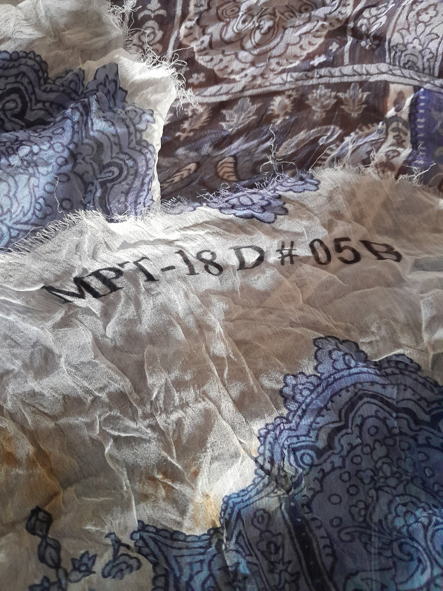 Note: Printing is made on diagonal fabric. Minor stains at corner easily adjustable in piko cutting.