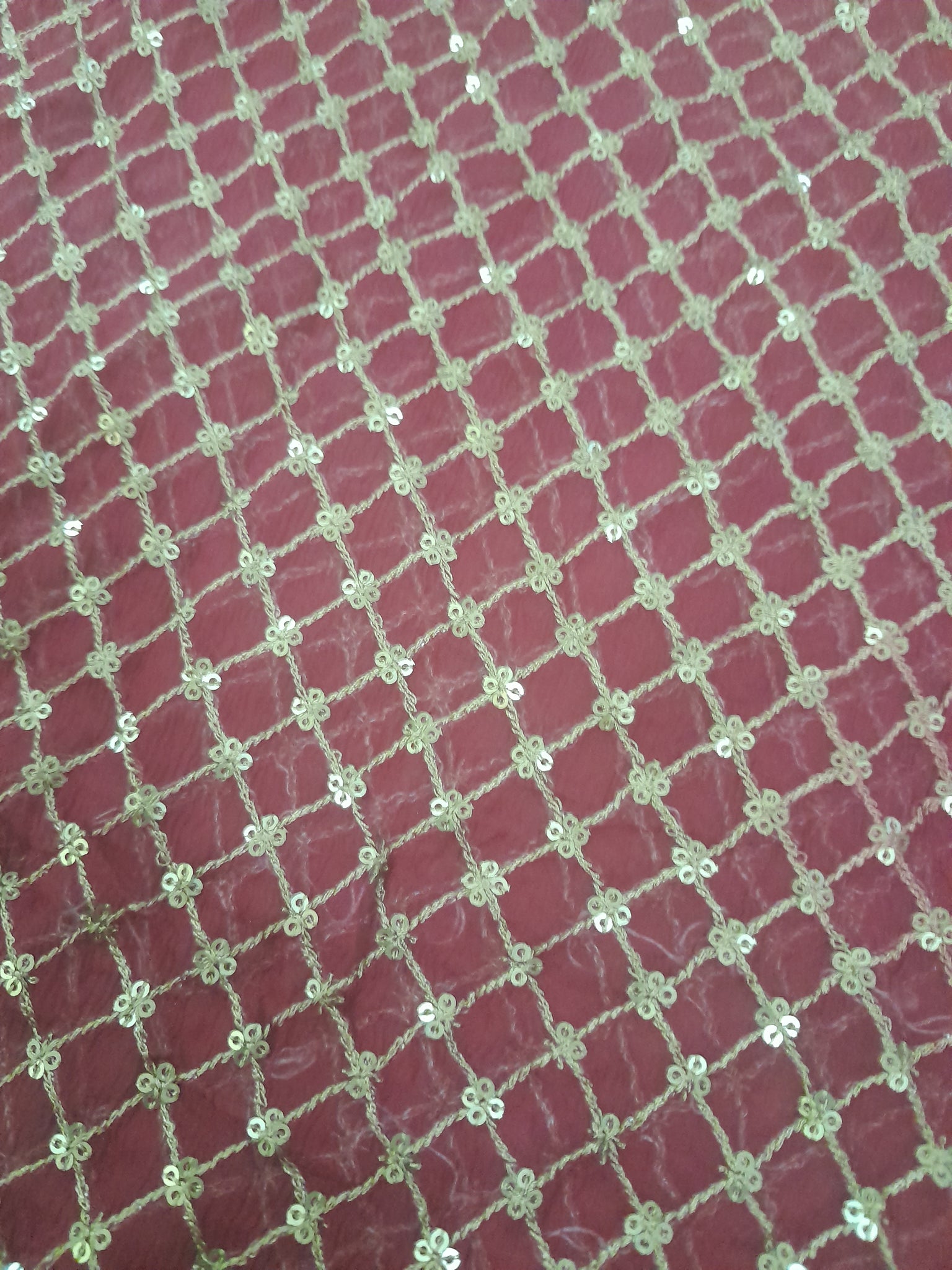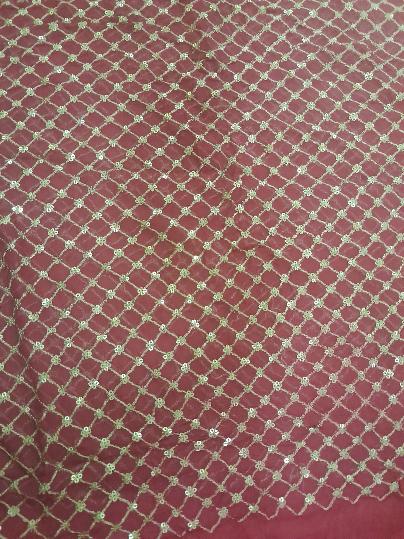 Fully thread embroidered in jaal style with golden sequins embellishments.
