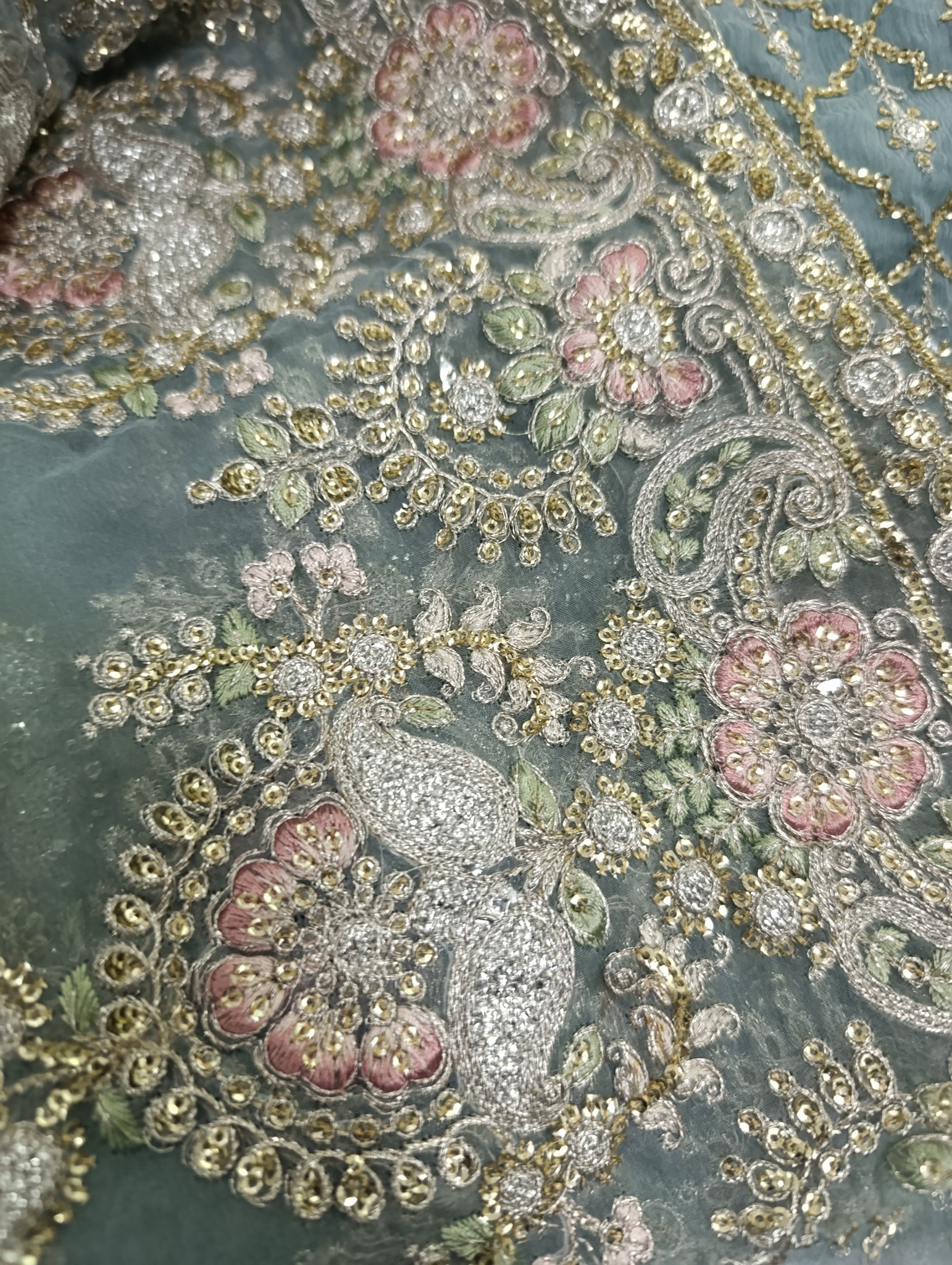 Embroidered Organza Allover Pallu Patti