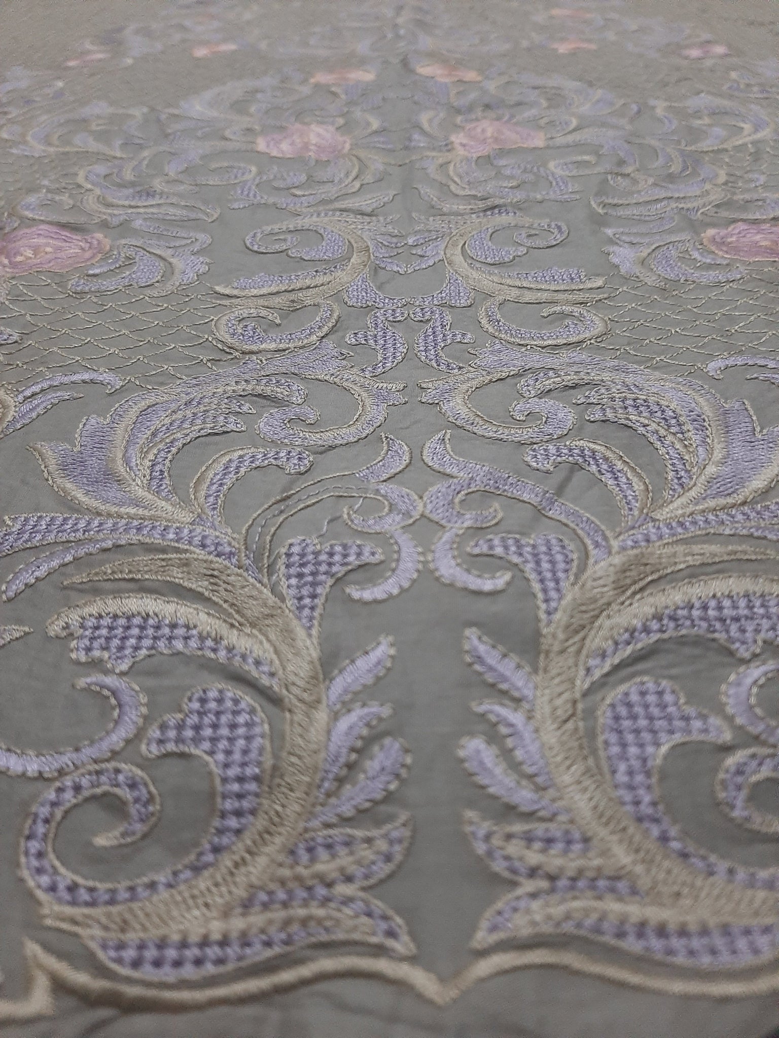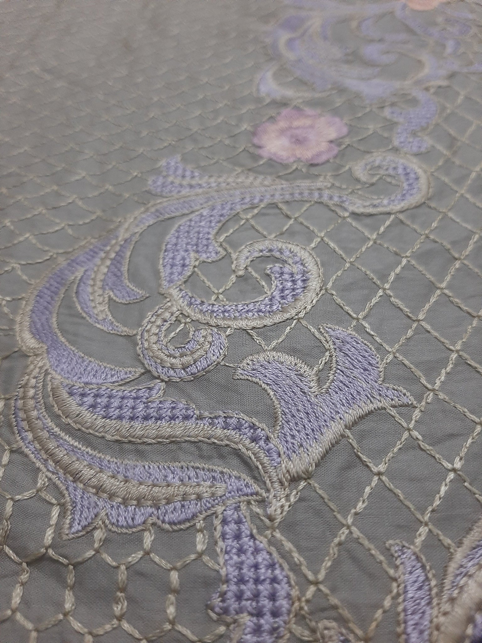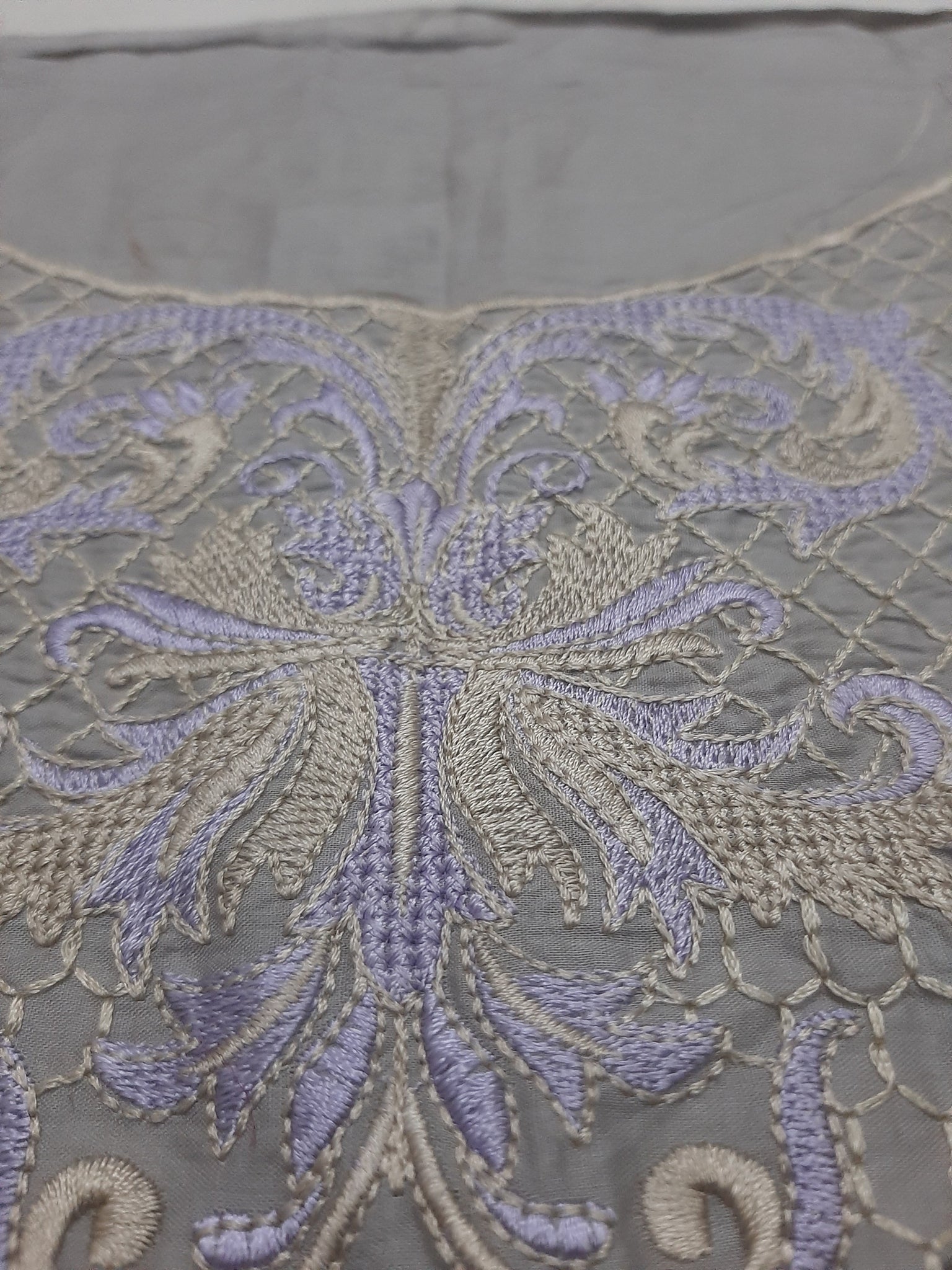 Length 36.5 inches (embroidery 31) width 26 inches (embroidery 24 inches) / Grey with Purple and Skin / Lawn - Sold out