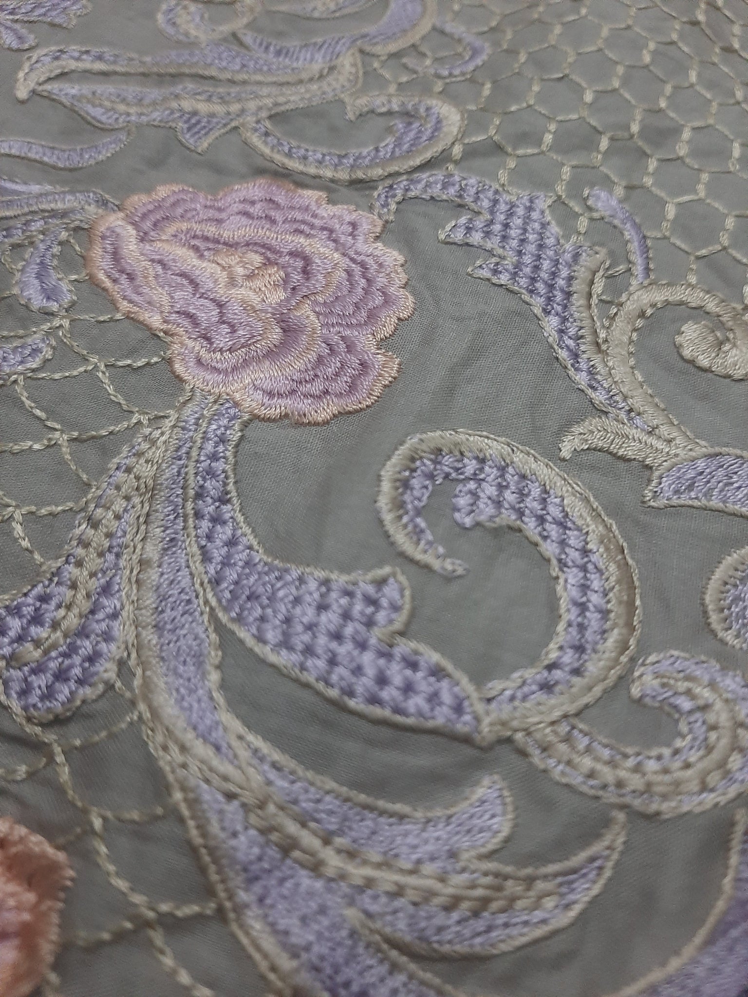 Fully thread embroidered.