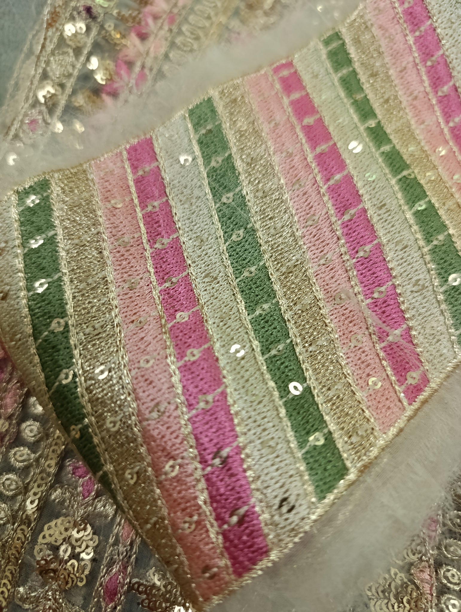 Heavily thread and golden tilla embroidered with golden sequins embellishments.