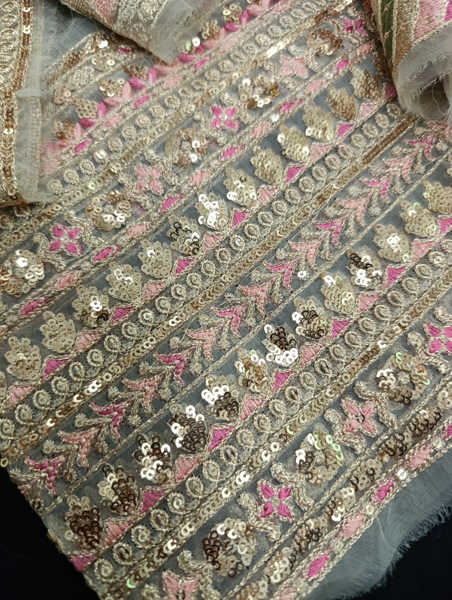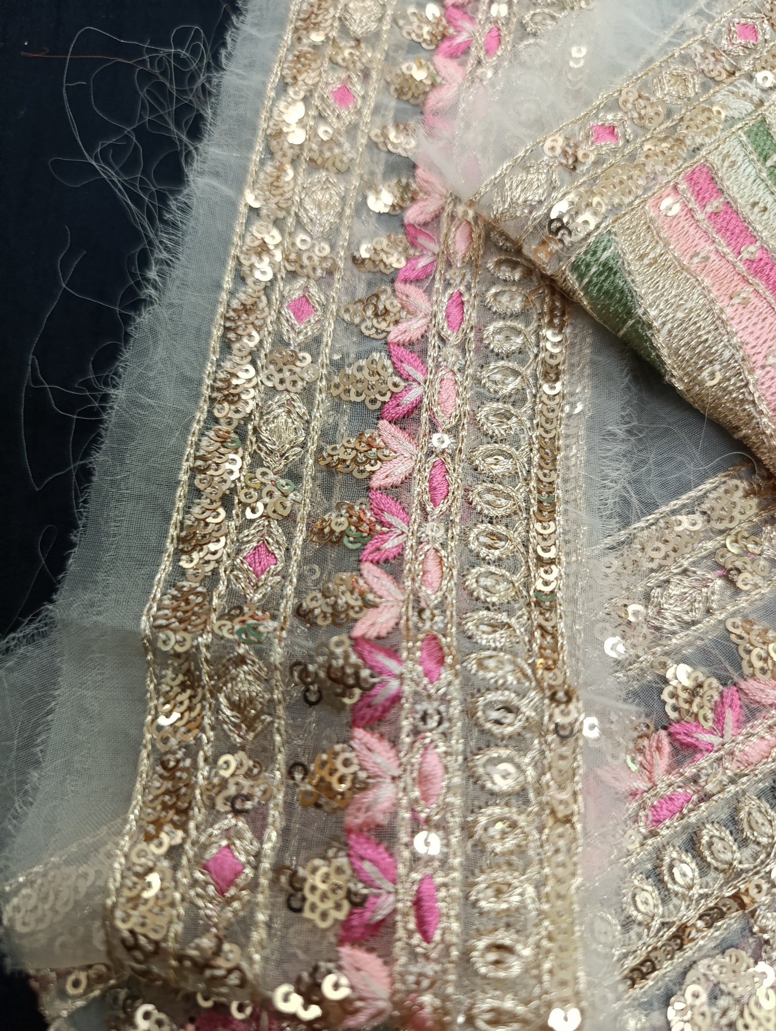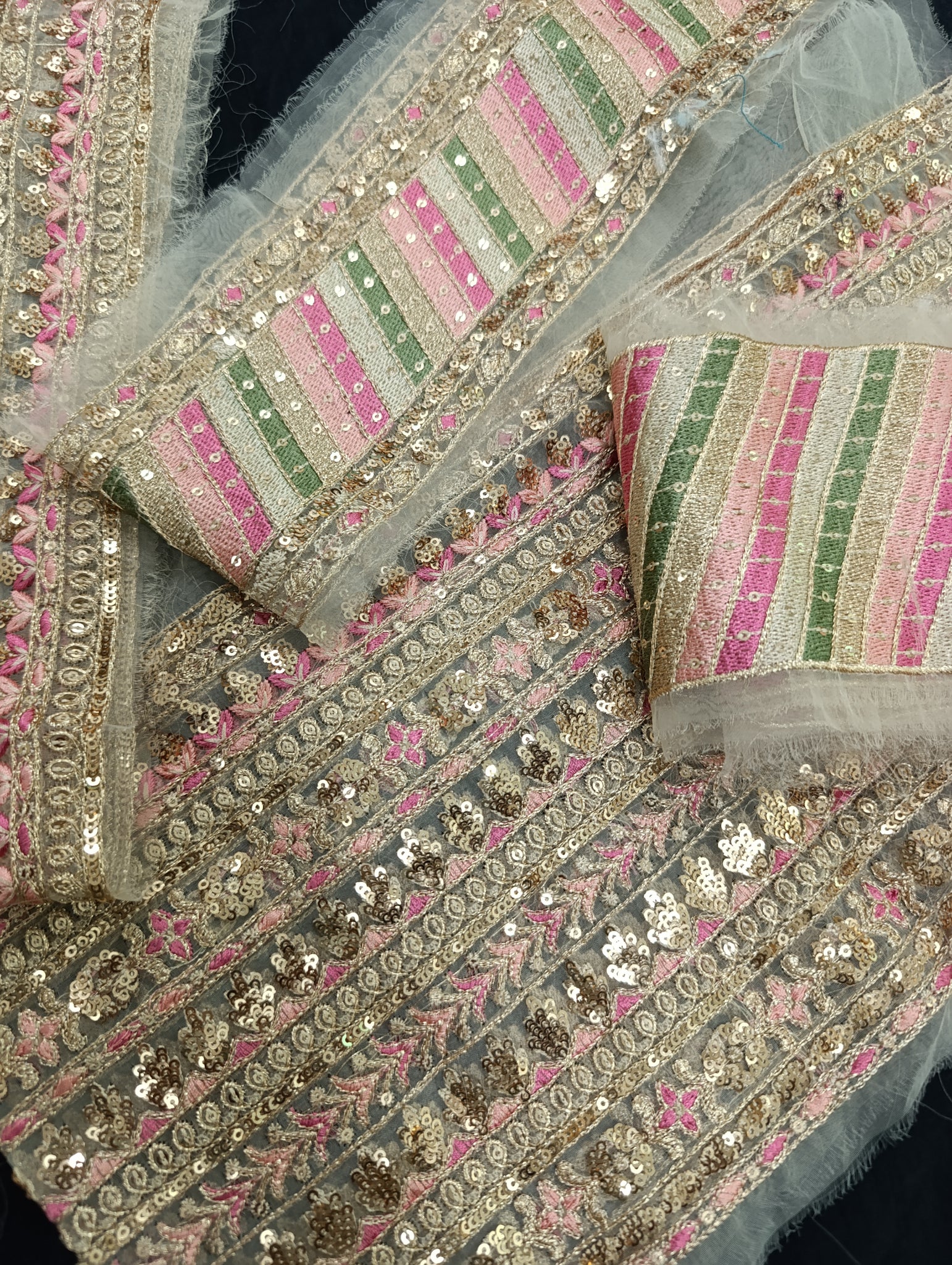 1st broad patch with floral embroidery in horizontal lines length 34 inches width 8.5 inches inches.