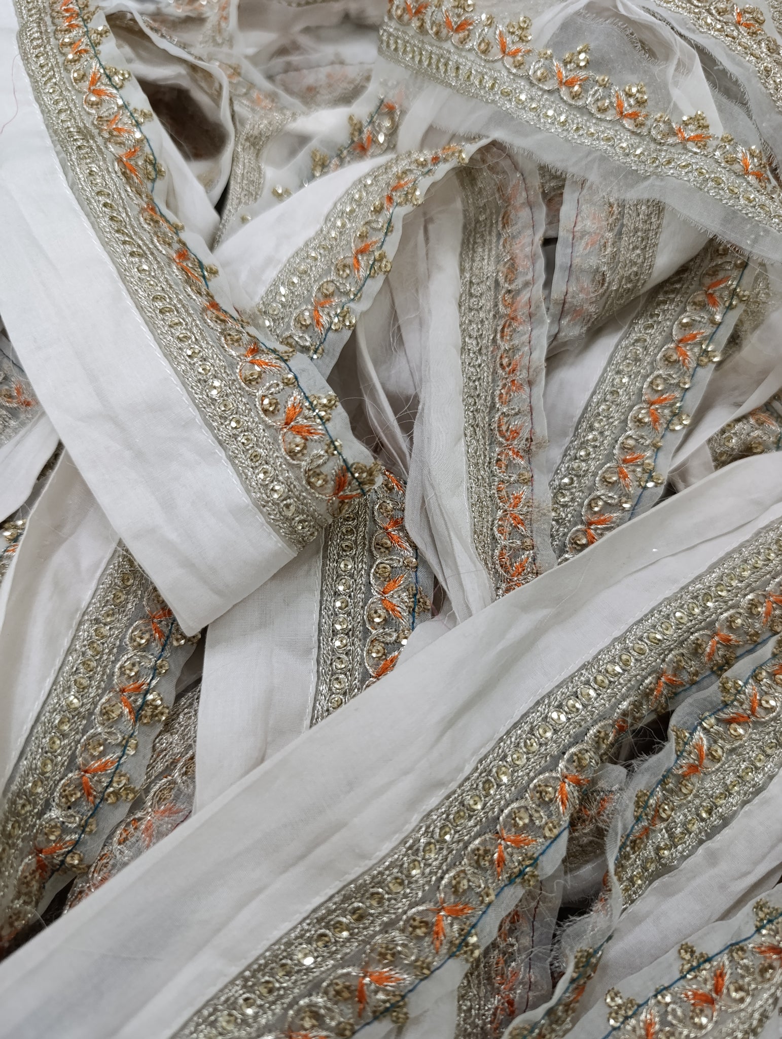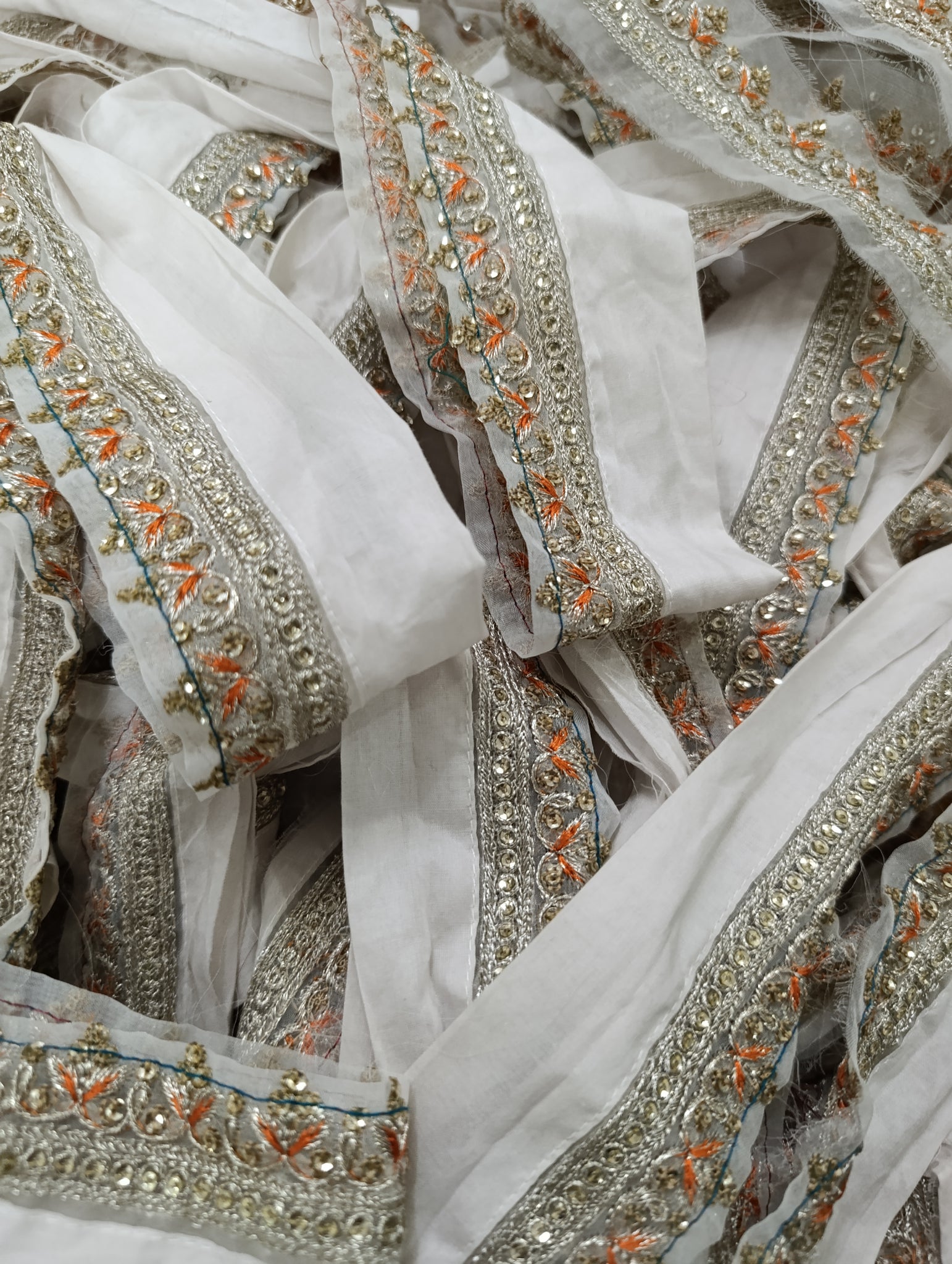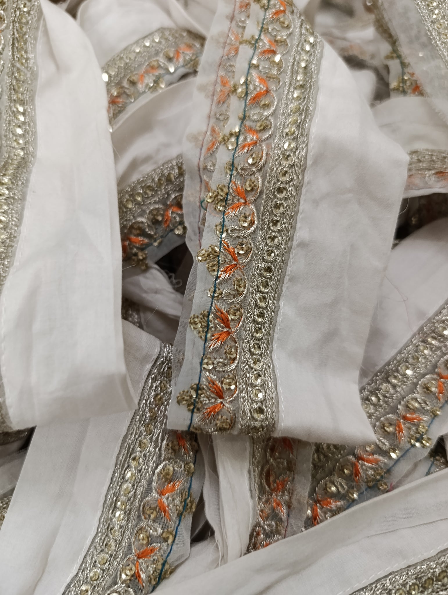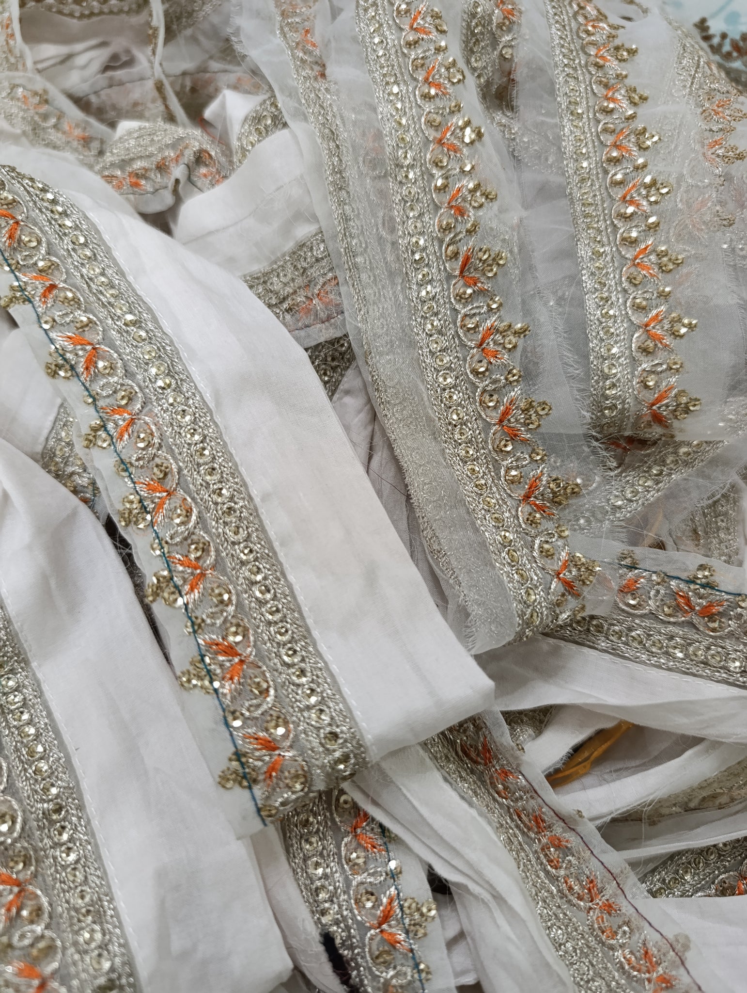 Fully thread and silver tilla embroidered with golden sequins embellishment.