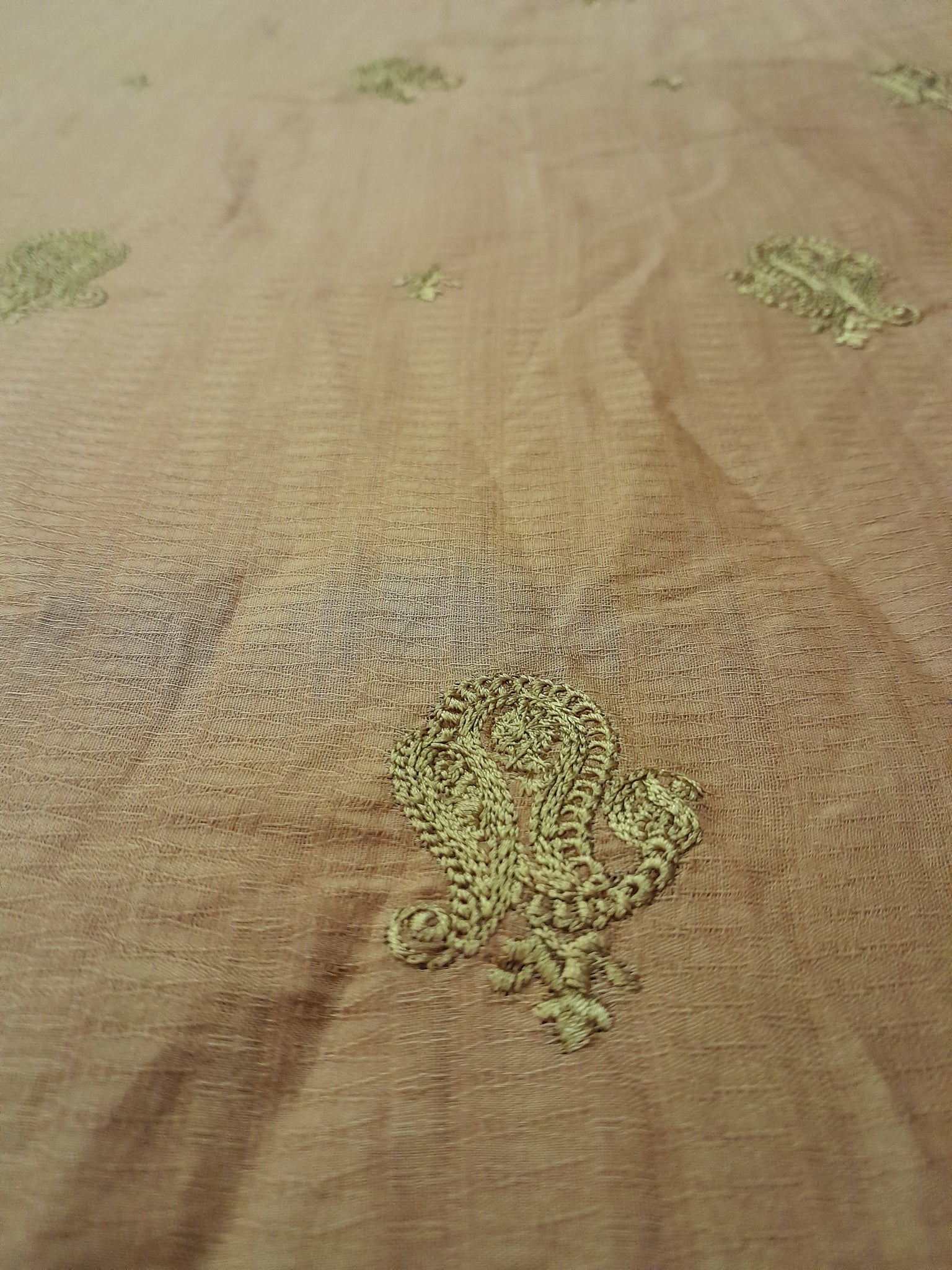 Heavily thread embroidered in carry style on self textured Lawn fabric.