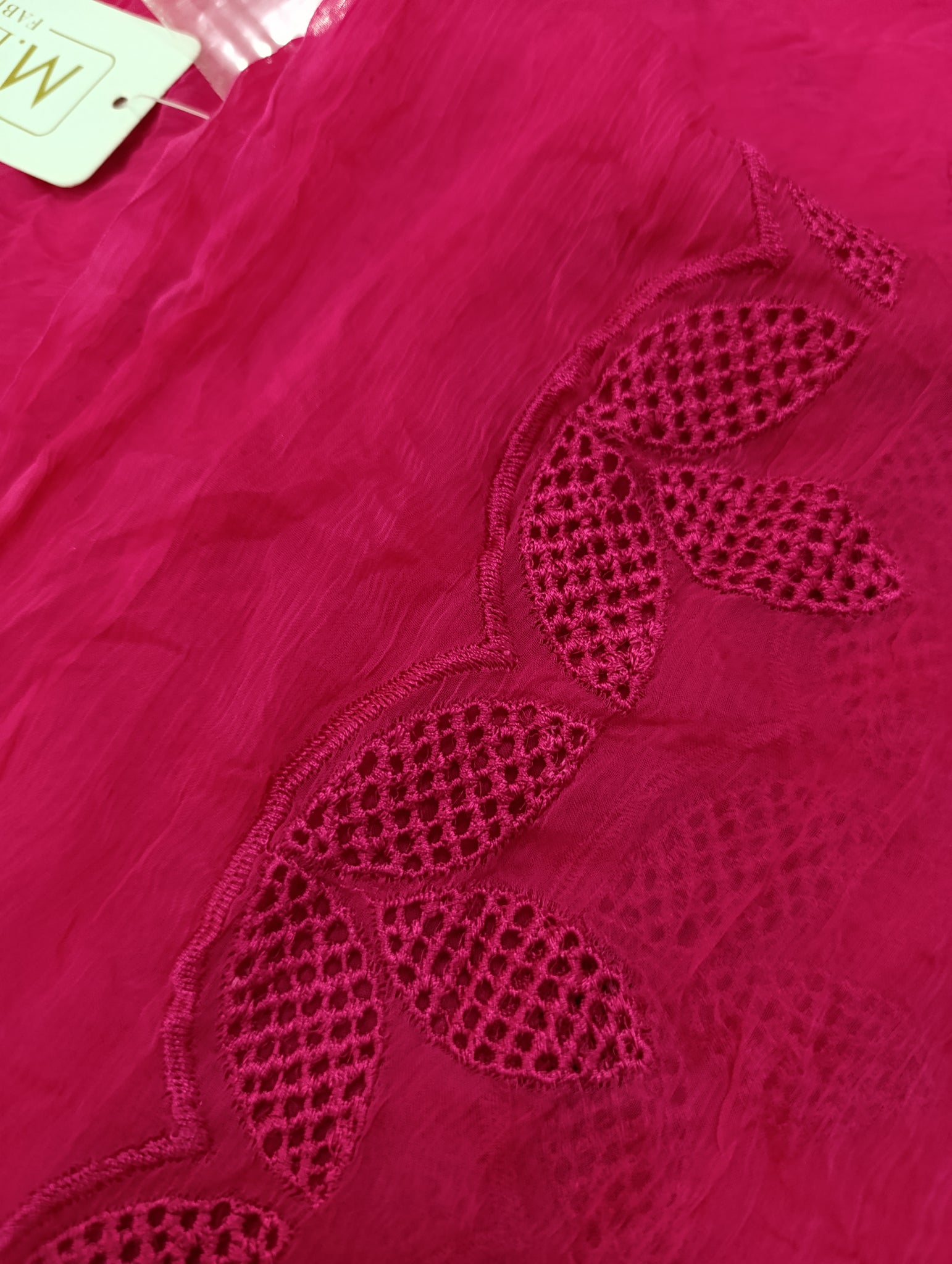 Fully Schiffli Embroidery With Scalloped Border.