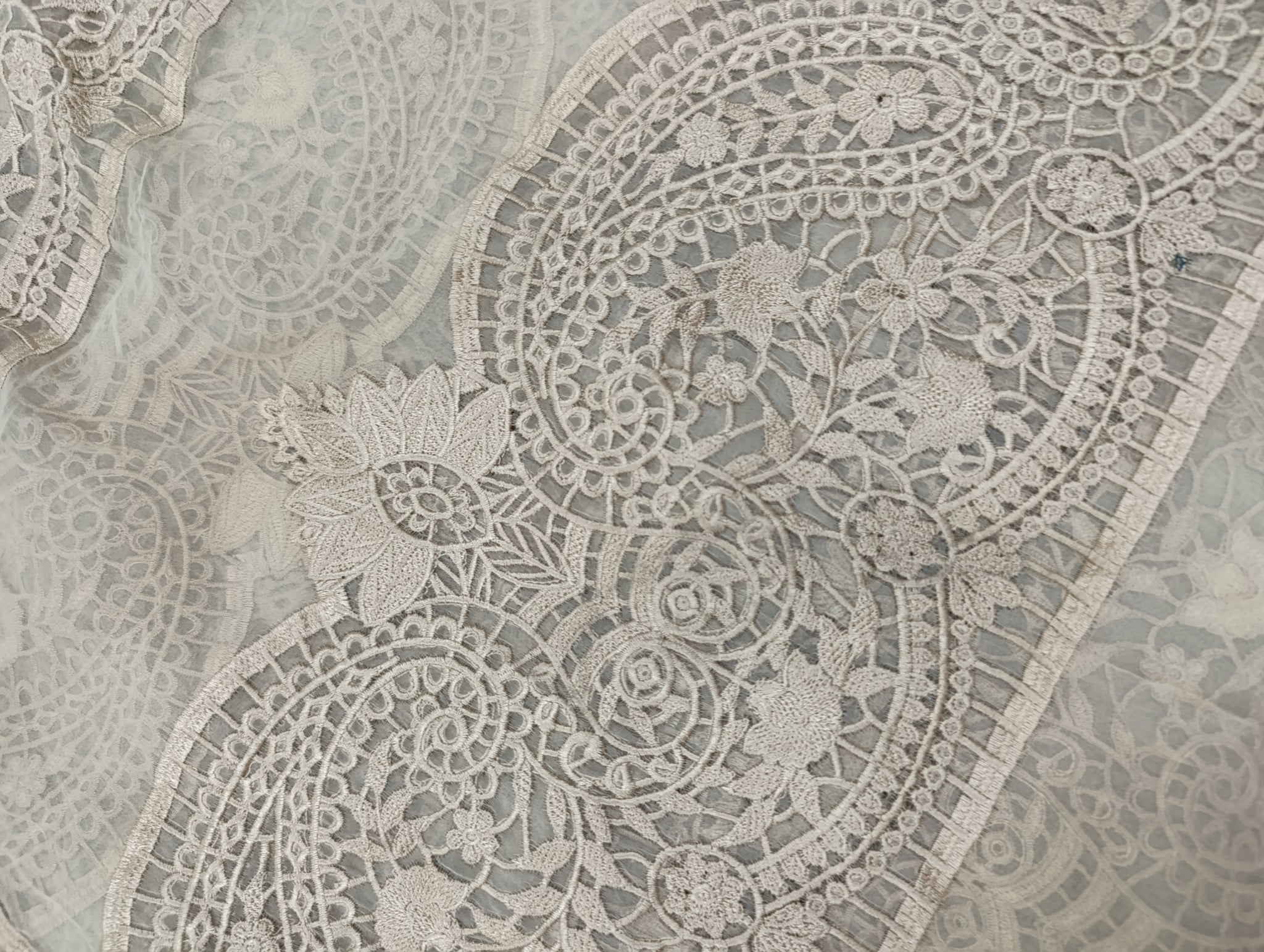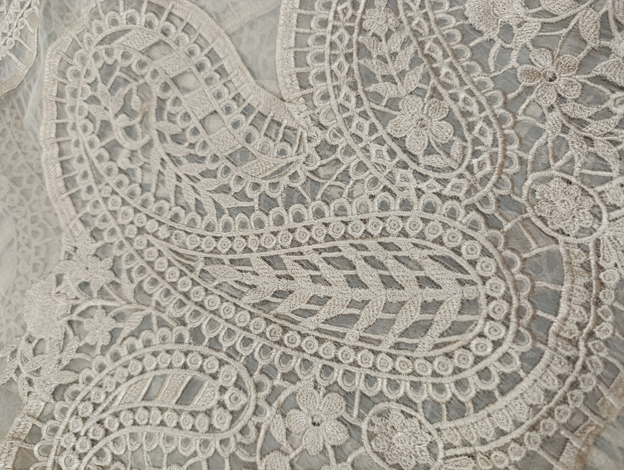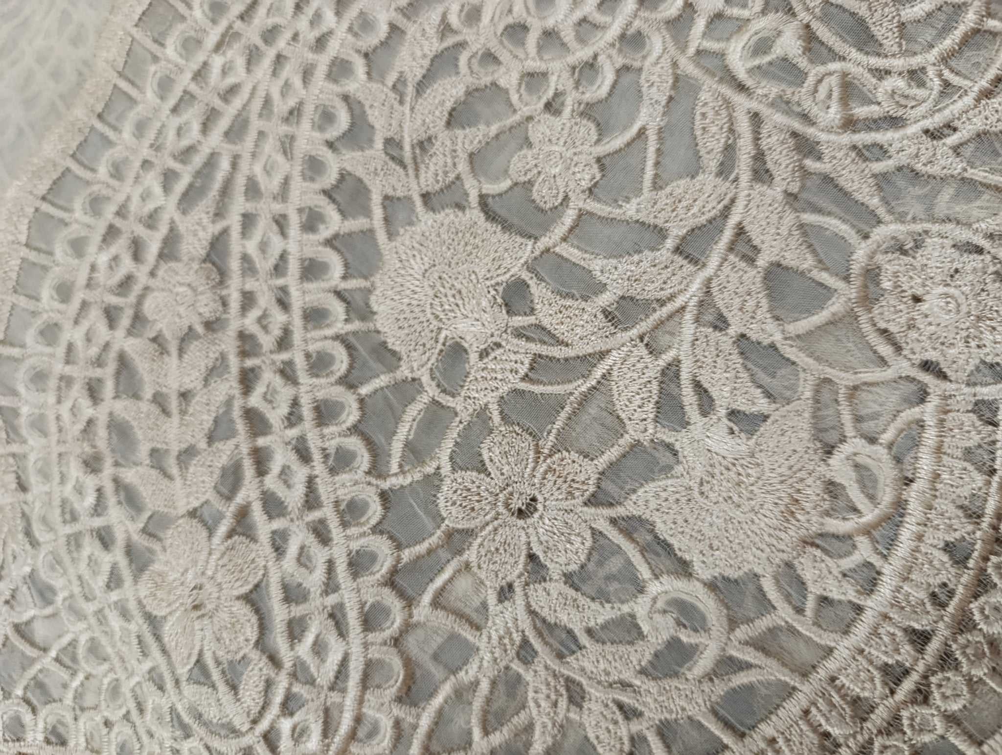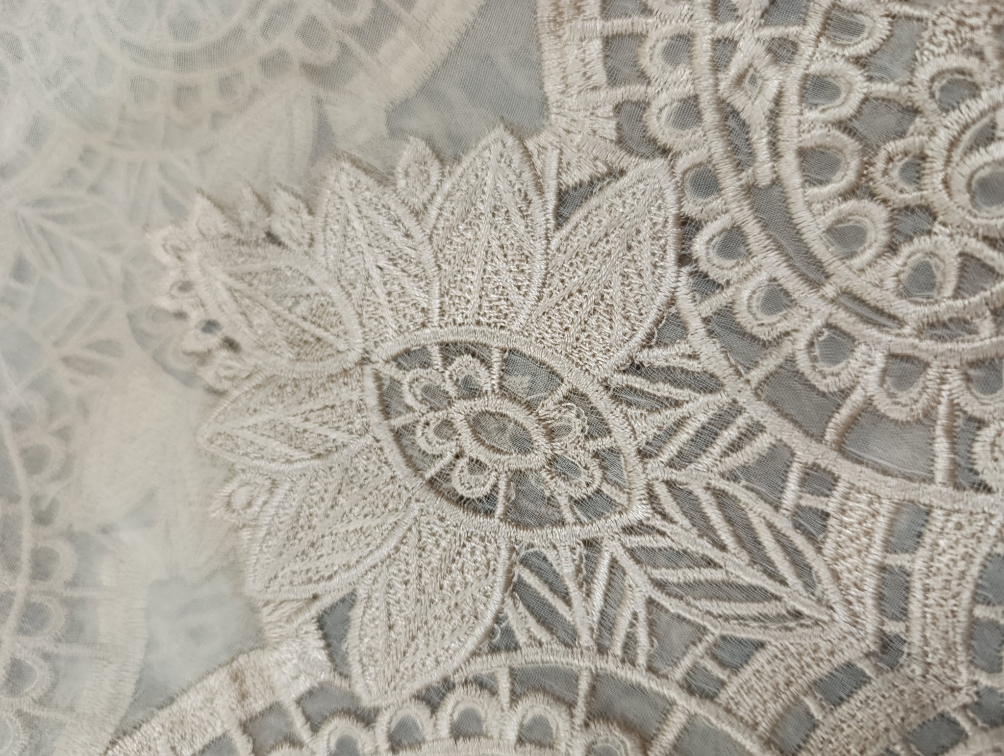 Fully thread embroidered in carry style floral and cutwork style designing.