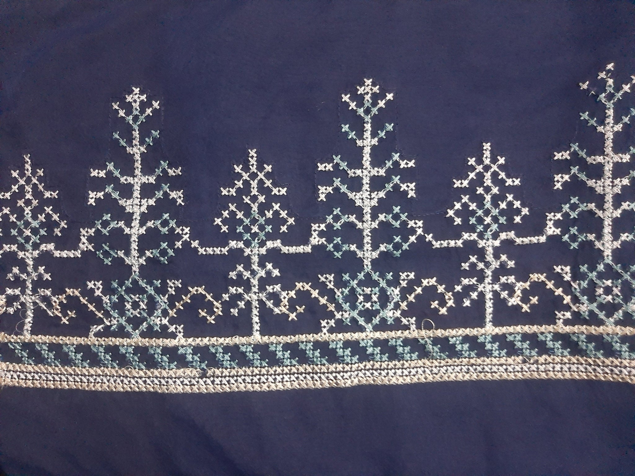 Fully thread embroidered.