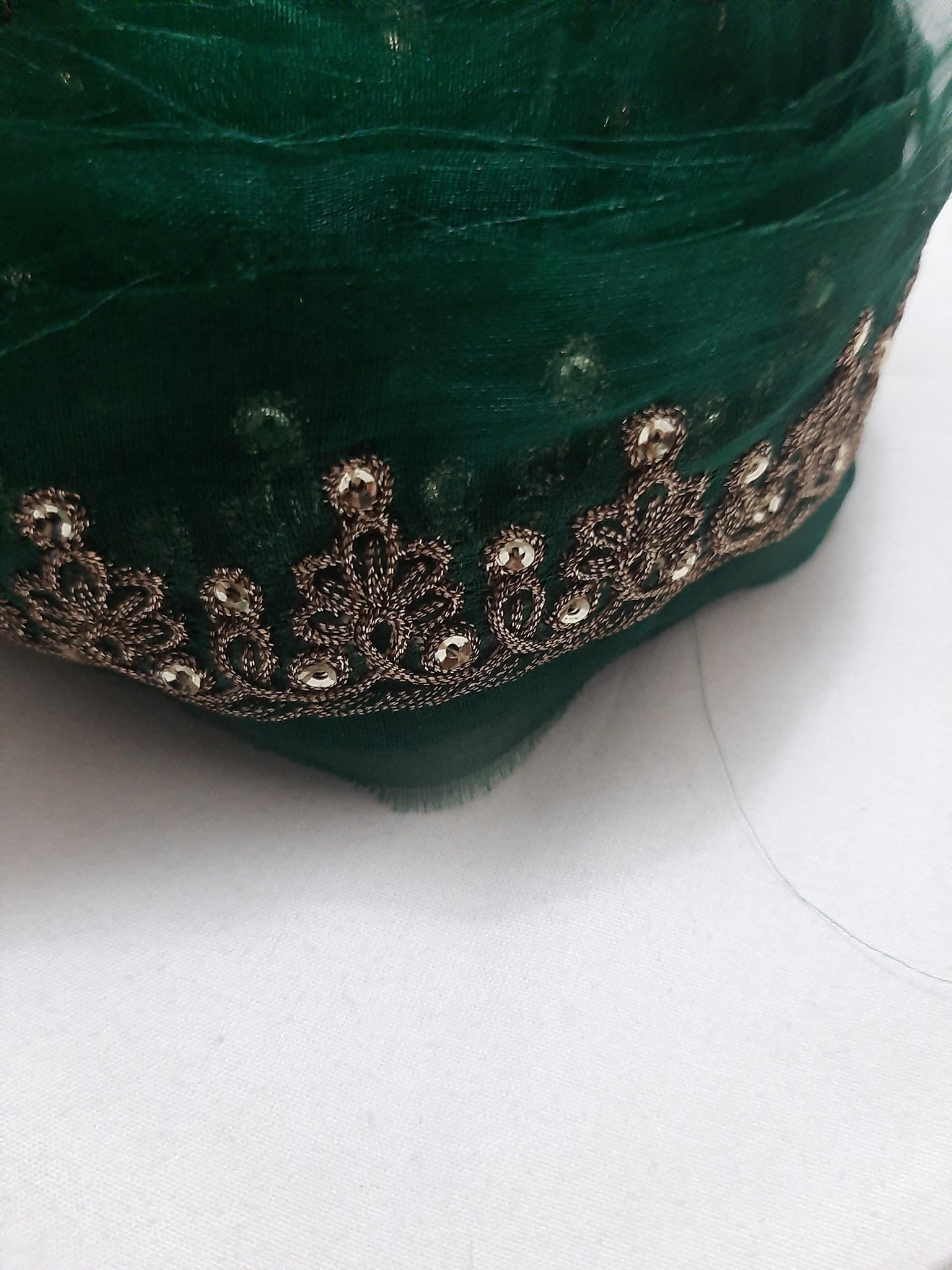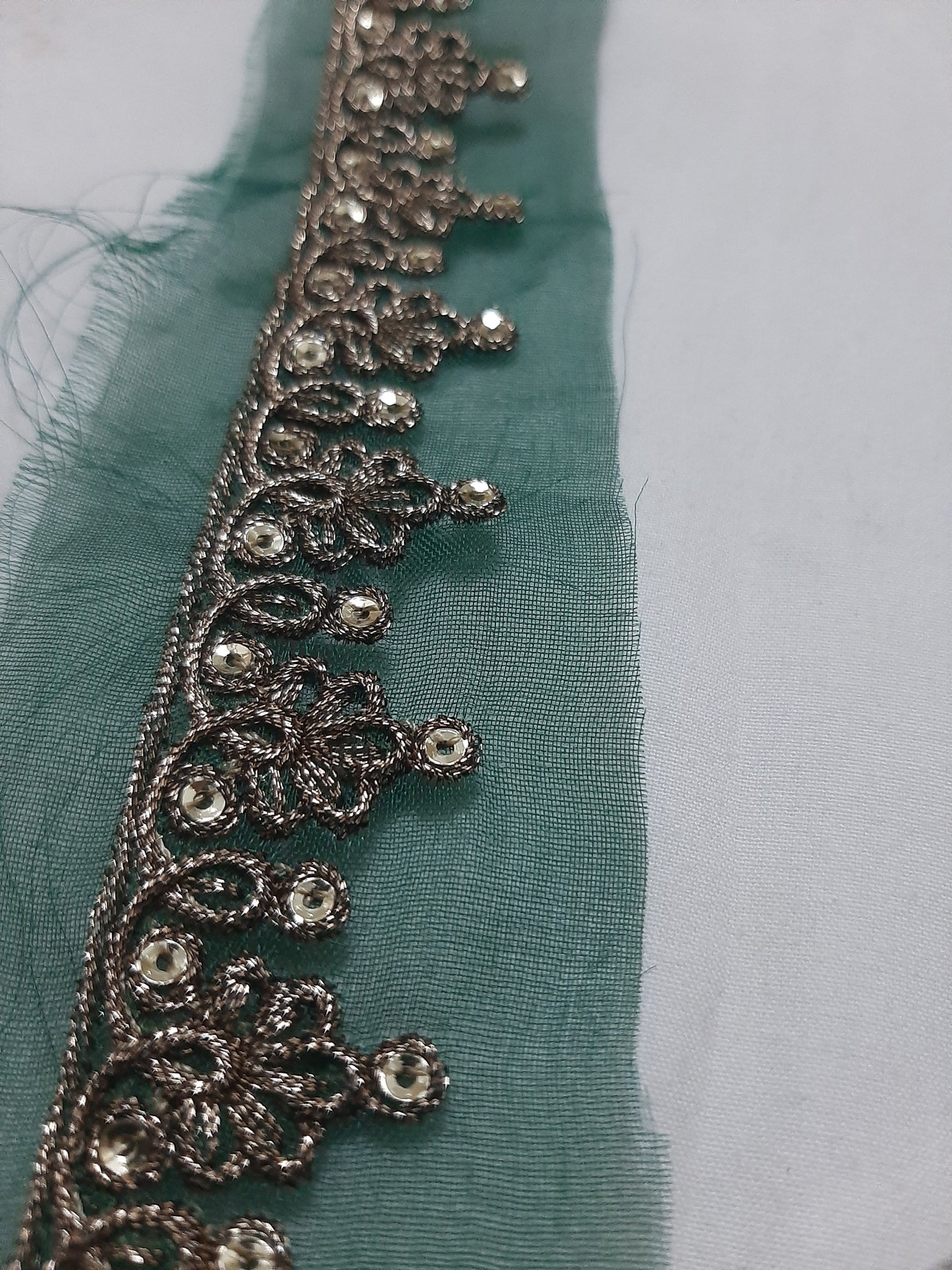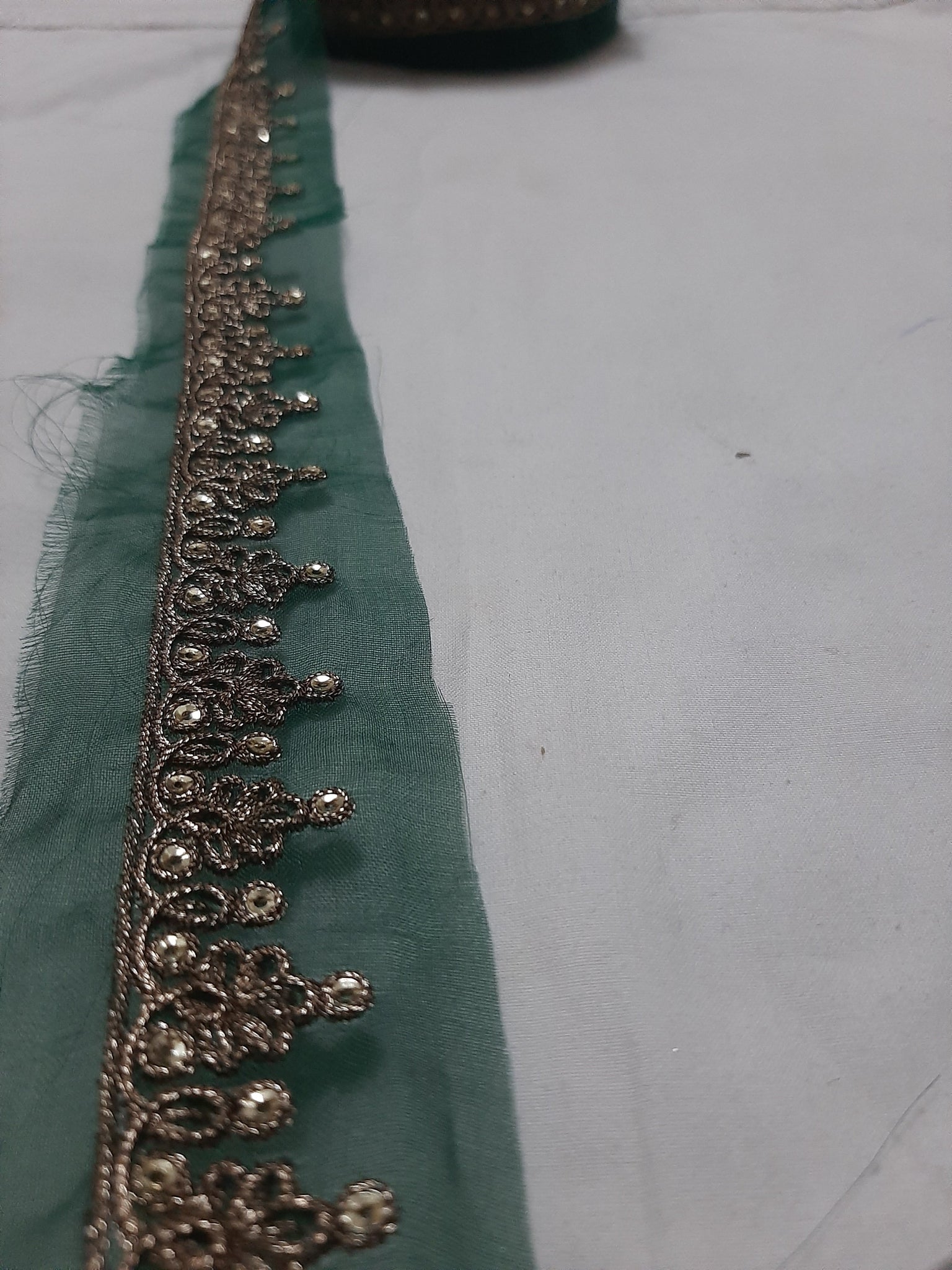 Fully copper tilla embroidered like dori style with golden sequins embellishment.