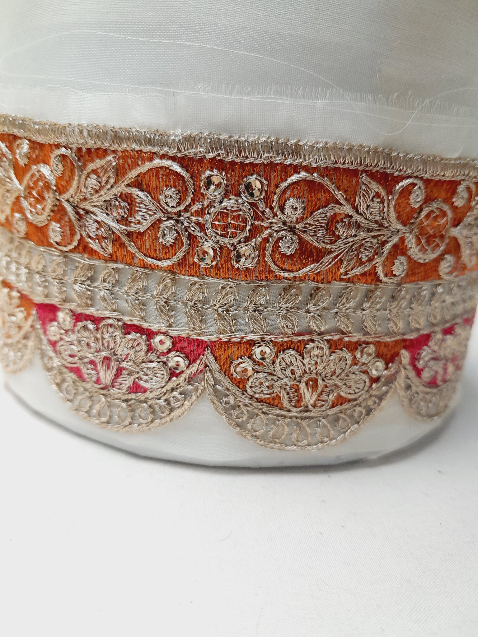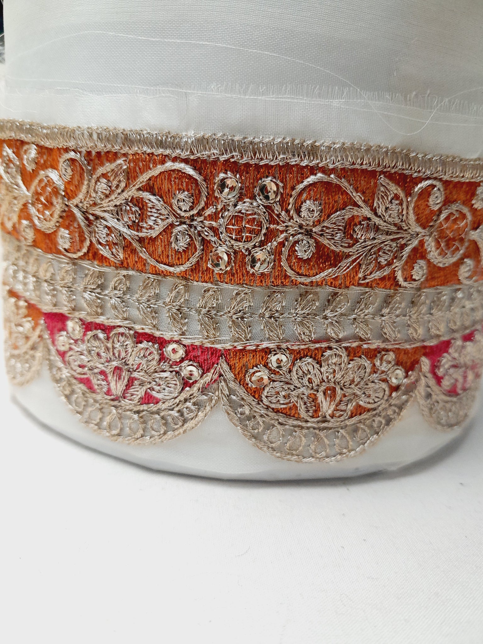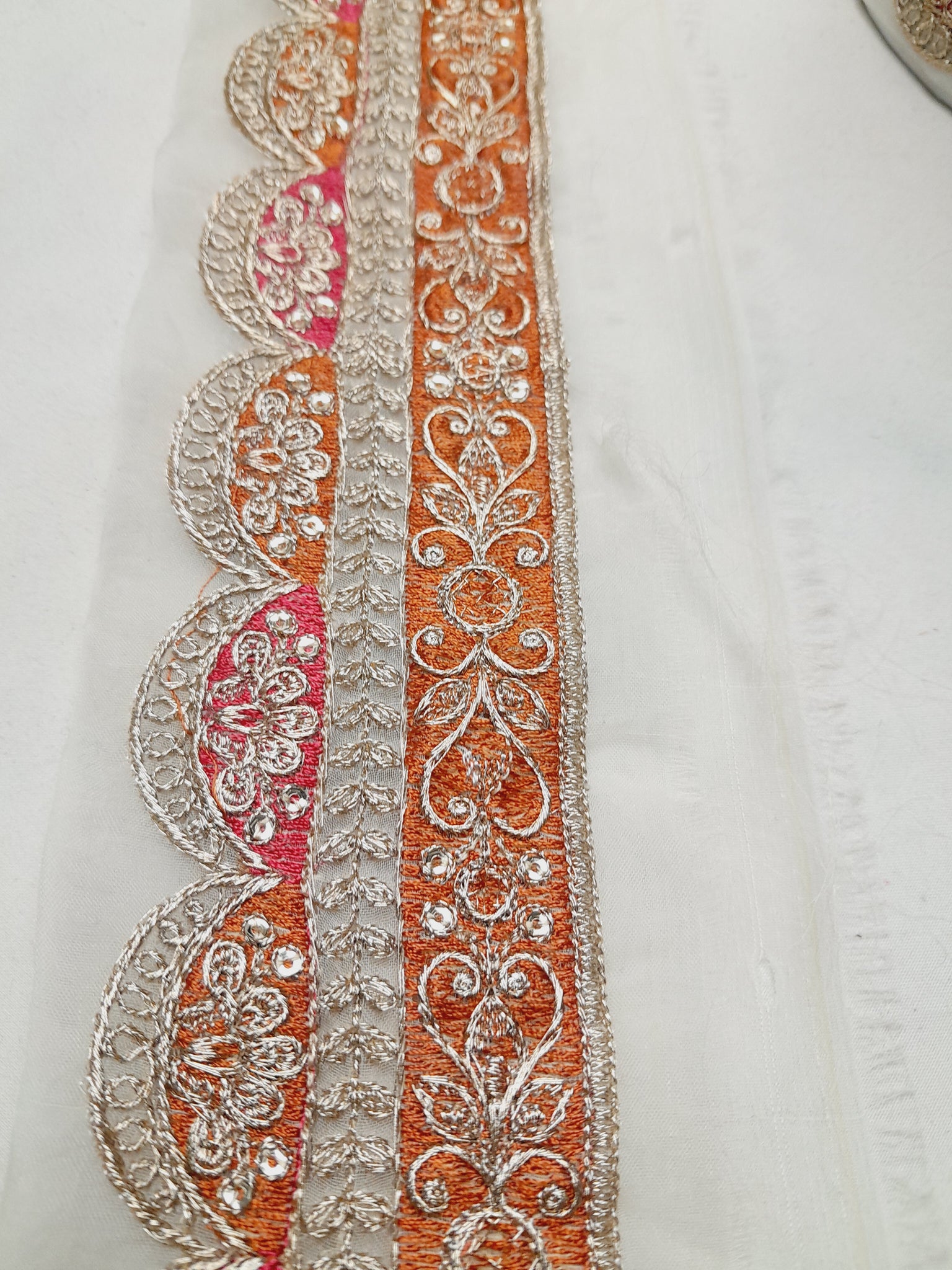 Fully thread embroidered with light golden tilla and light golden squins embellishment in scallope and chatta patti style