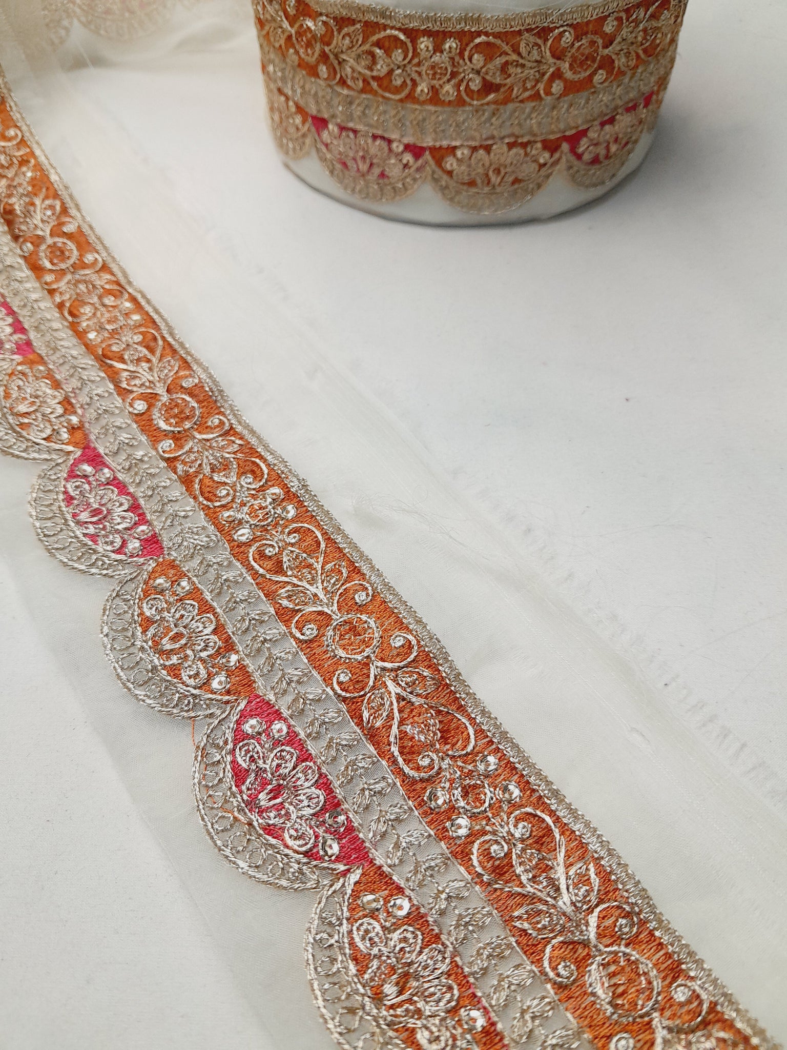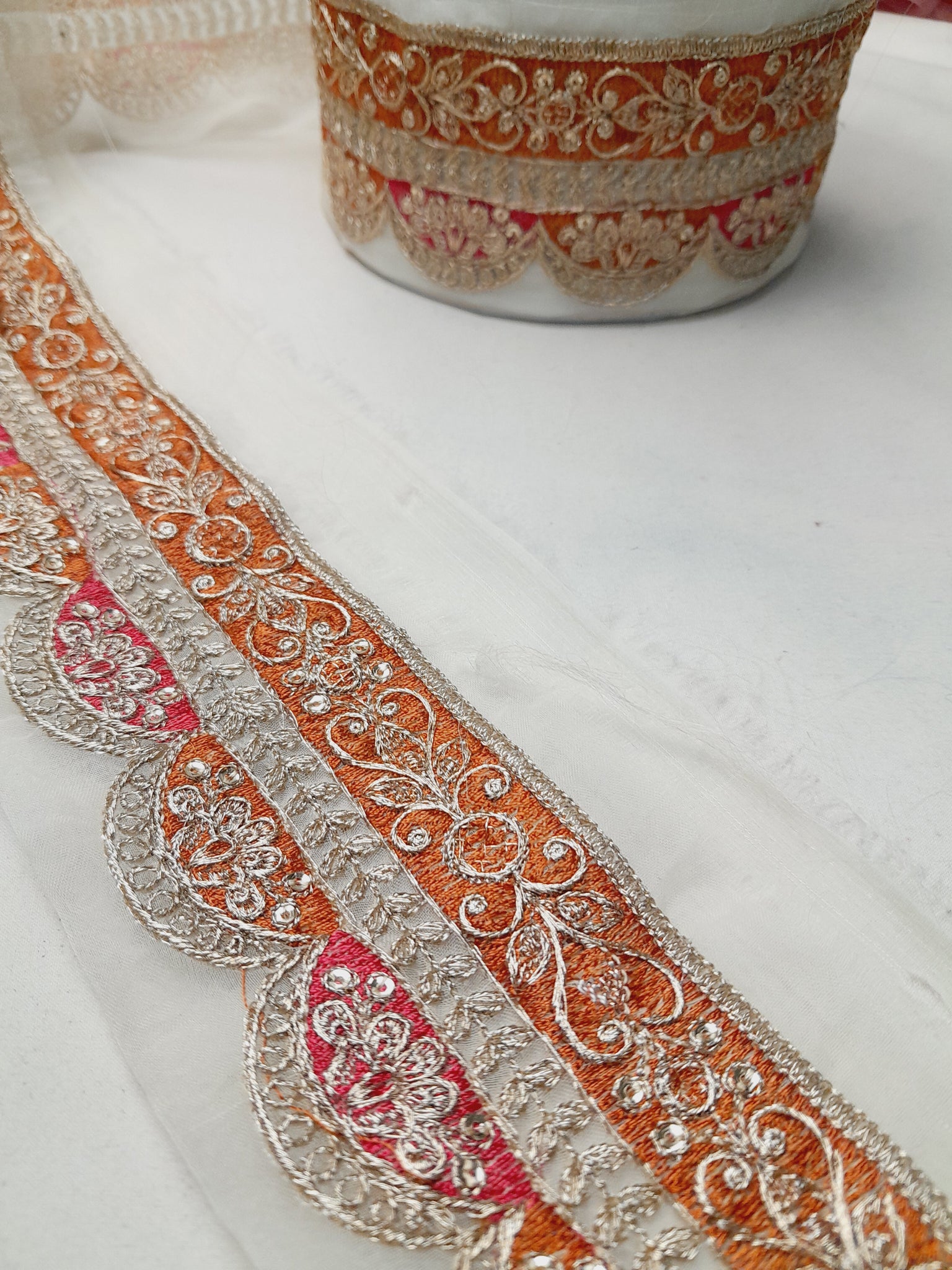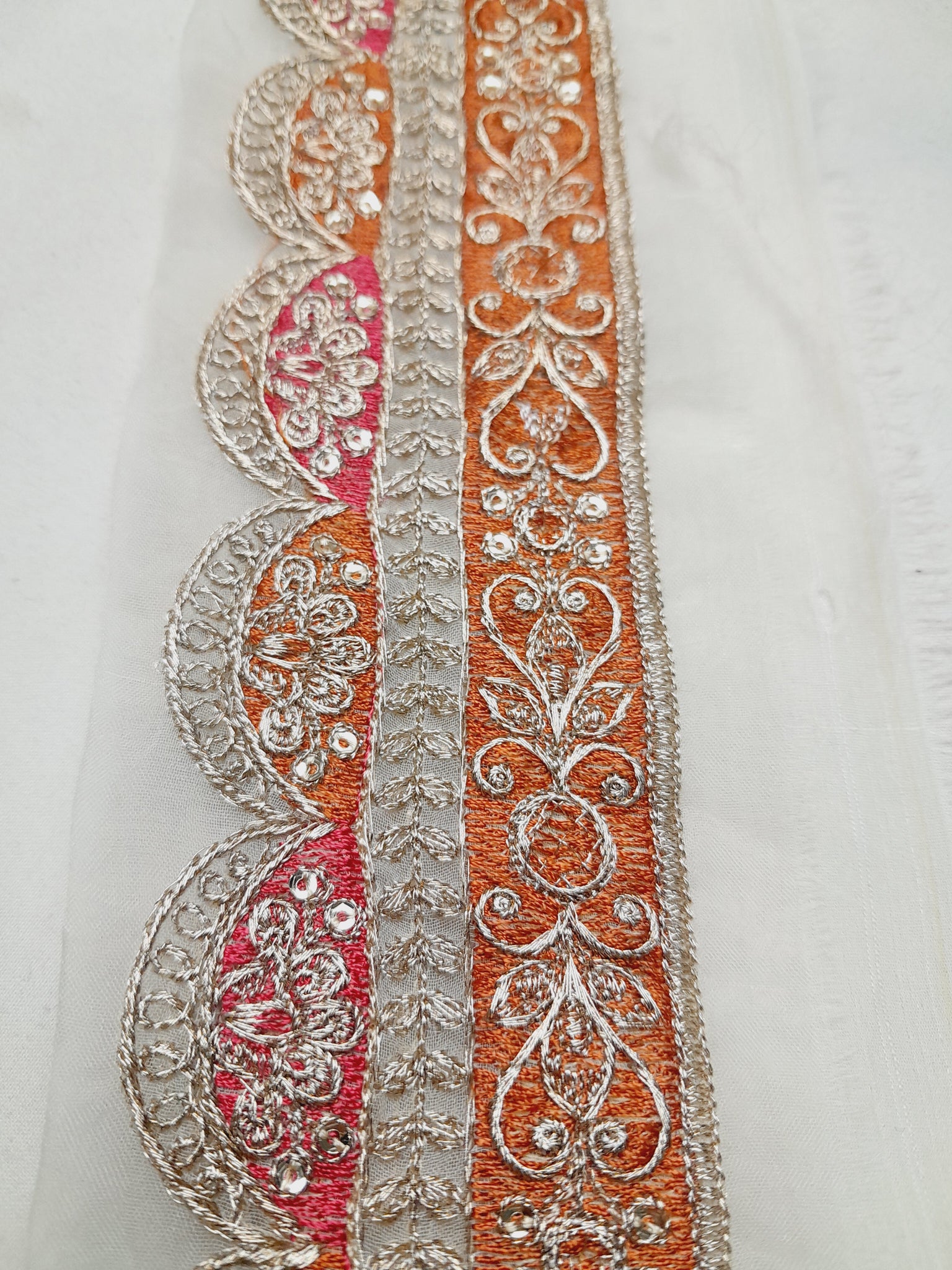 Fully thread embroidered with light golden tilla and light golden squins embellishment in scallope and chatta patti style