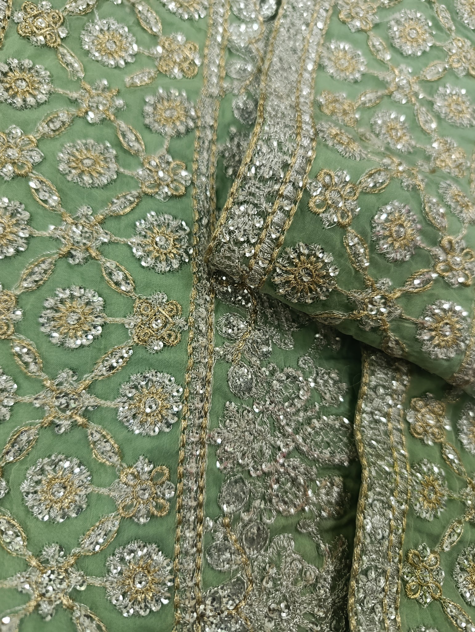 Heavily silver and golden tilla embroidered with silver sequins embellishment