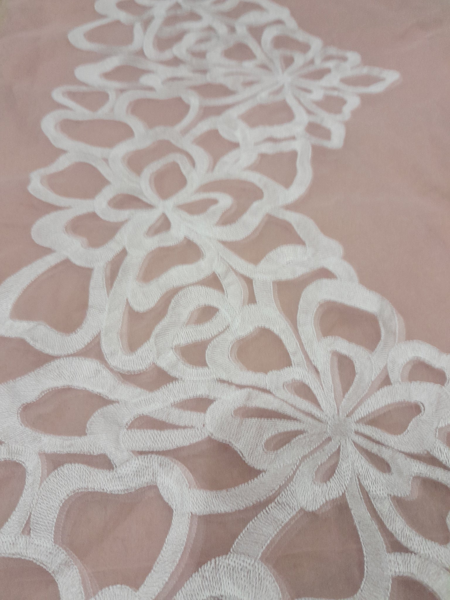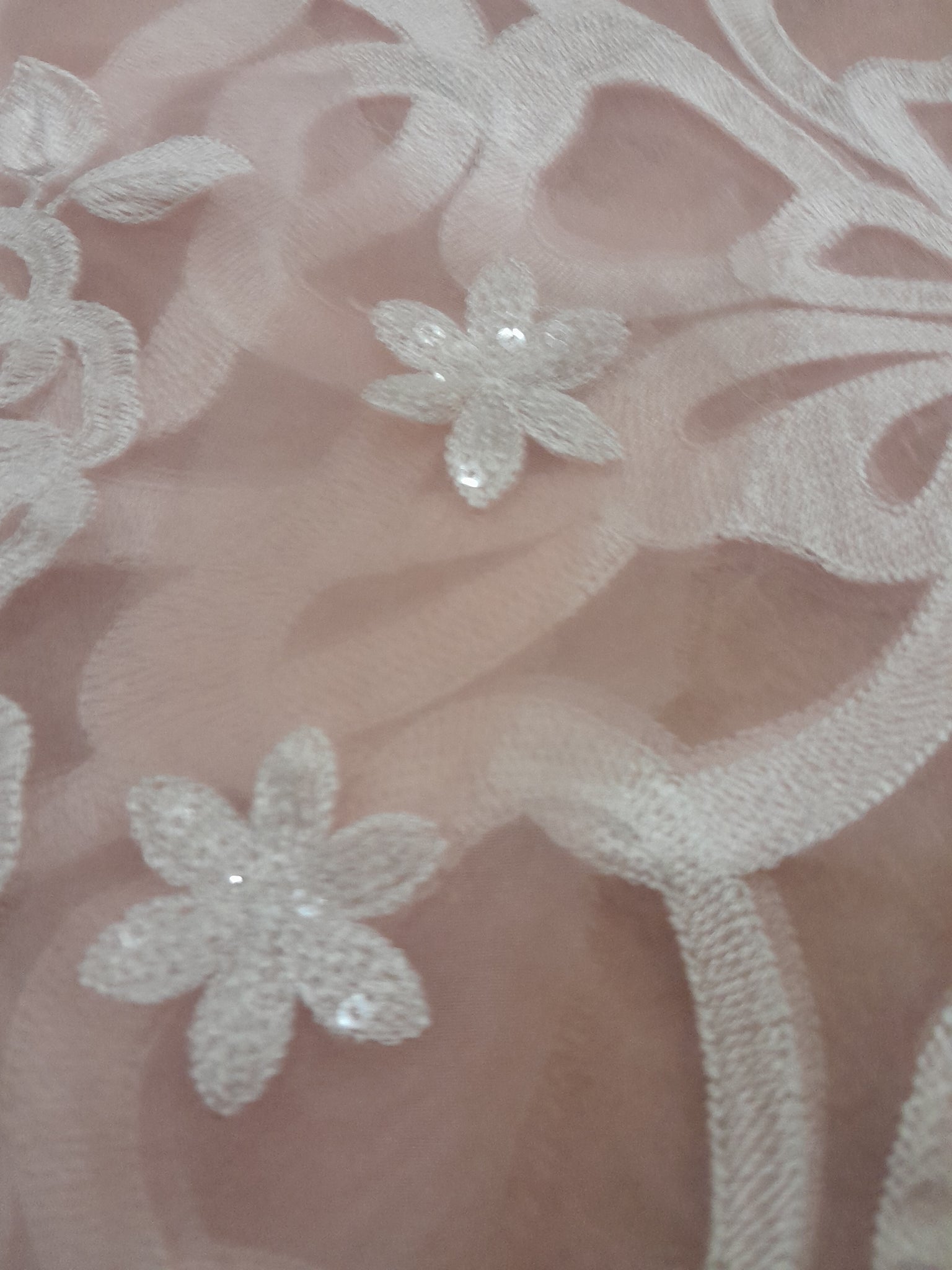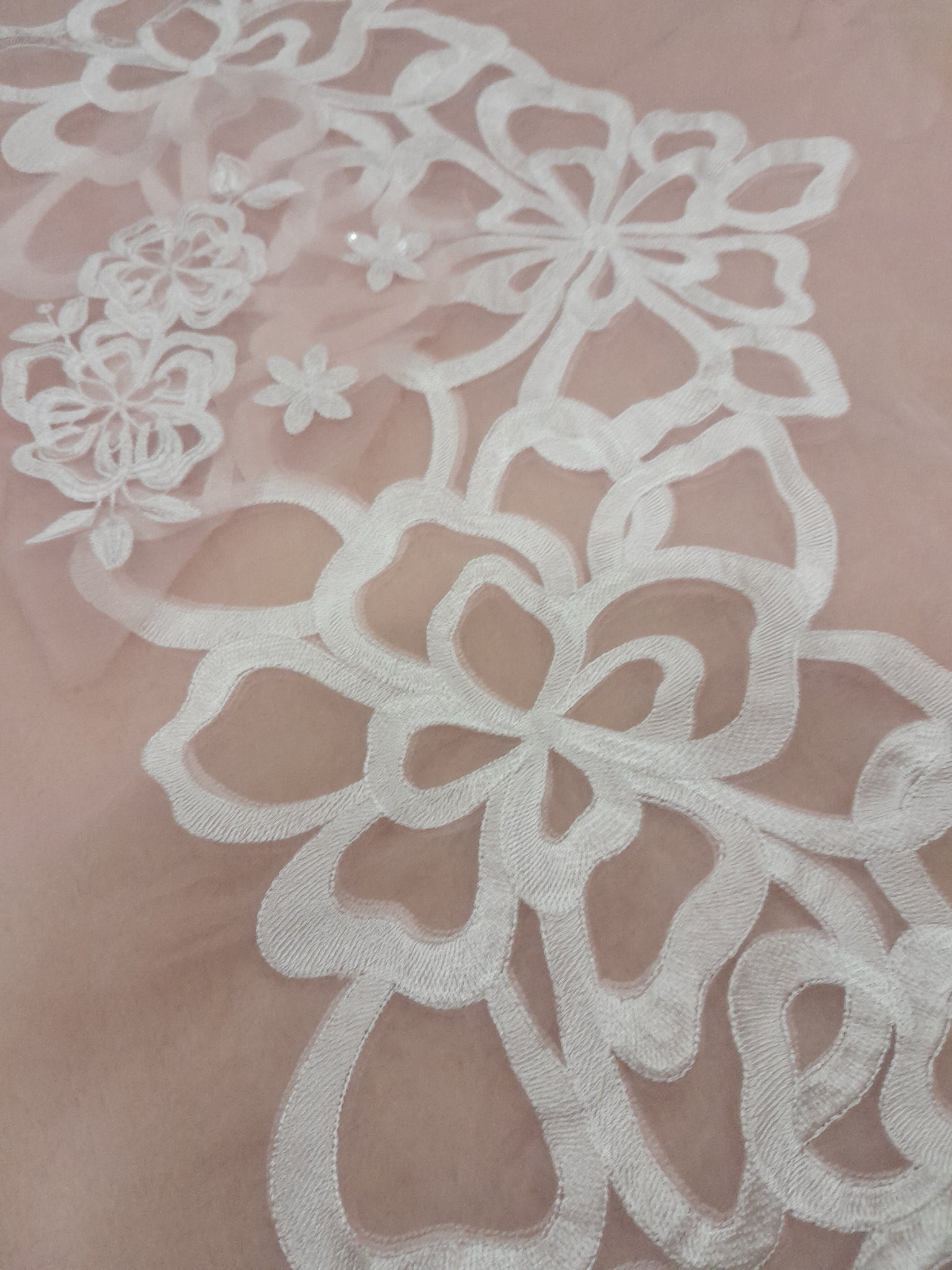 One thread embroidered bunch for Neckline with 3D flower to be attached separately with heavy transparent sequins embellishments.