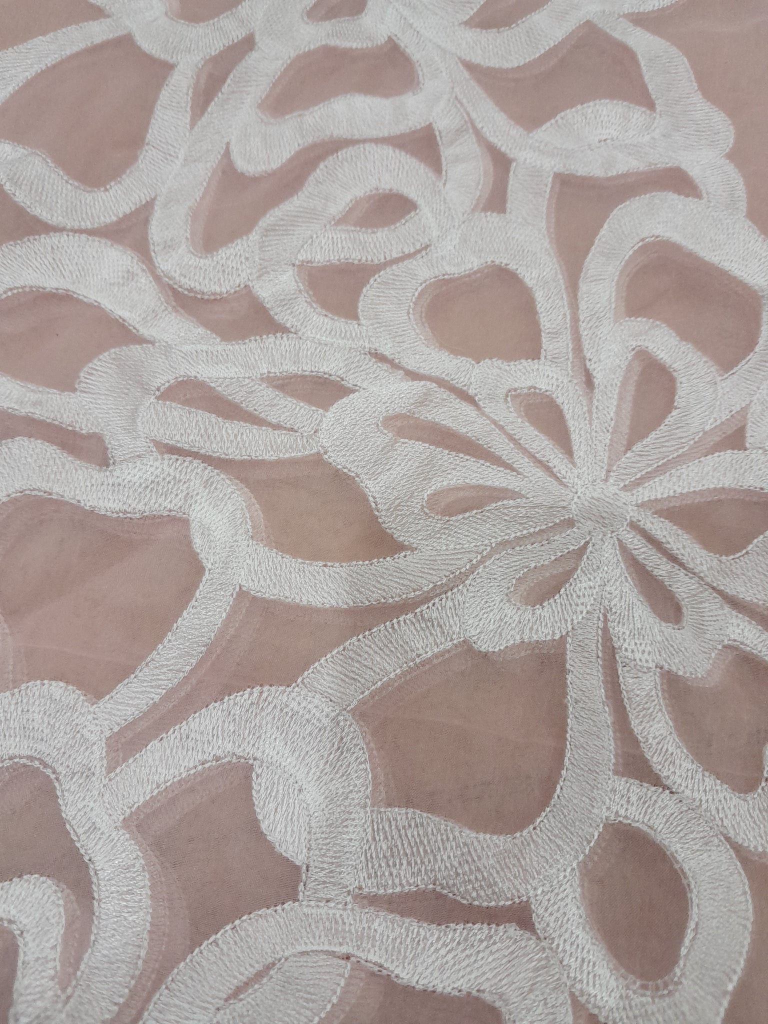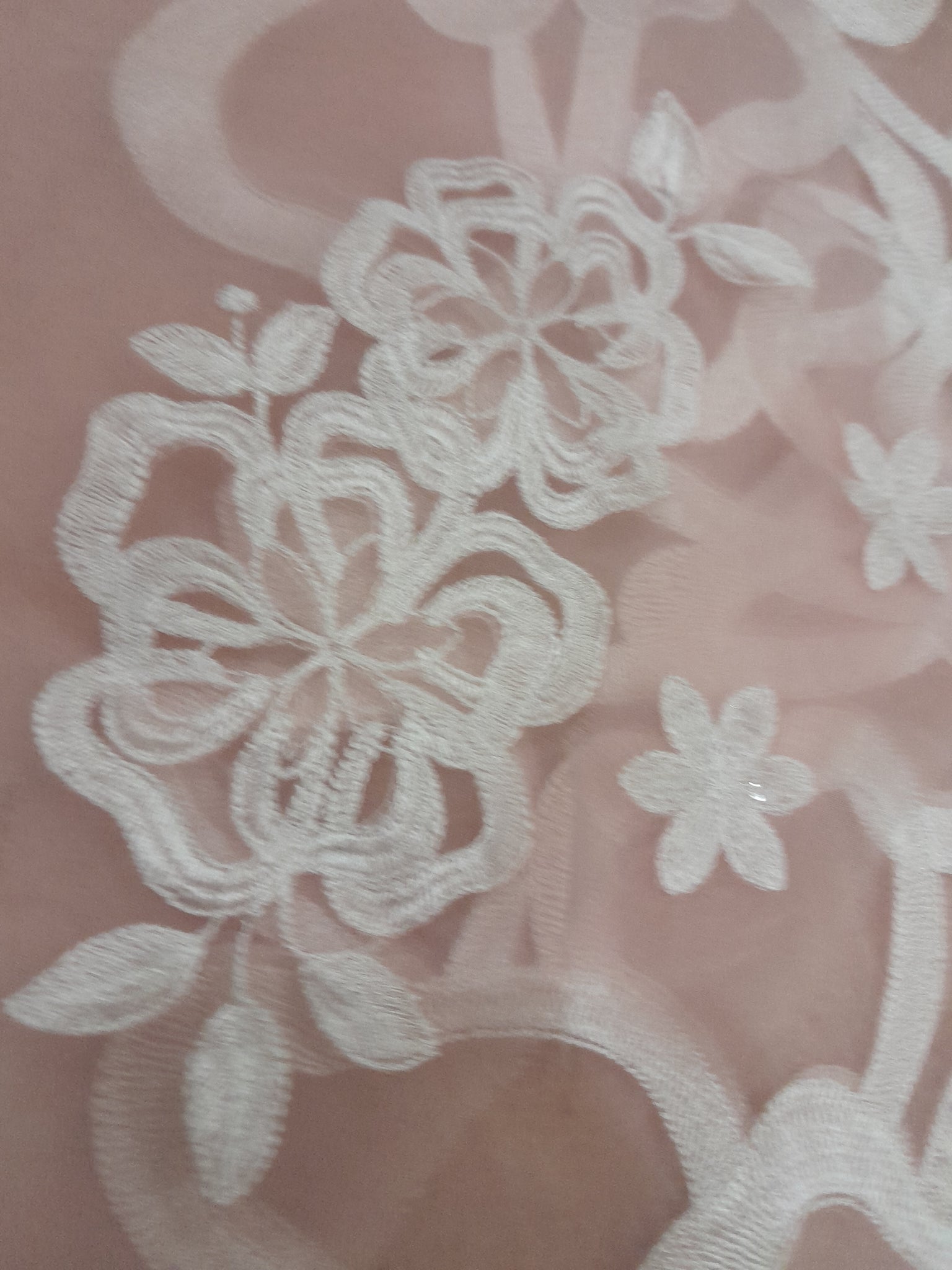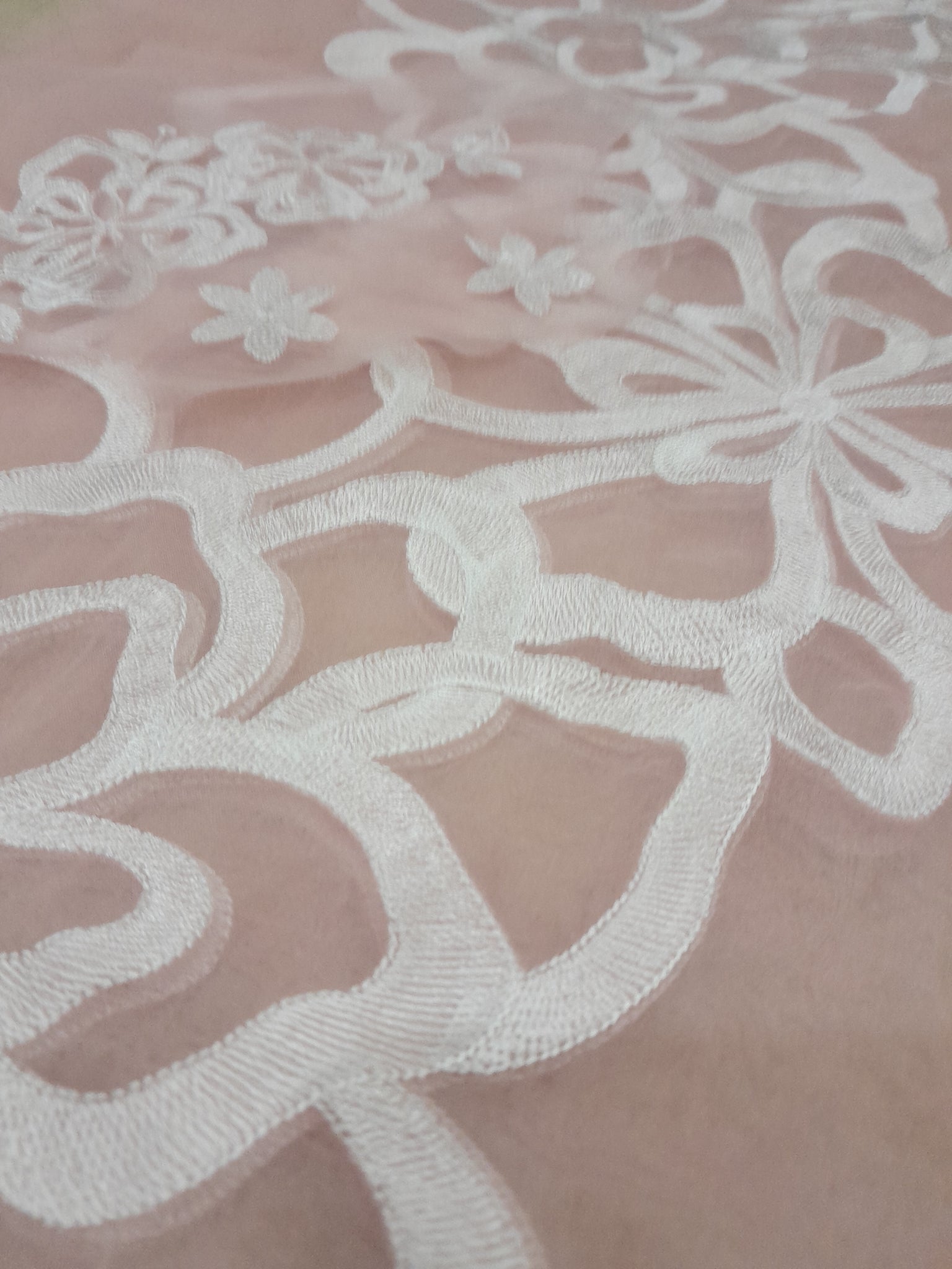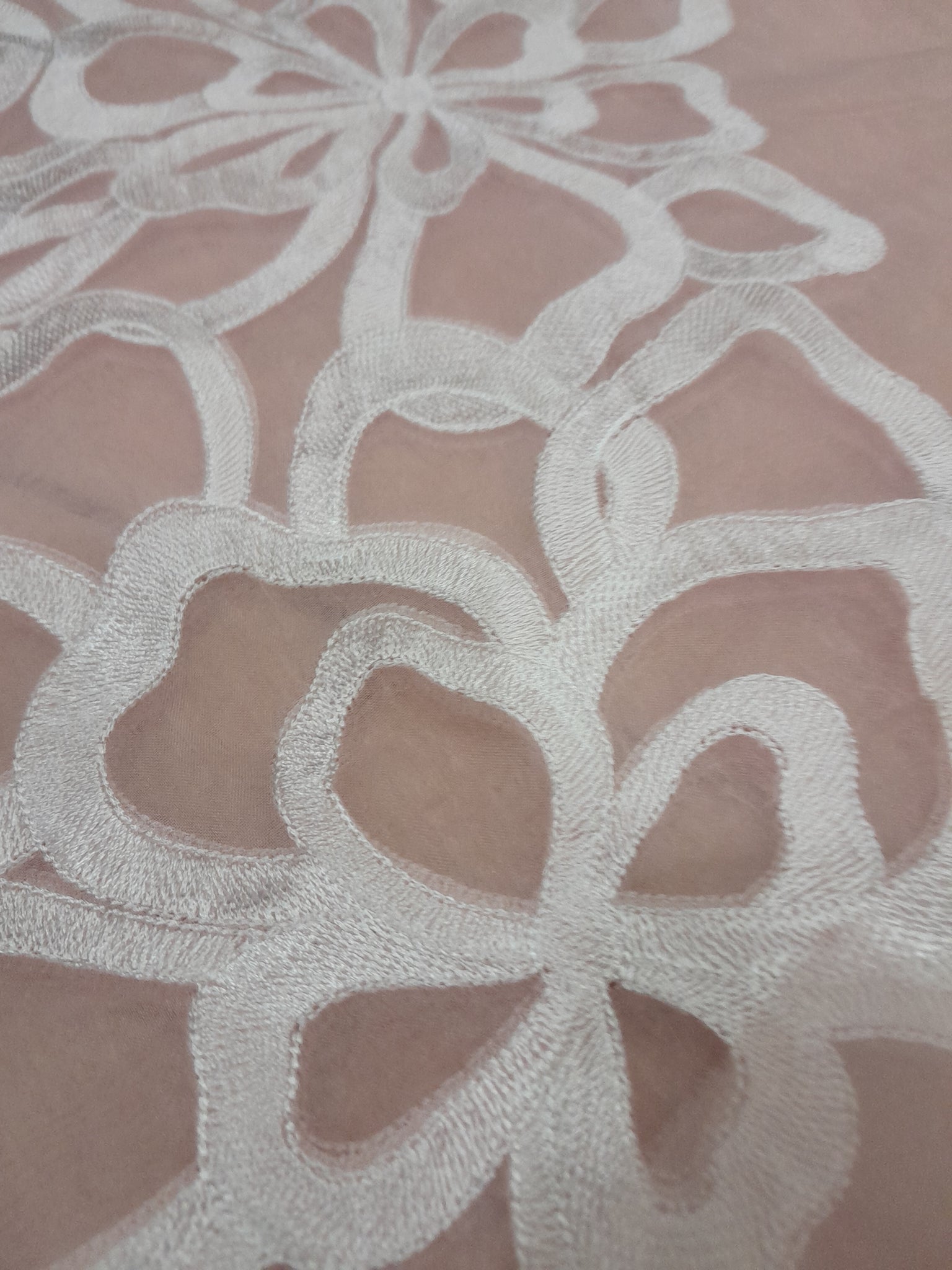 One thread embroidered bunch for Neckline with 3D flower to be attached separately with heavy transparent sequins embellishments.