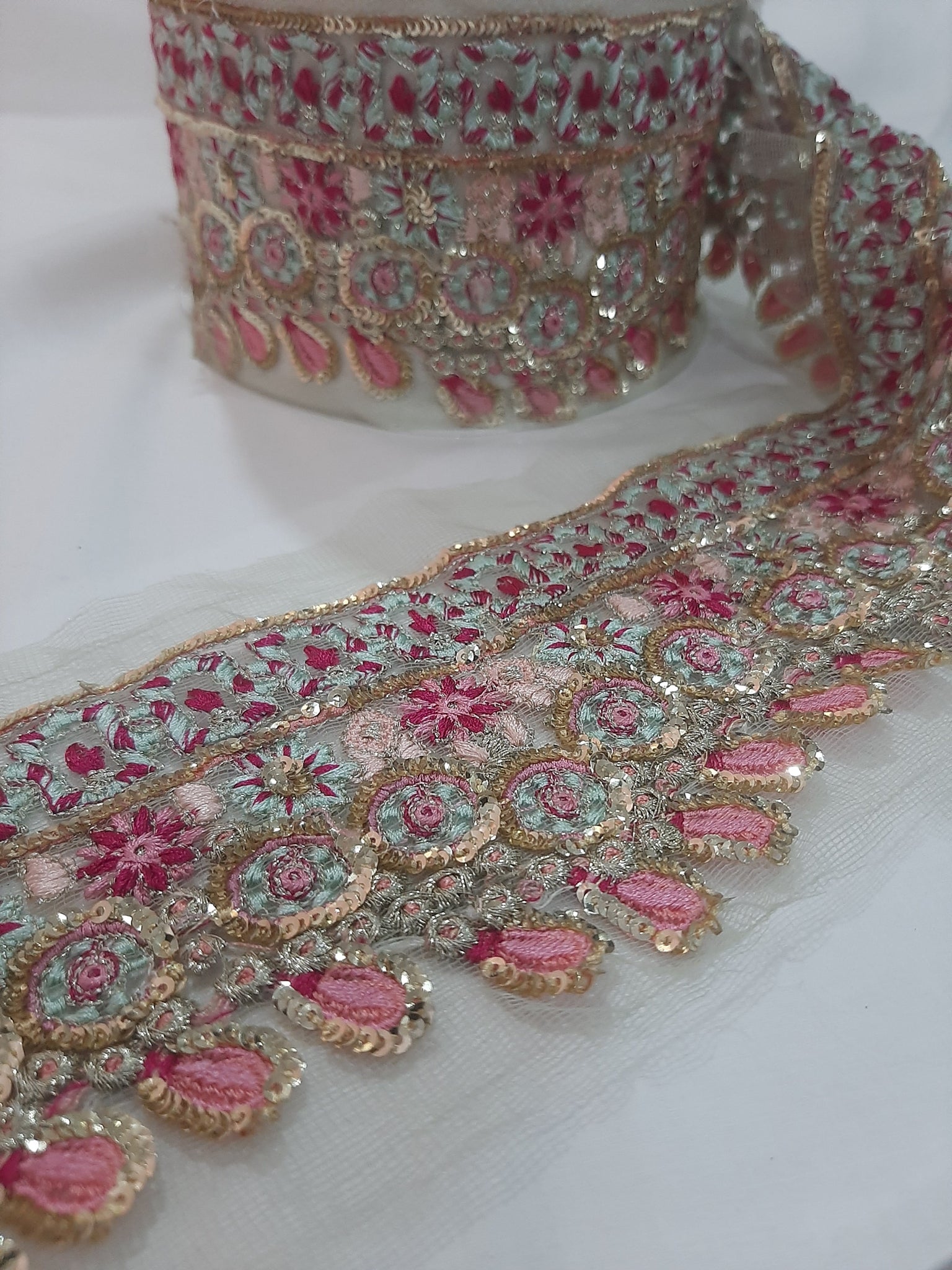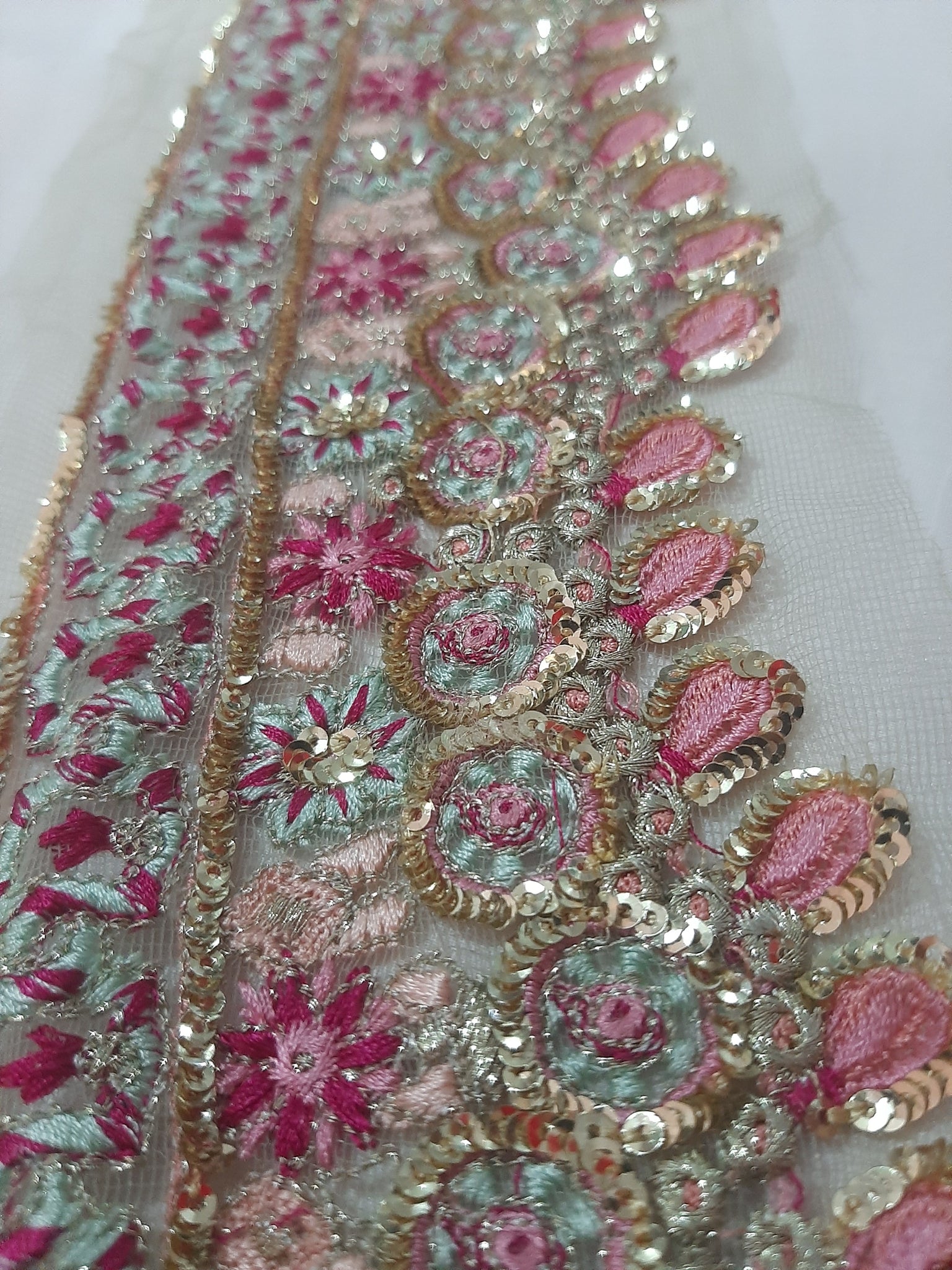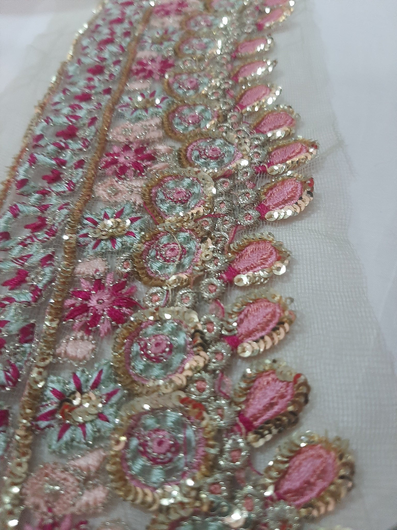 Heavily thread and golden tilla embroidered with golden sequins embellishments.