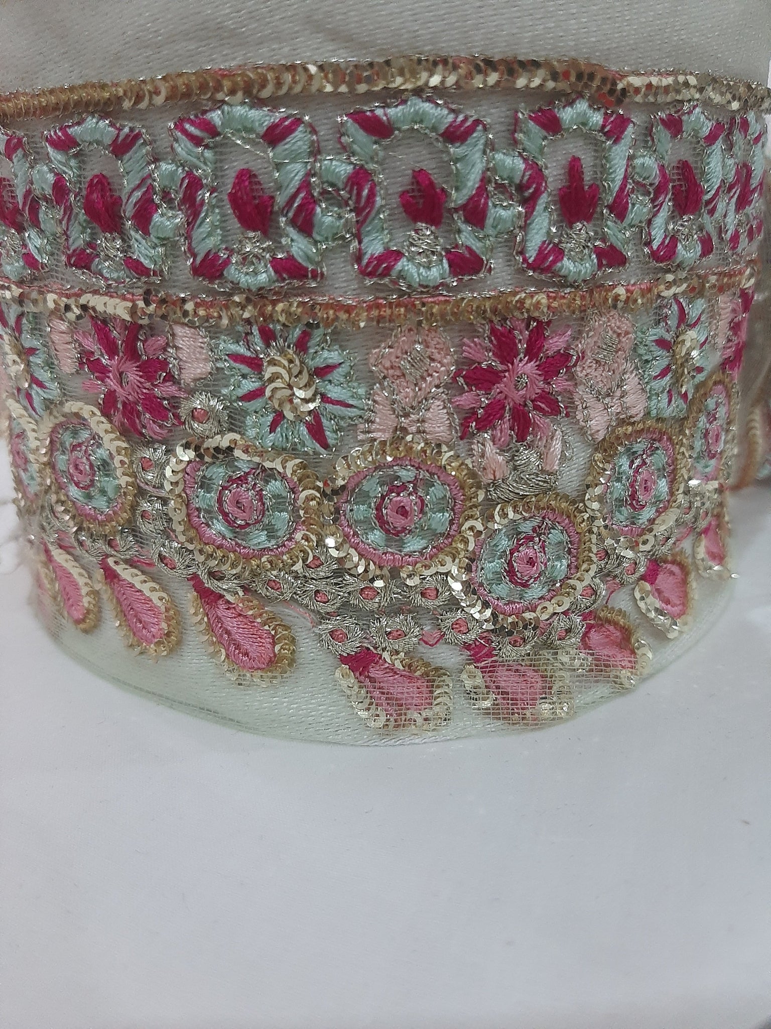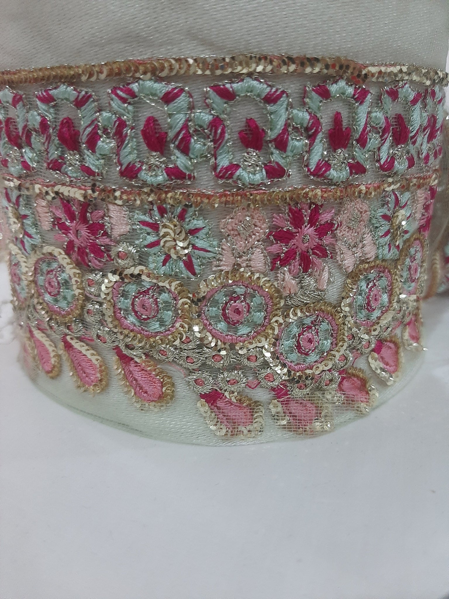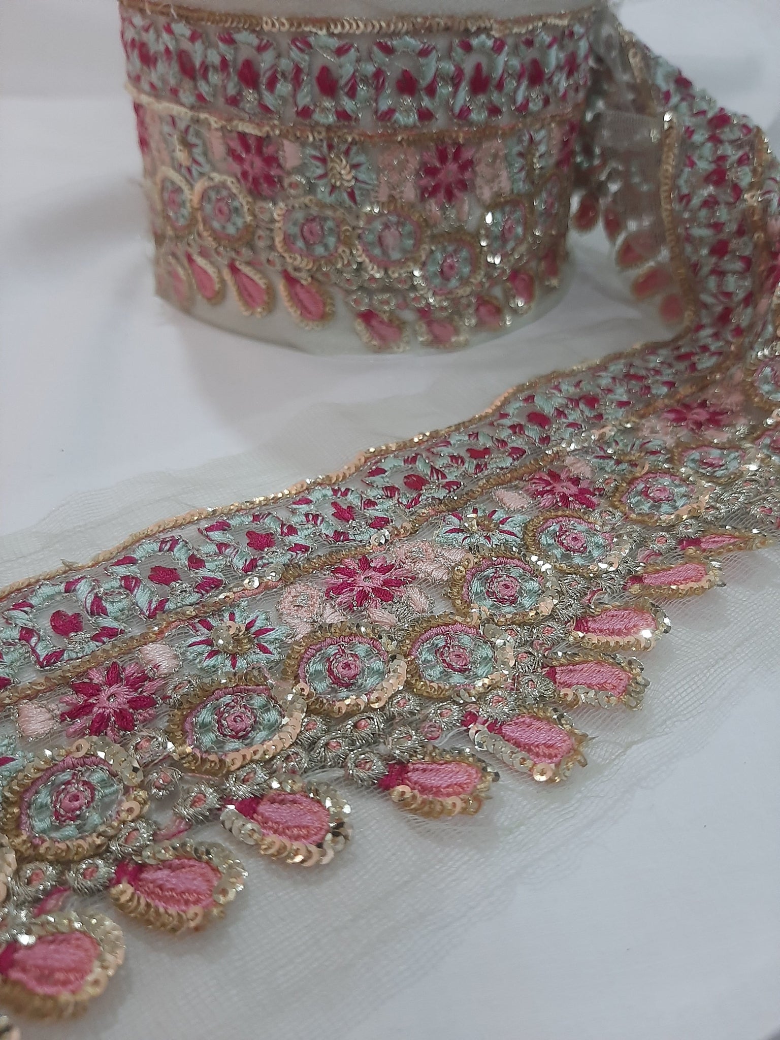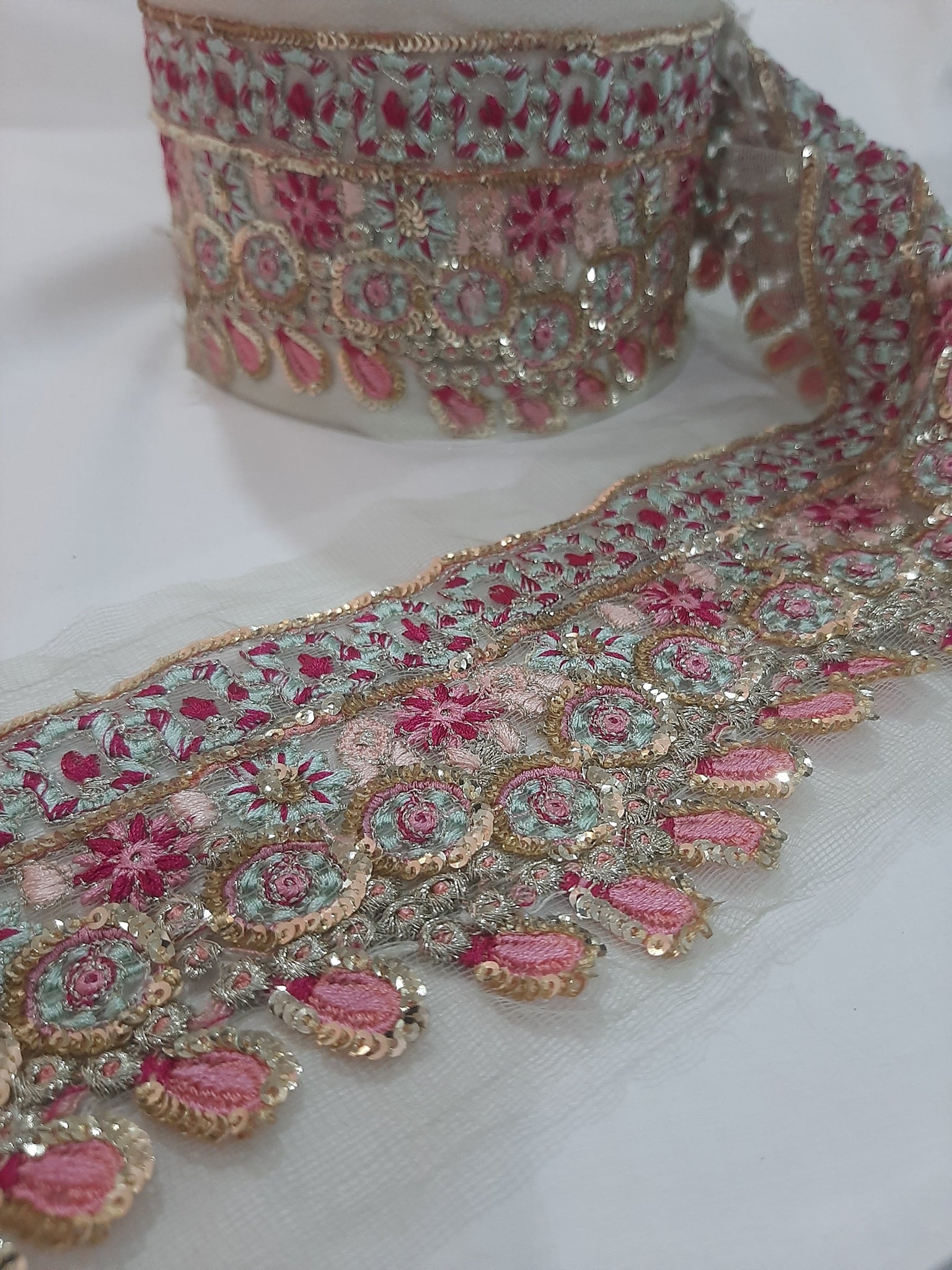 Heavily thread and golden tilla embroidered with golden sequins embellishments.