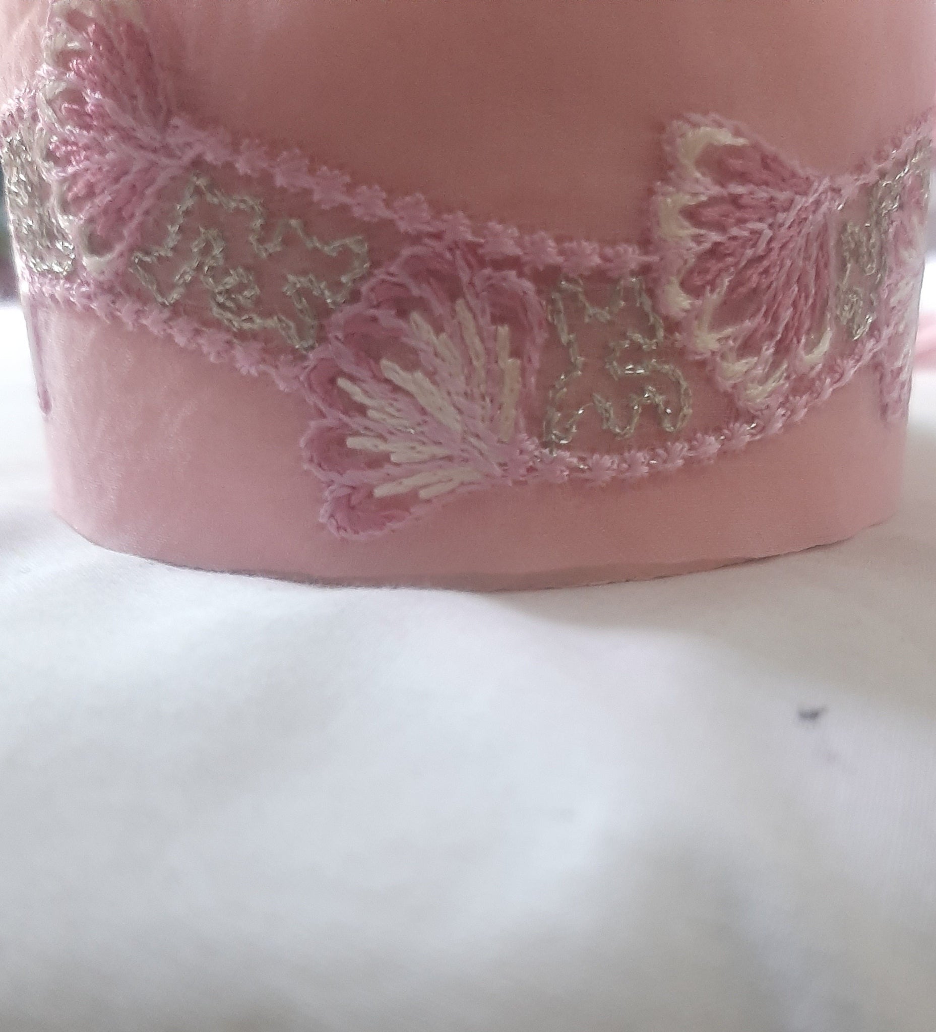 Fully thread and lighest golden tilla embroidered.