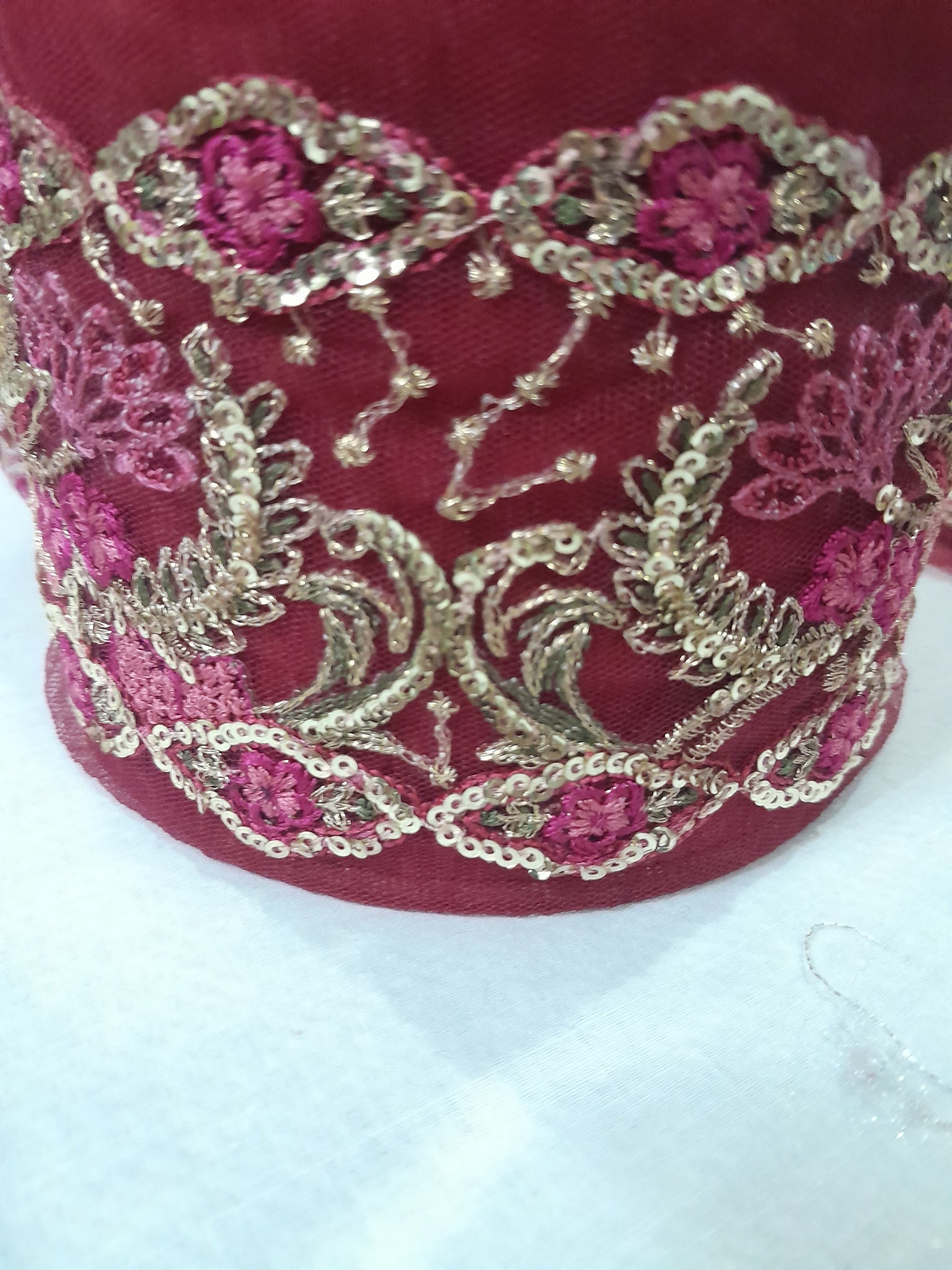 Heavily thread and golden tilla embroidered with golden sequins embellishment.