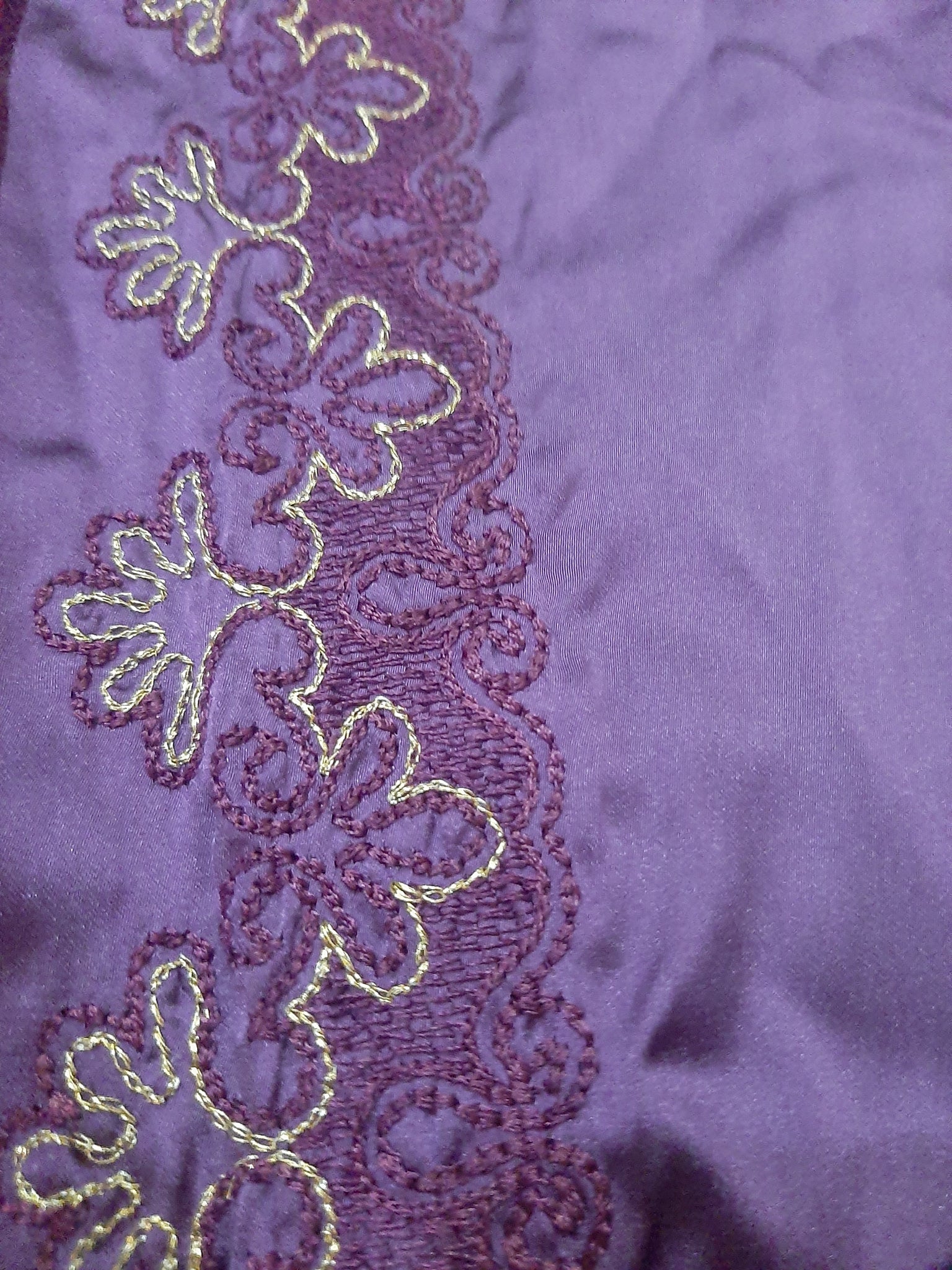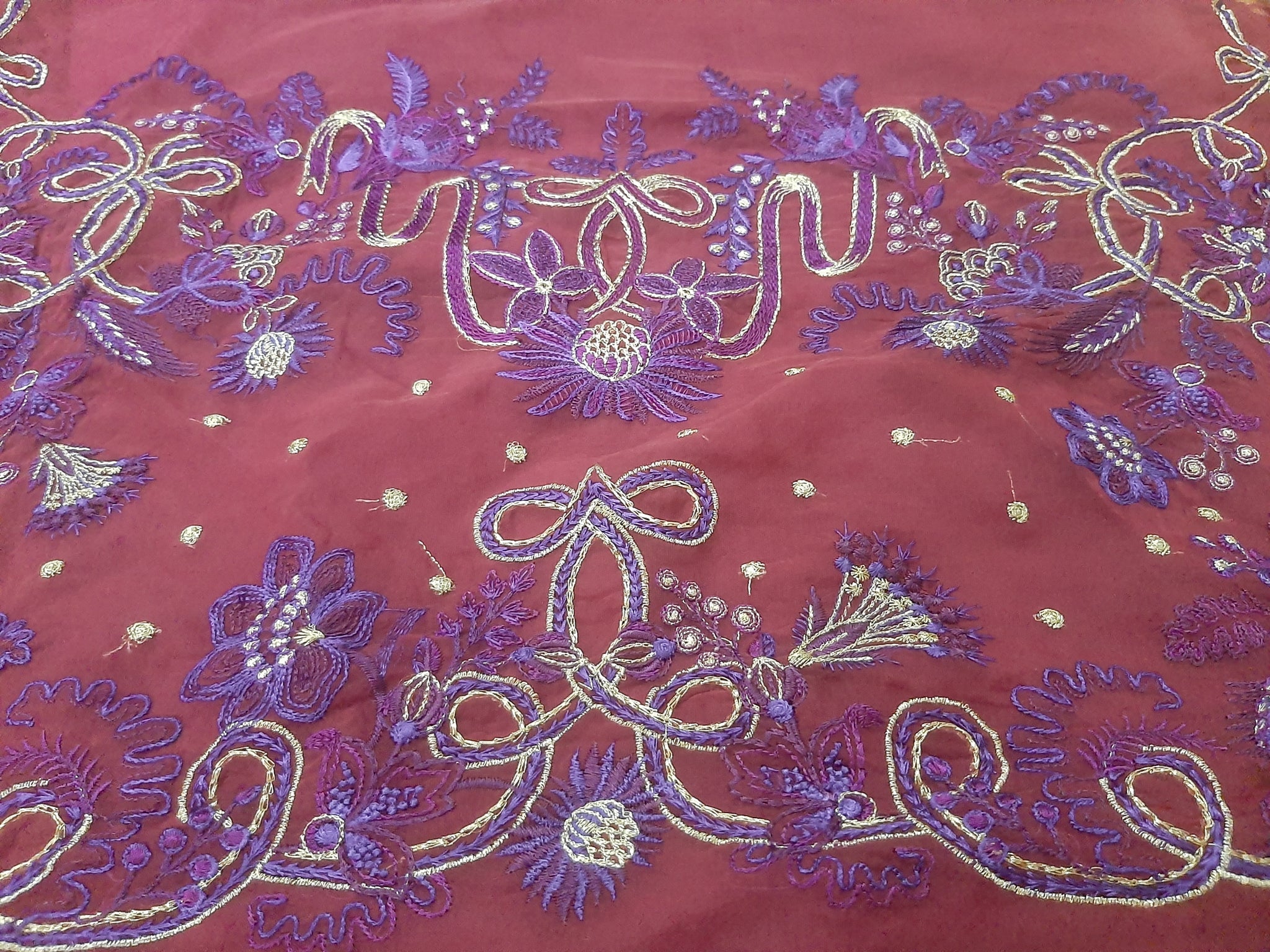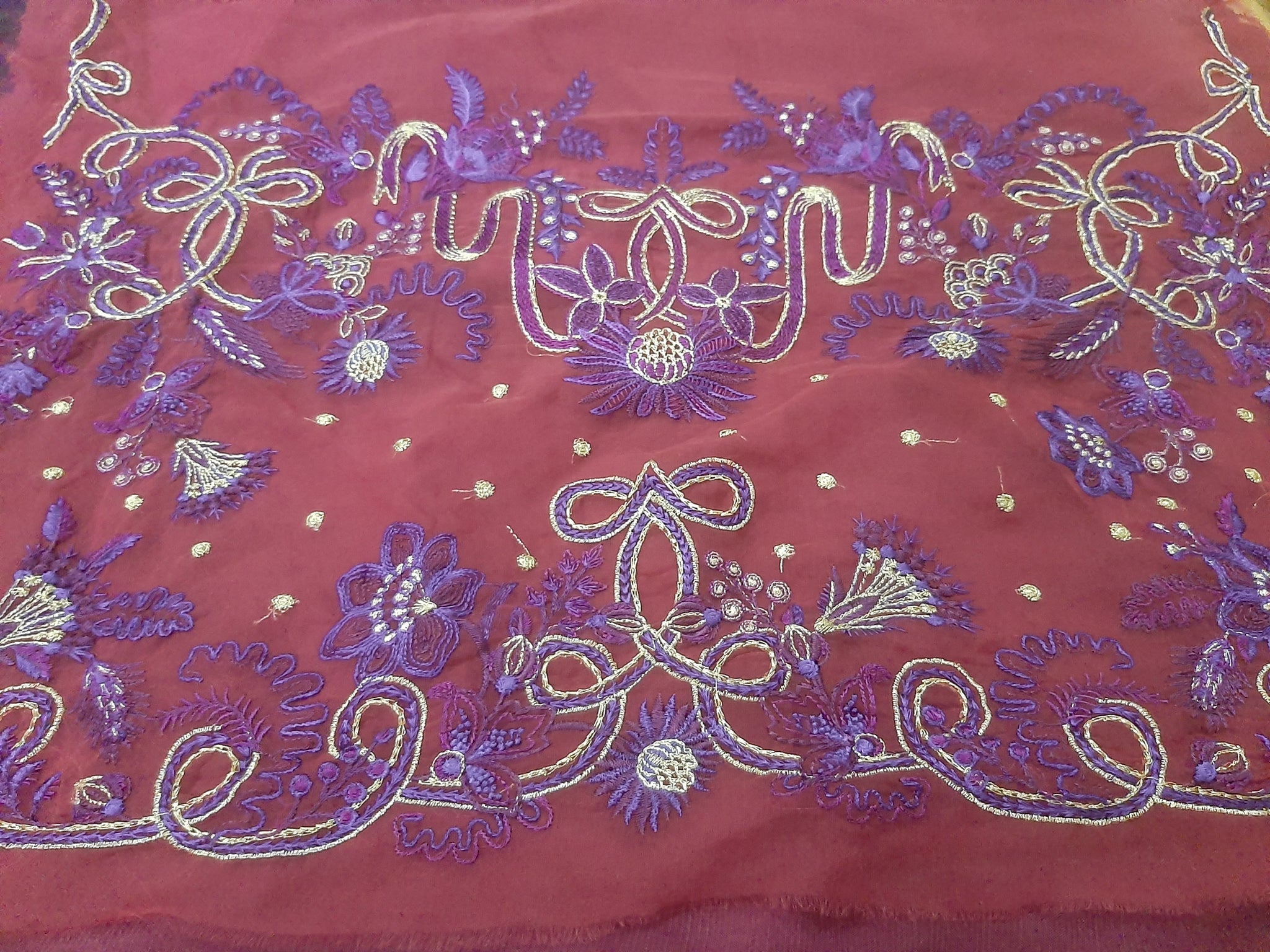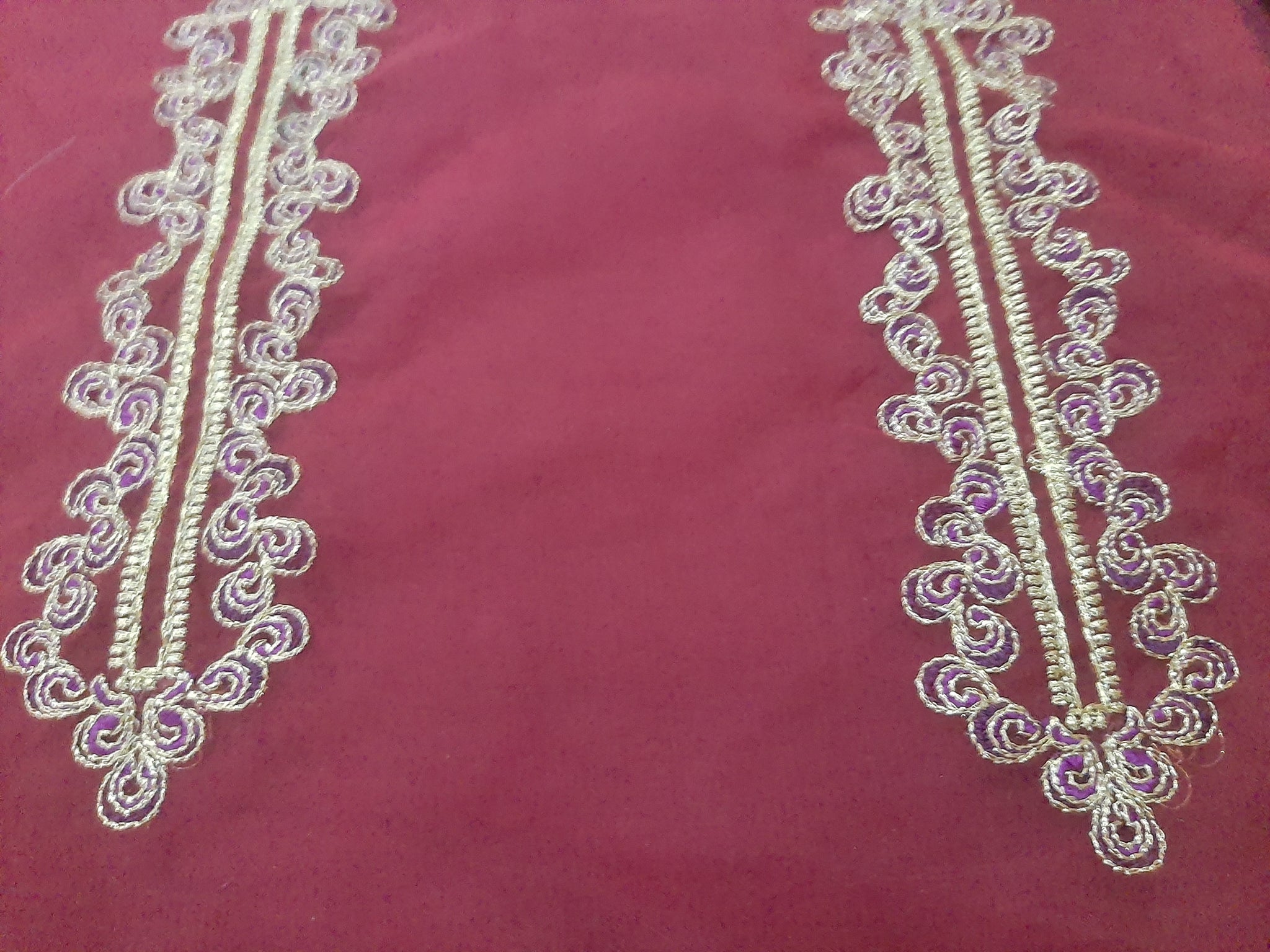 Front: Hem patch on Organza and Daman fornt and back border on silk. Neckline patch on Organza.