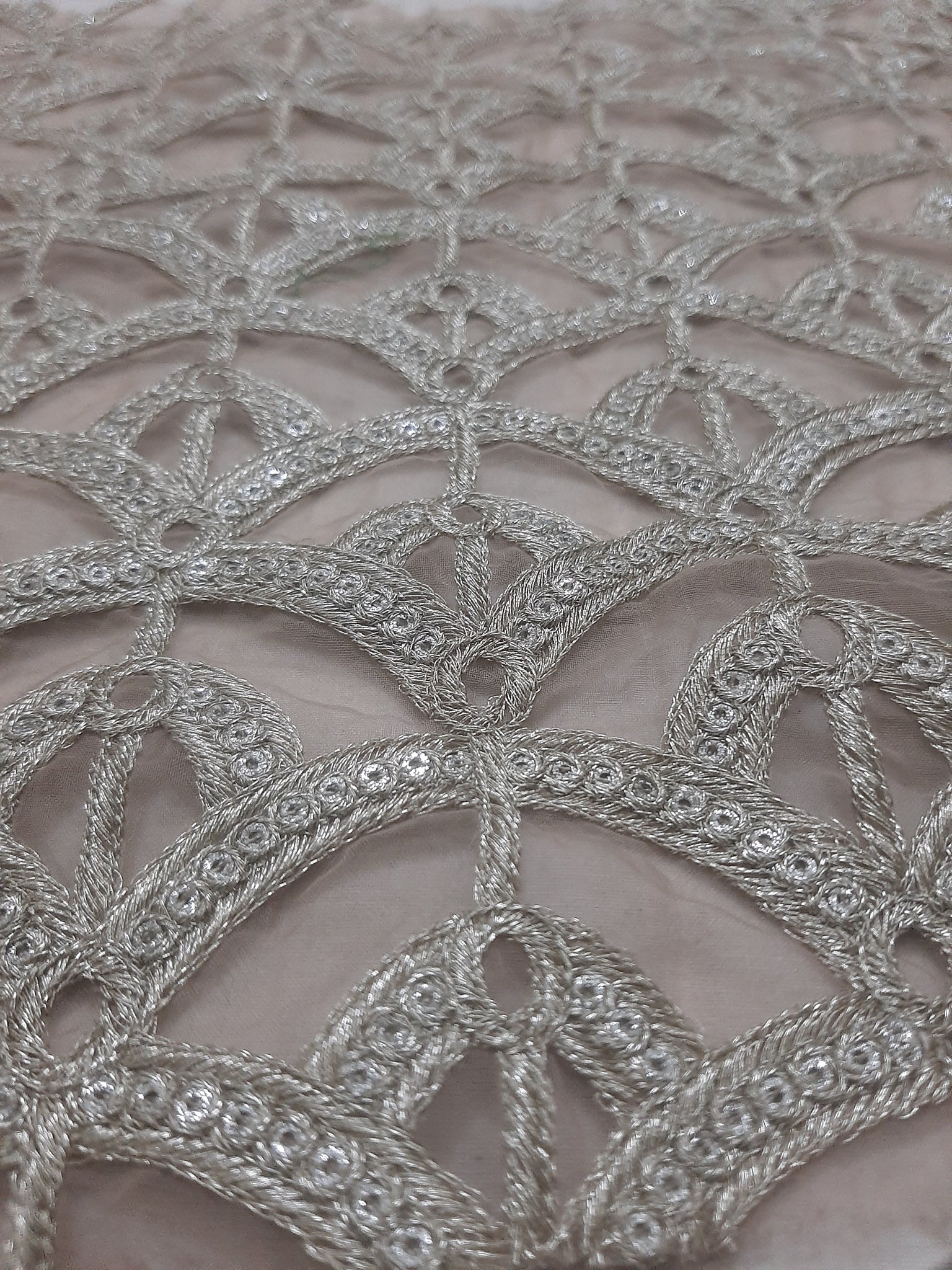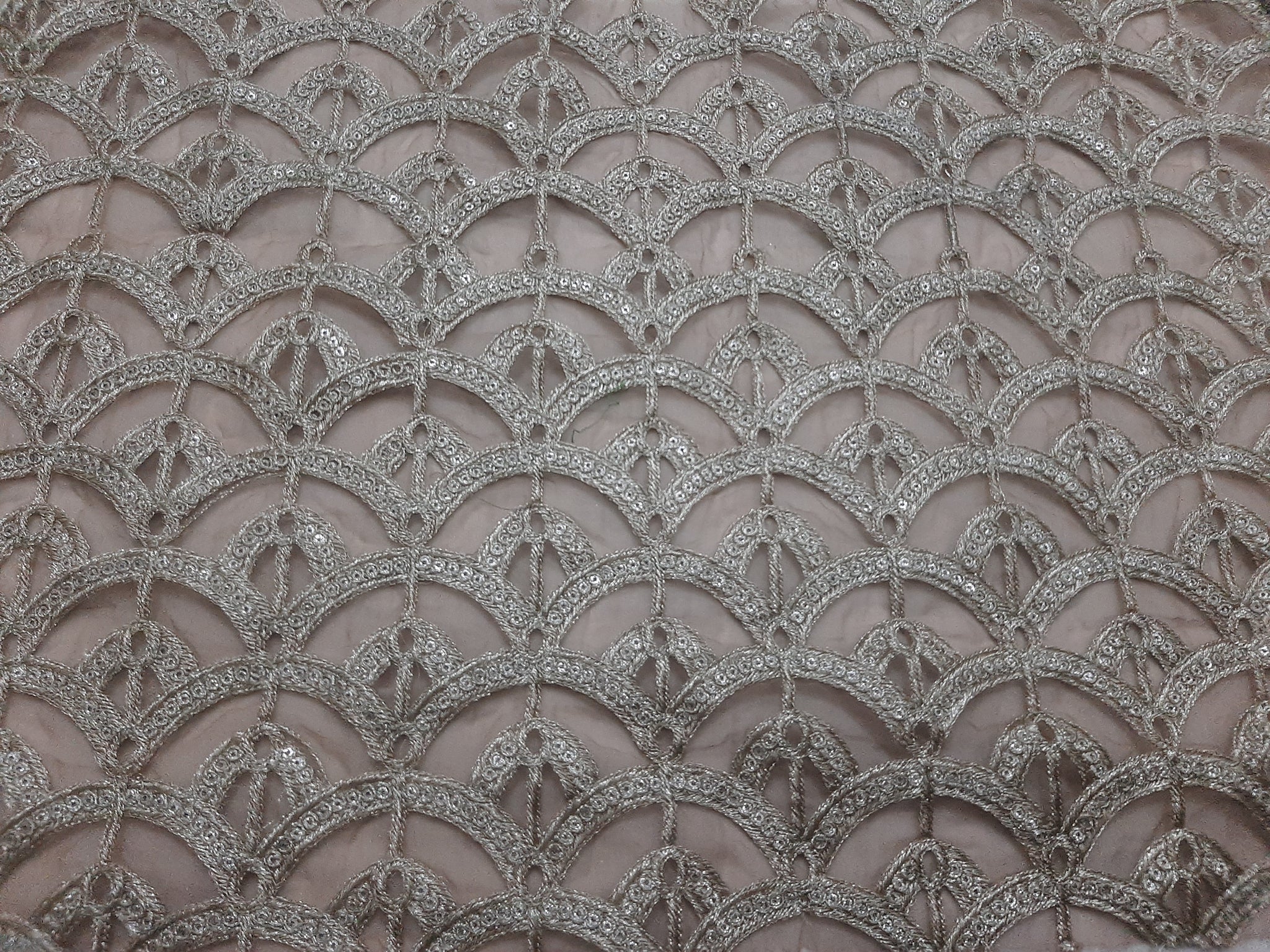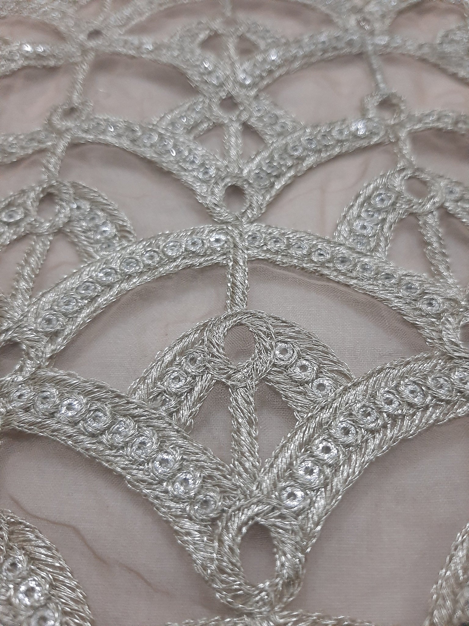 Fully thread and golden tilla embroidery with glittery sequins embellishment