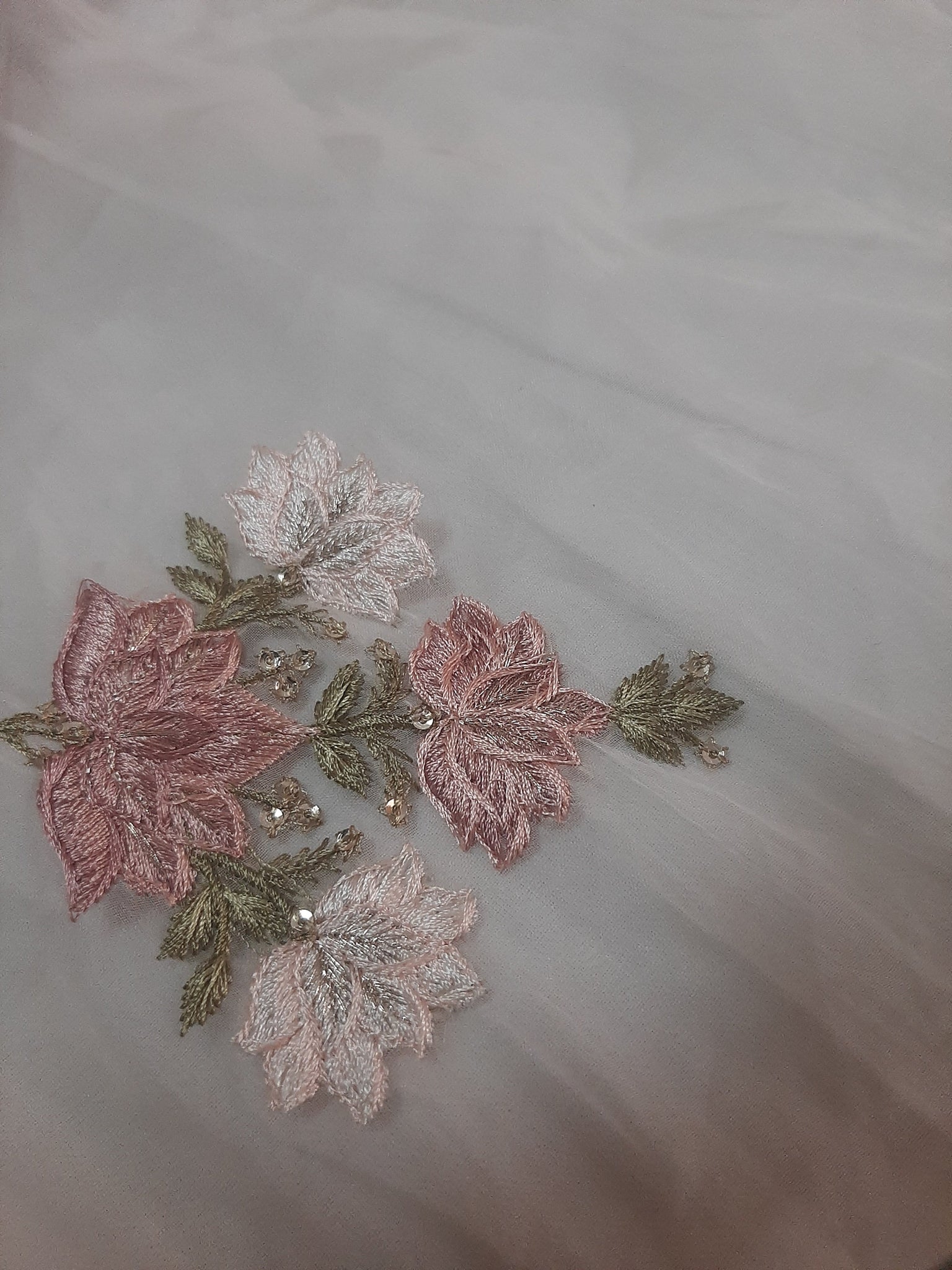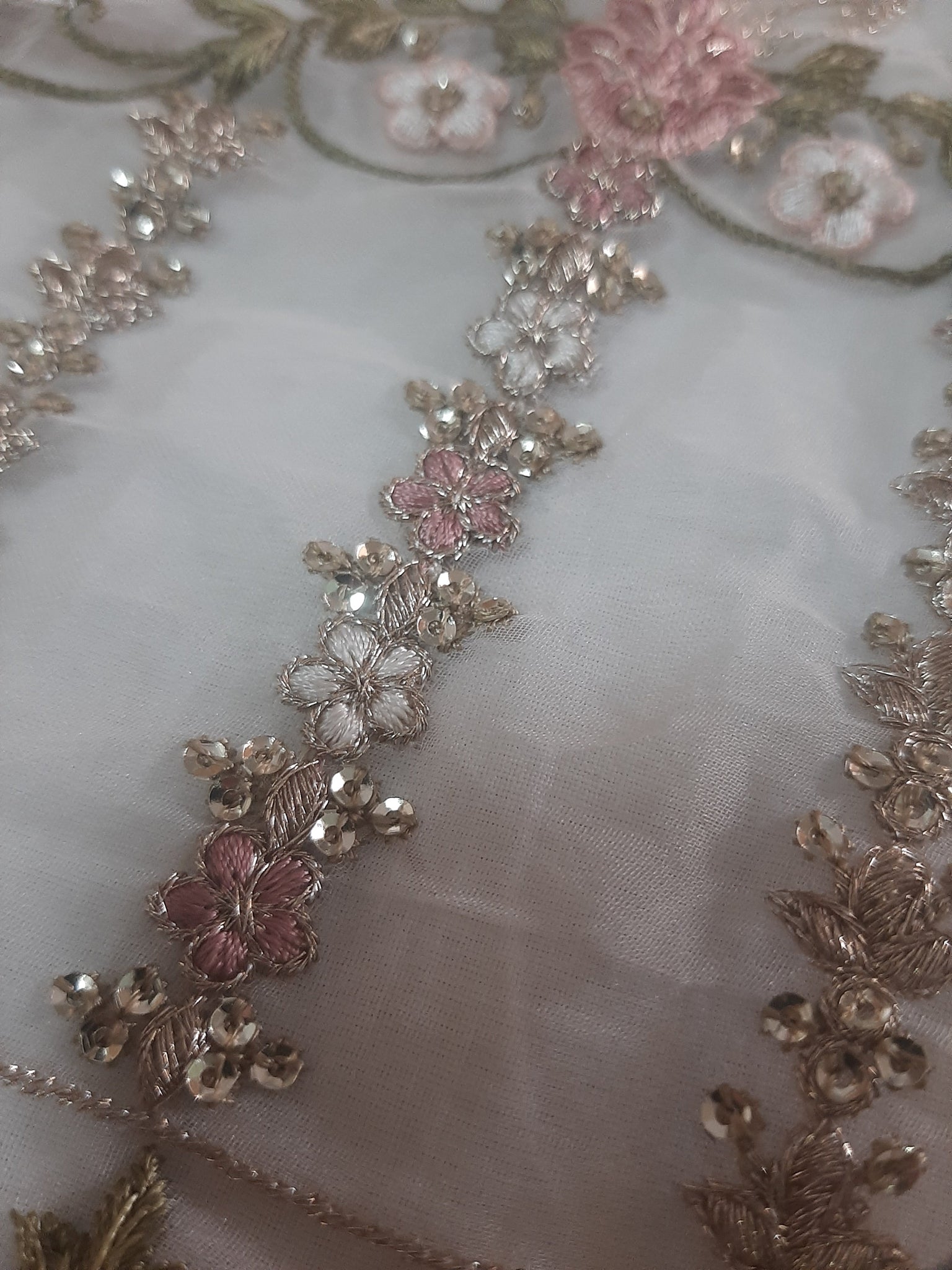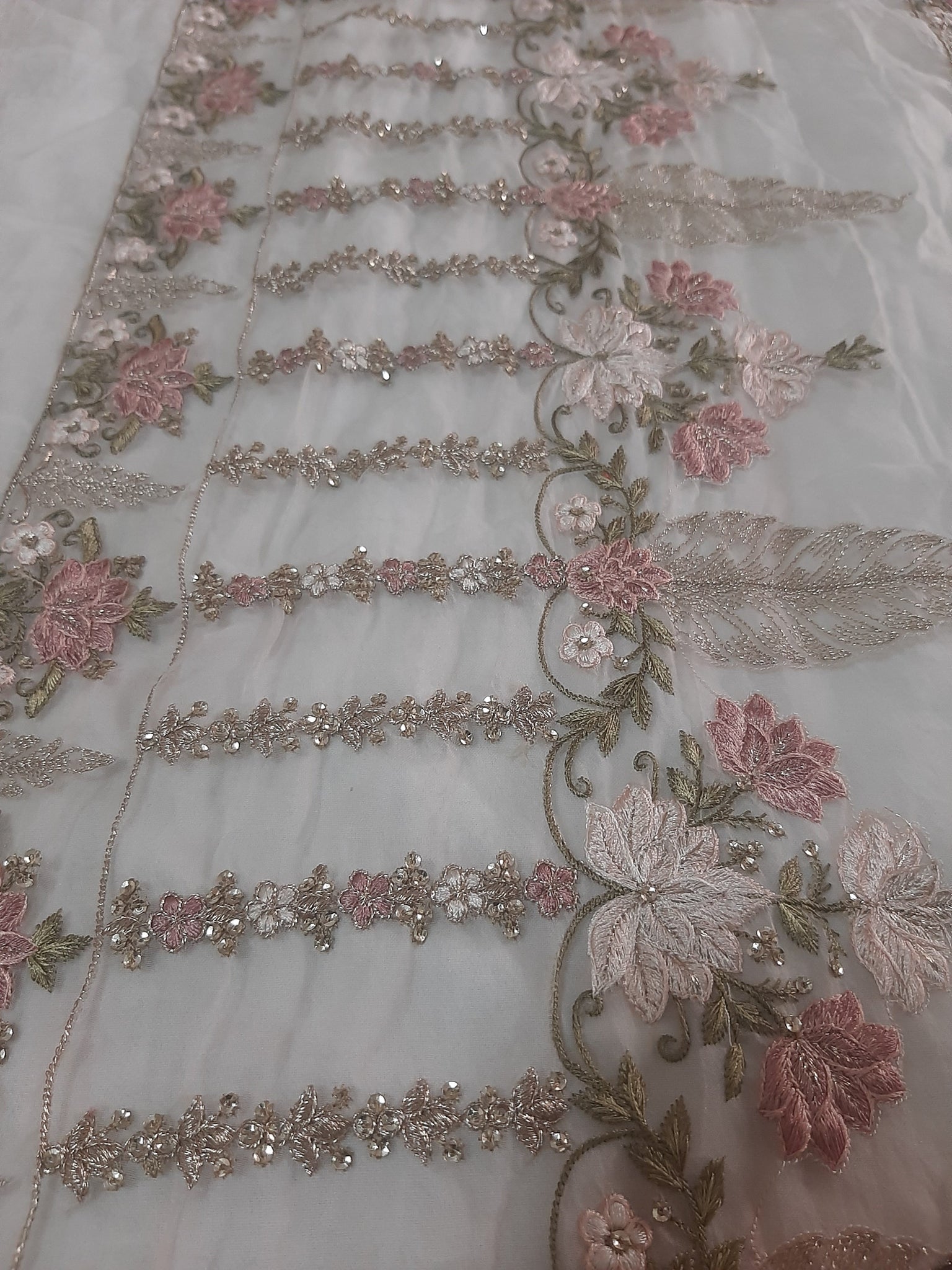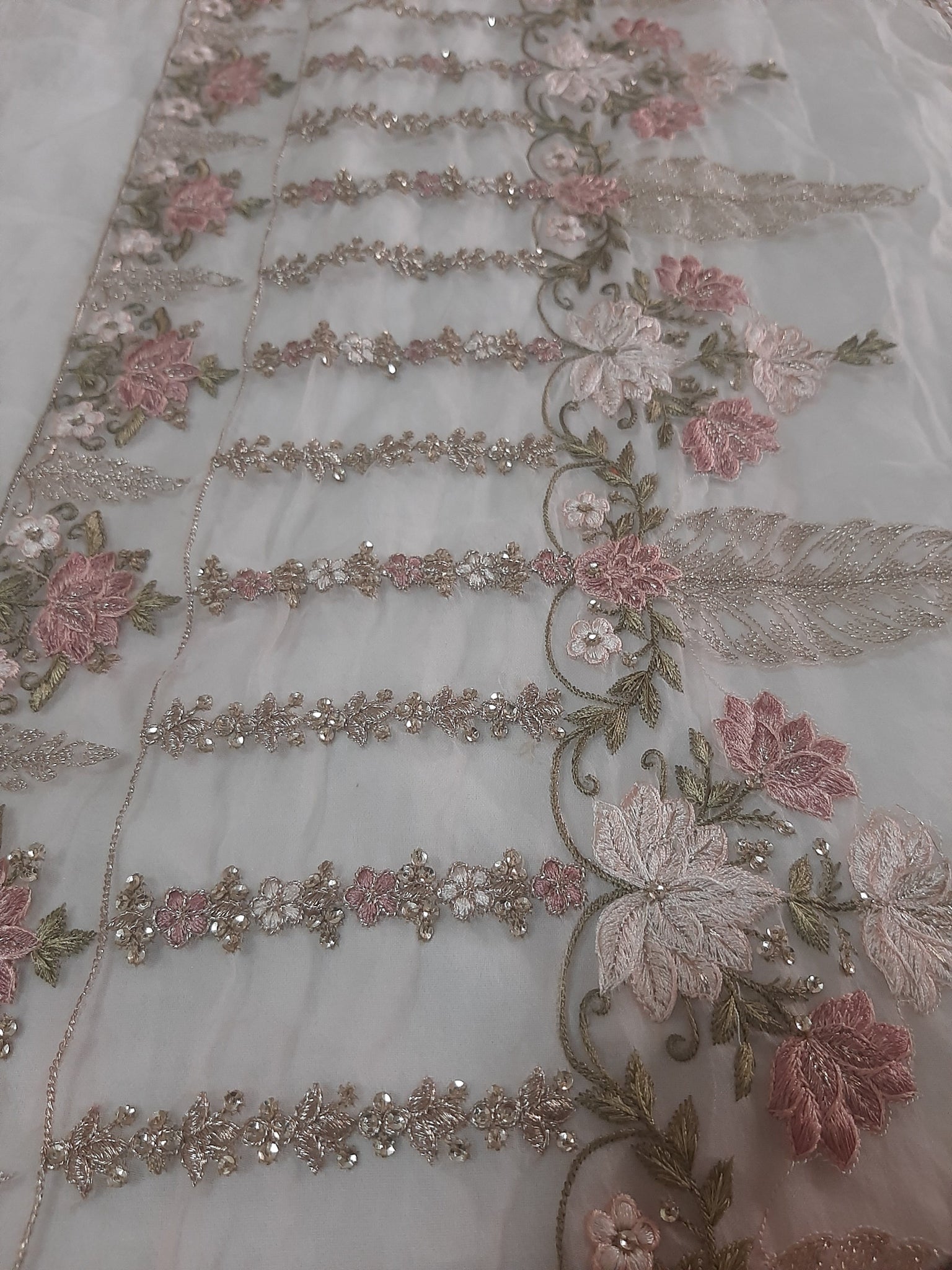 Heavily thread and gold tilla embroidered with sequins embellishment Neckline with side bunches fabric. Length 21 width 19 inches chester.