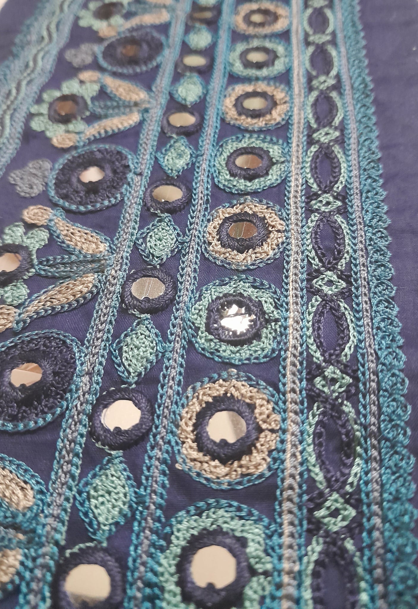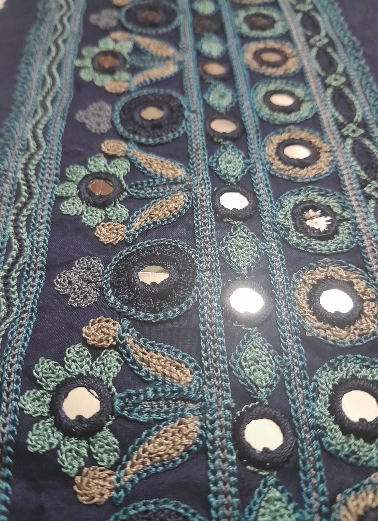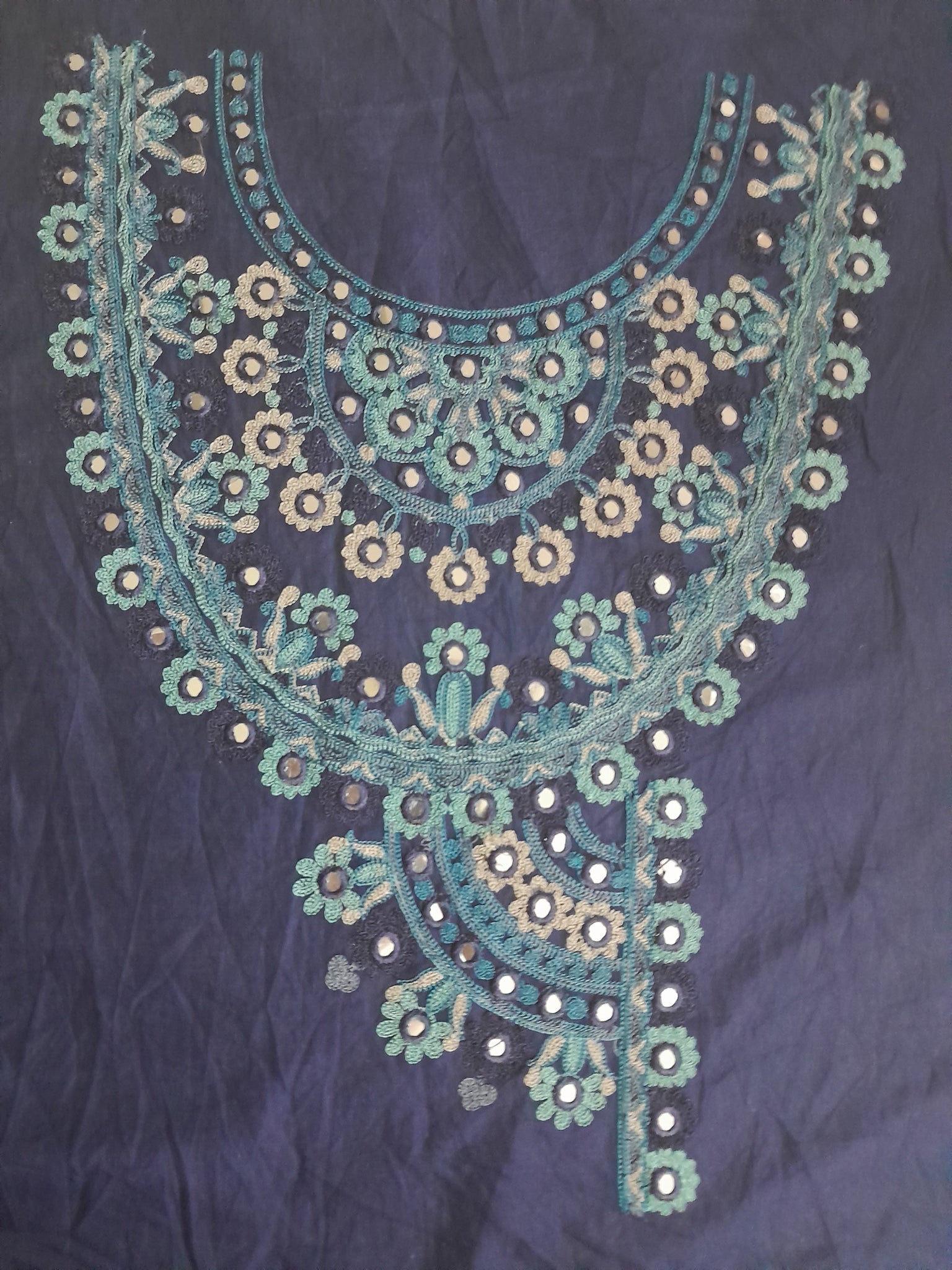 Fully thread  embroidered  with  mirror work.