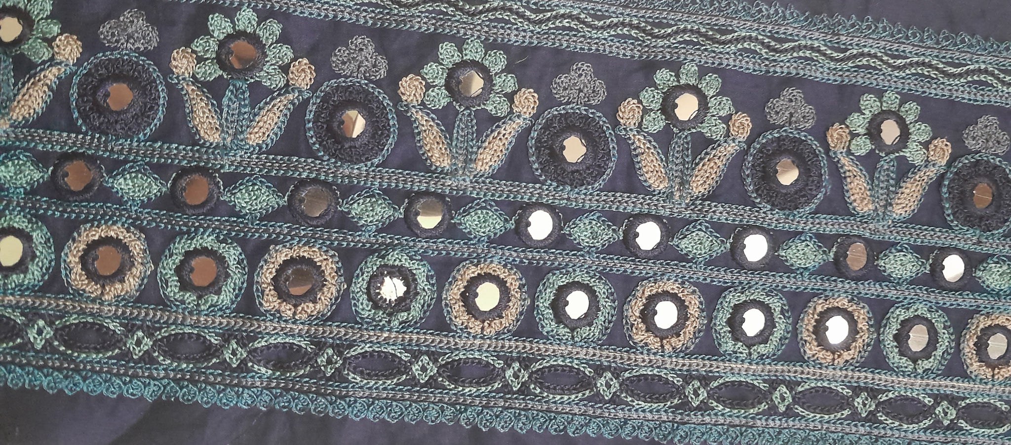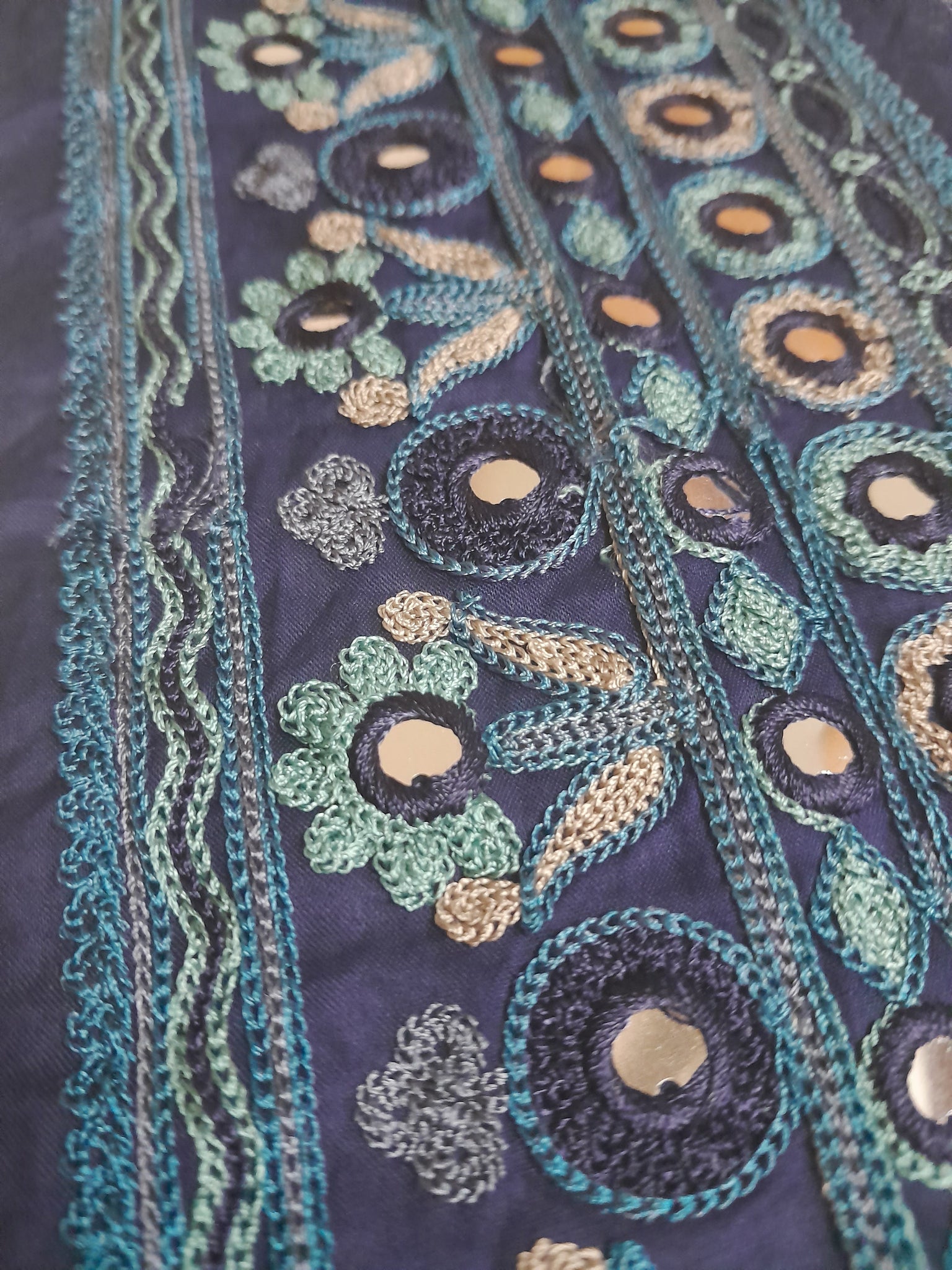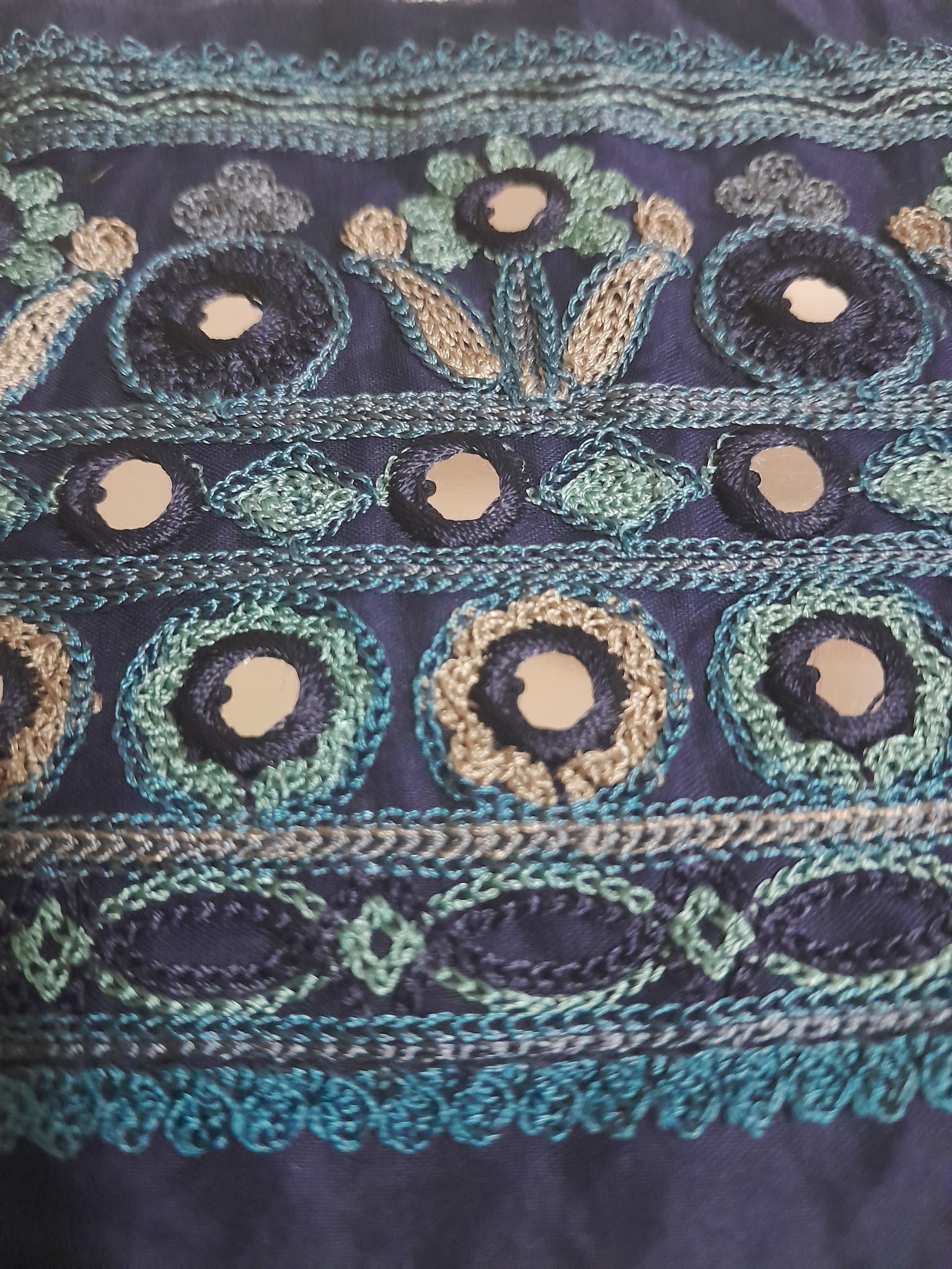 Fully thread  embroidered  with  mirror work.