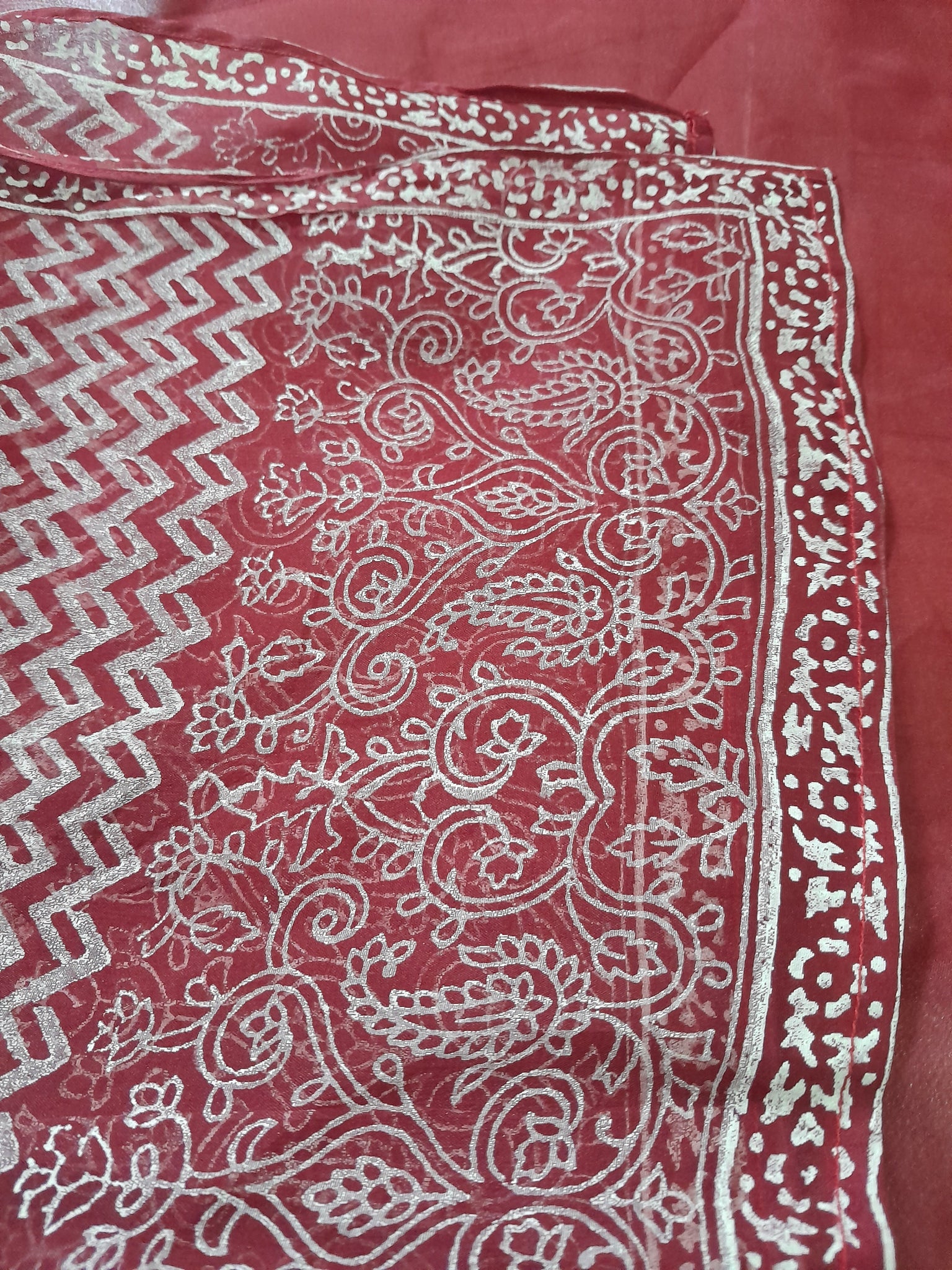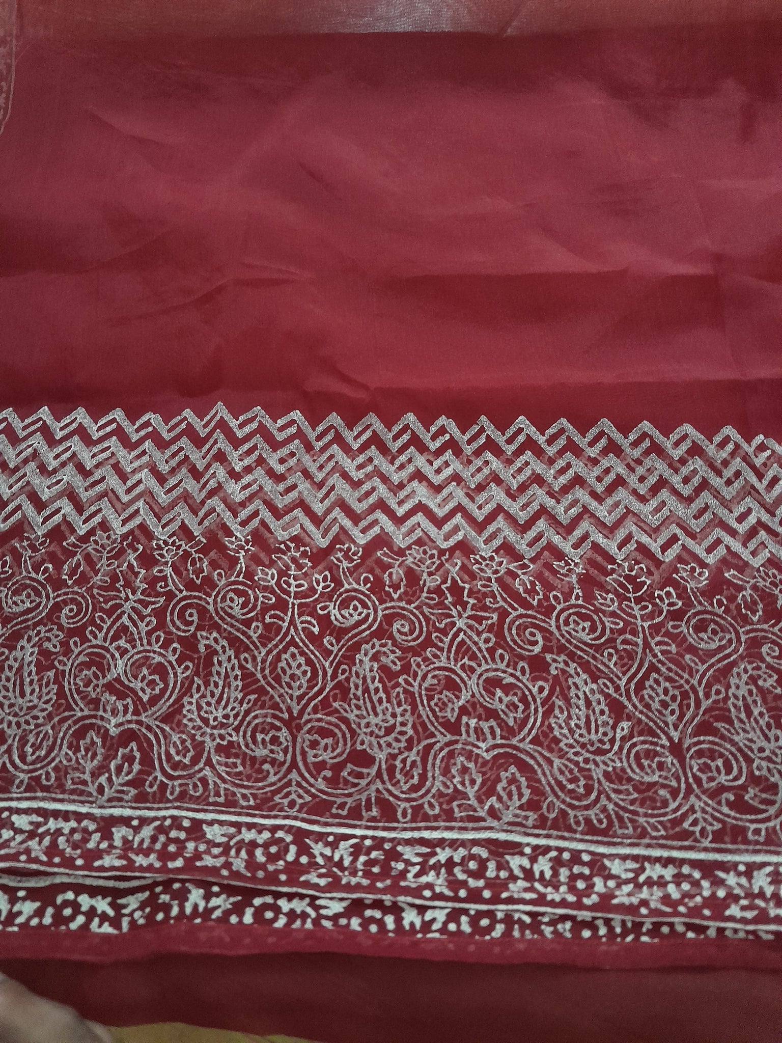Note: minor hole / cutmat edge or side of the duppta, not visible as much.