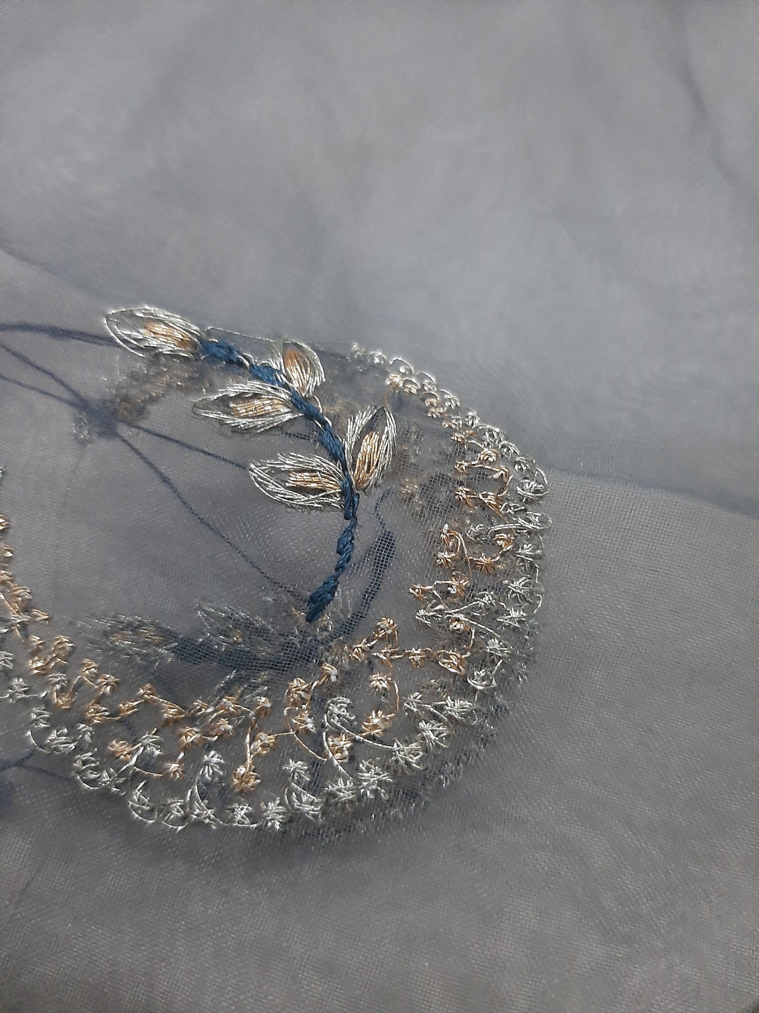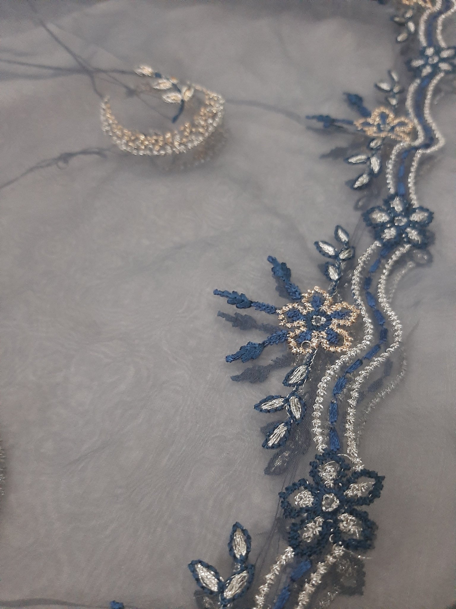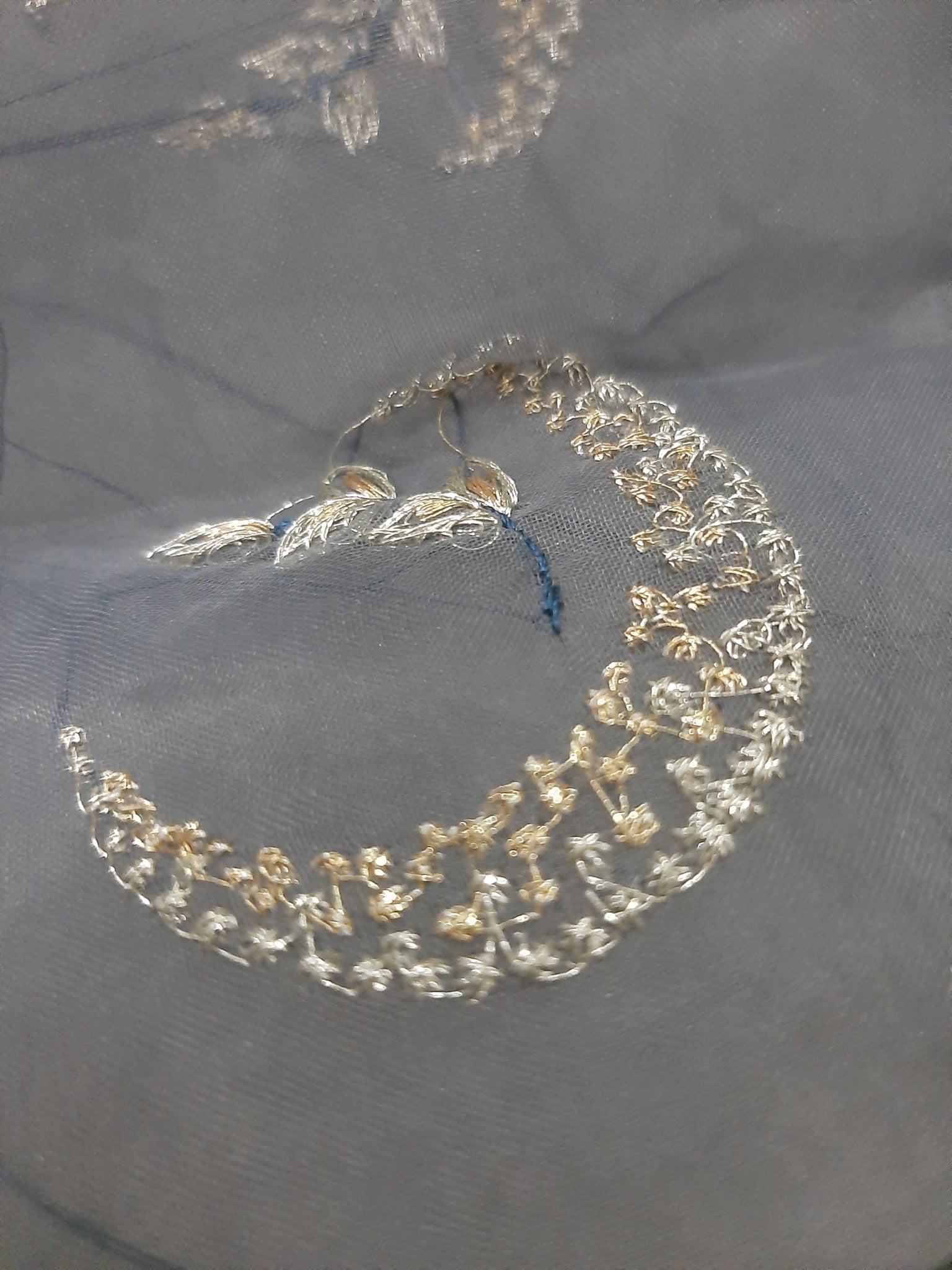 2- sided thread embroidered duppta border length wise and regular Moon style motives