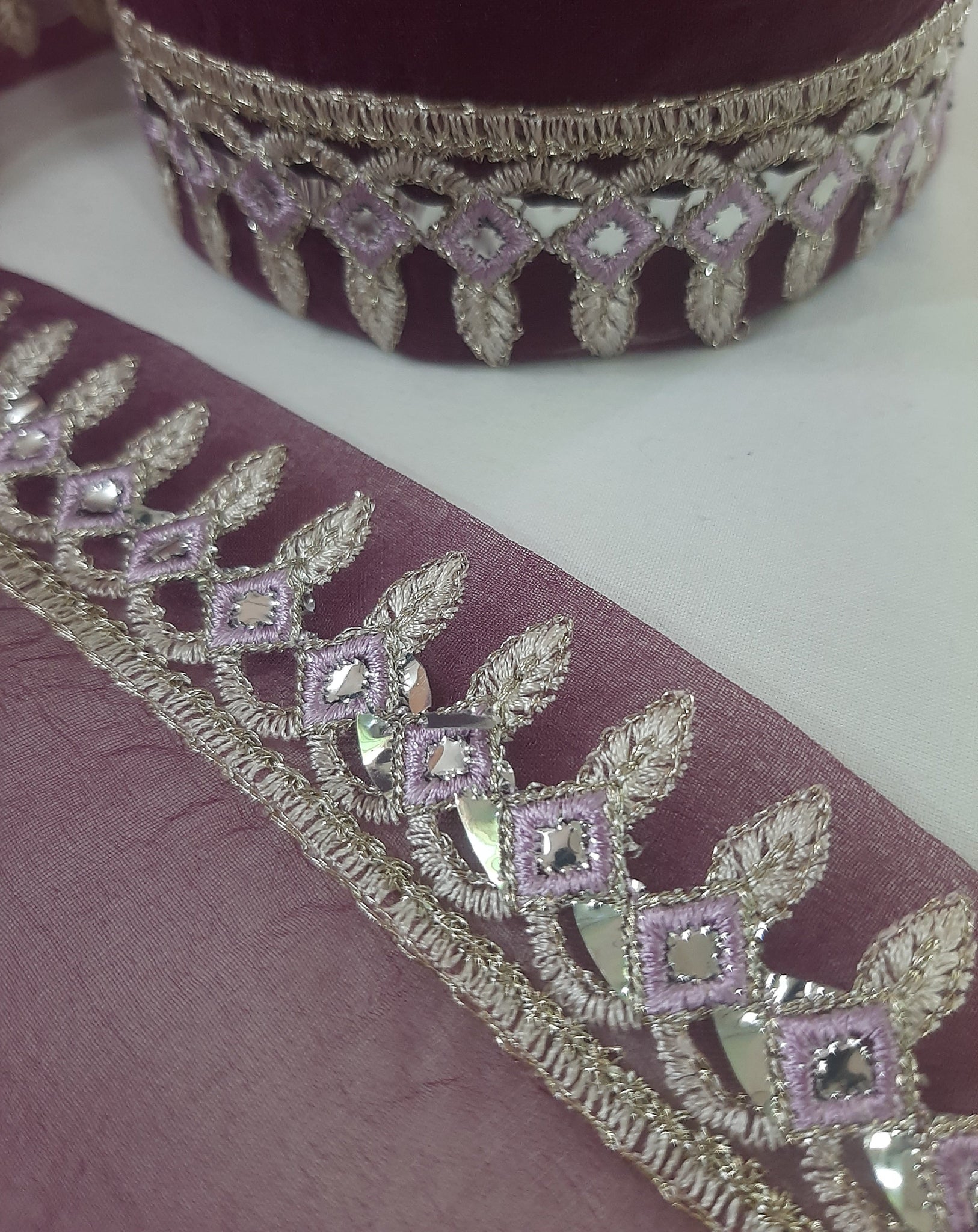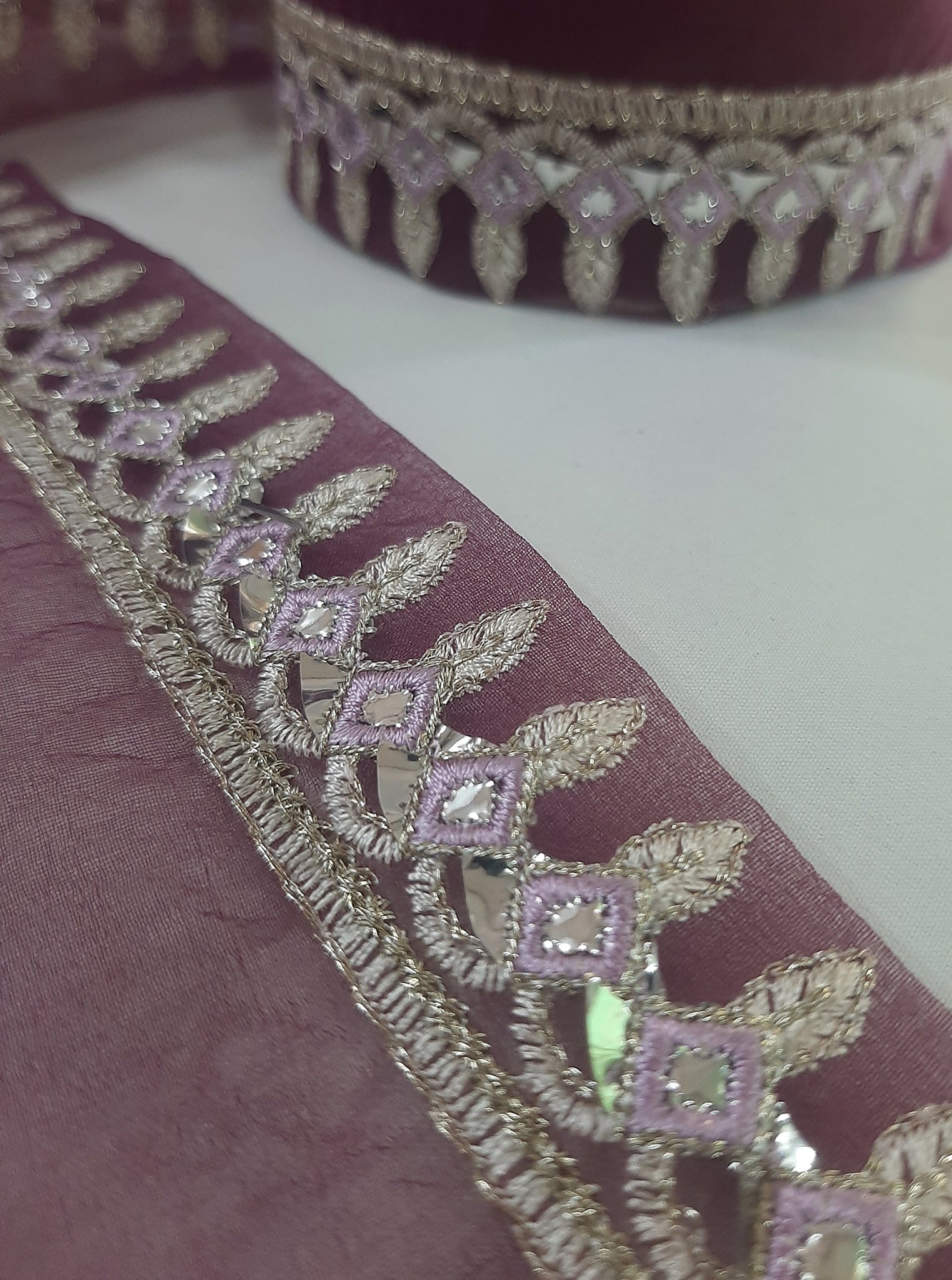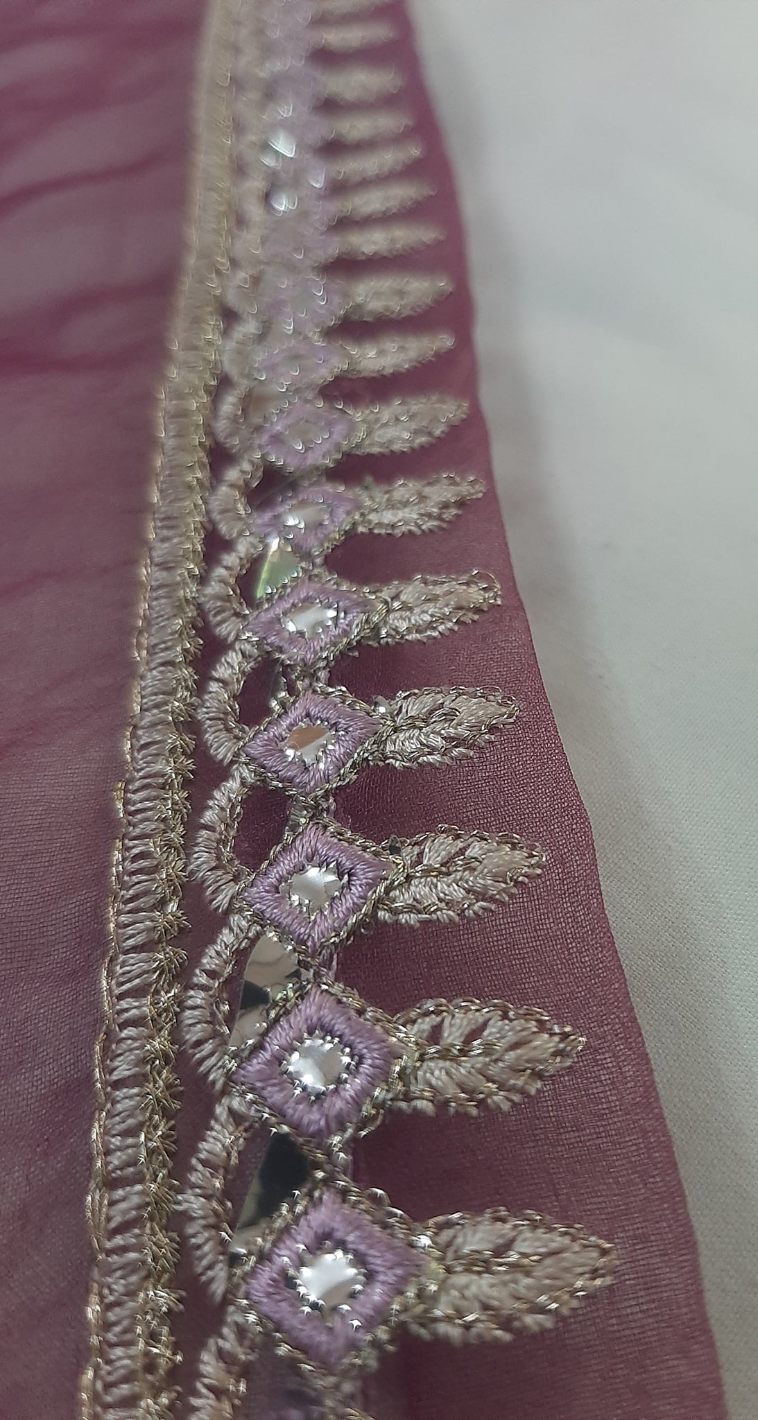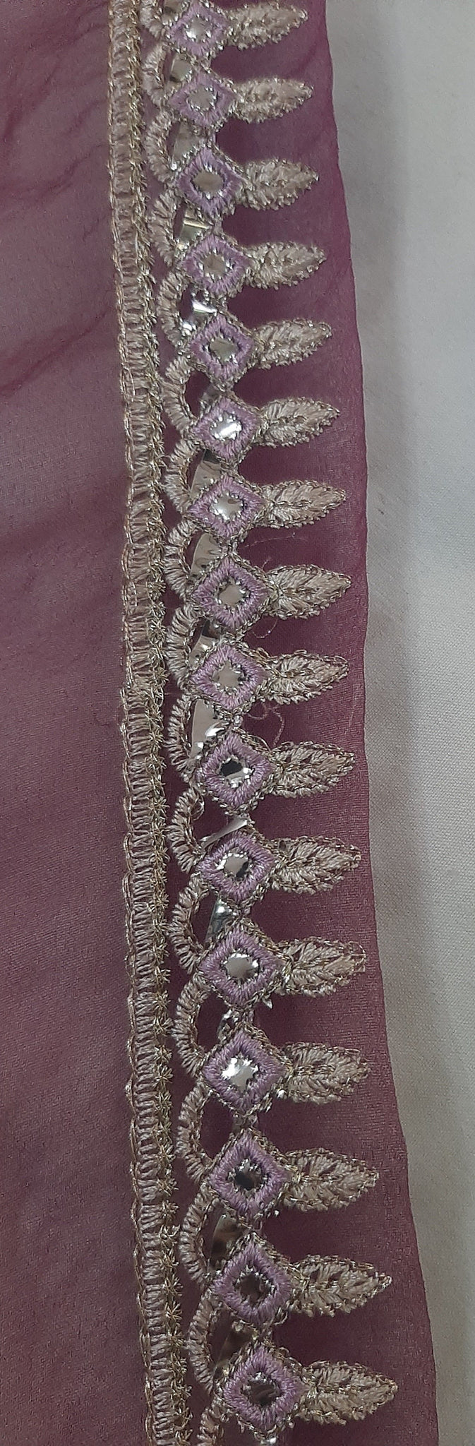Heavily thread and golden tilla embroidered with foil work.