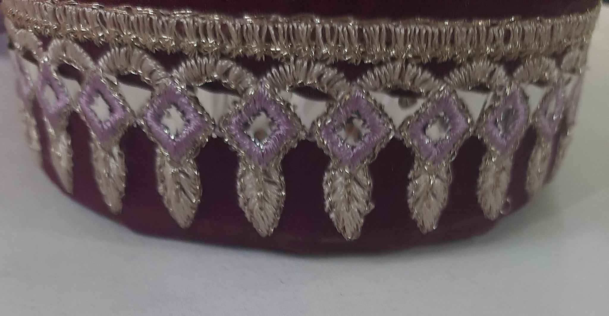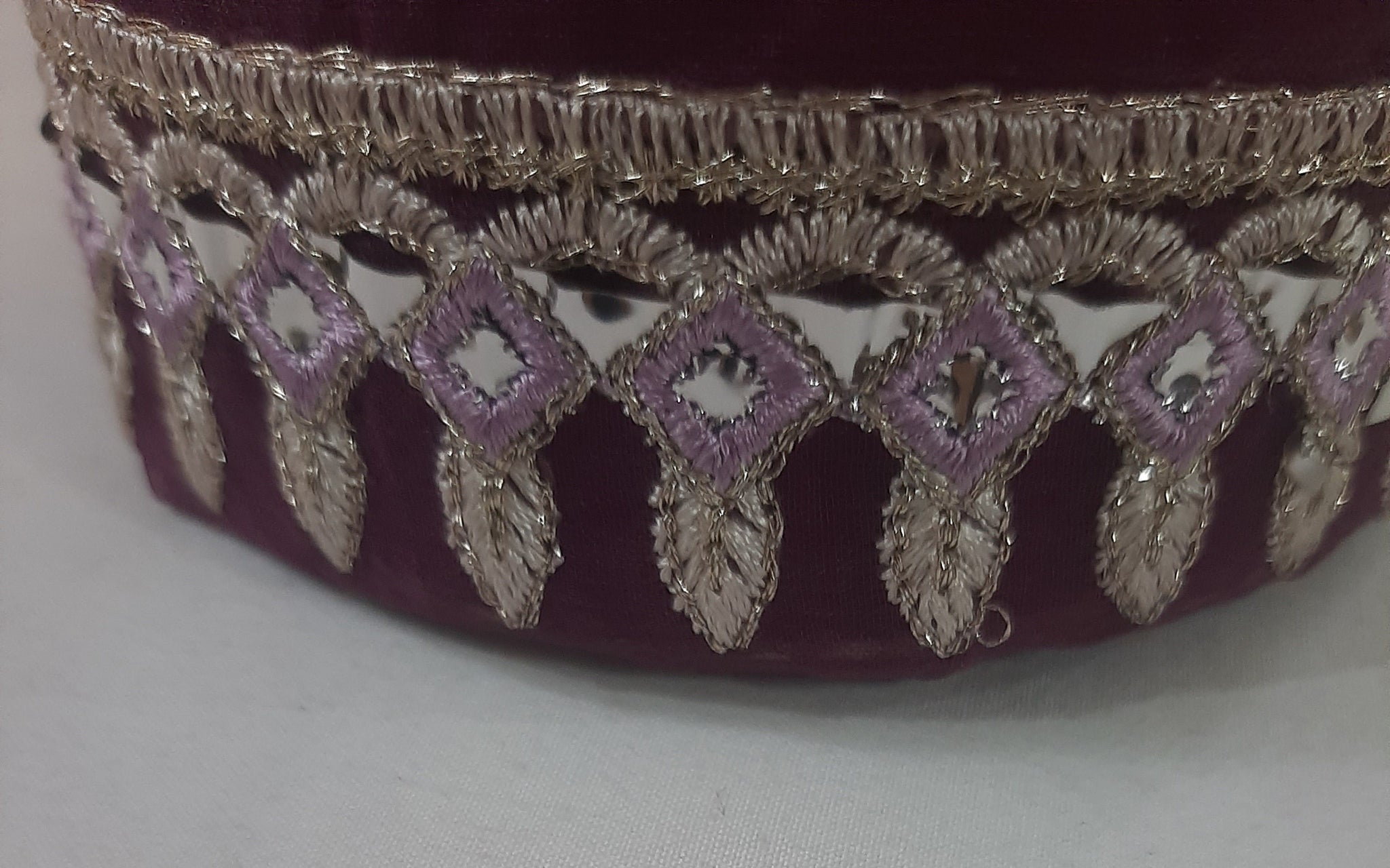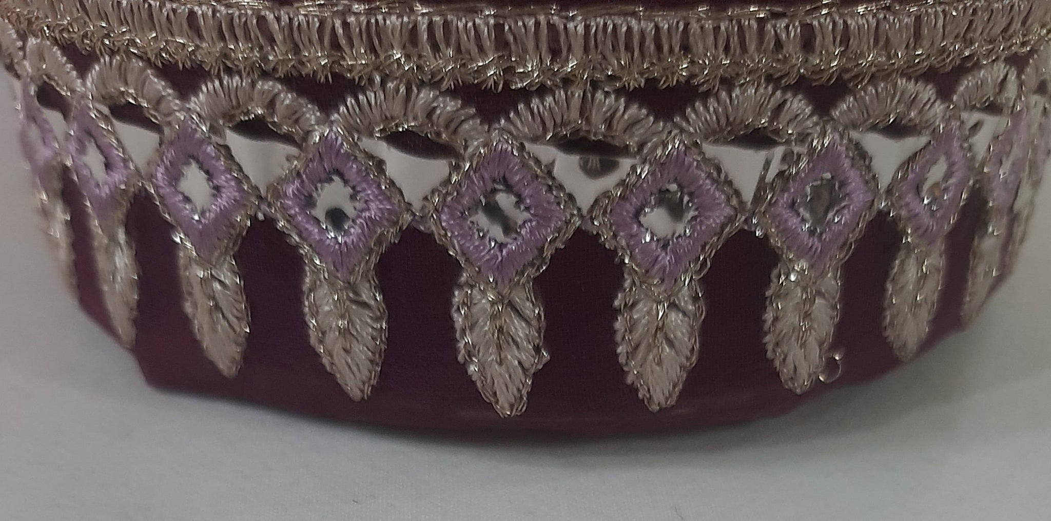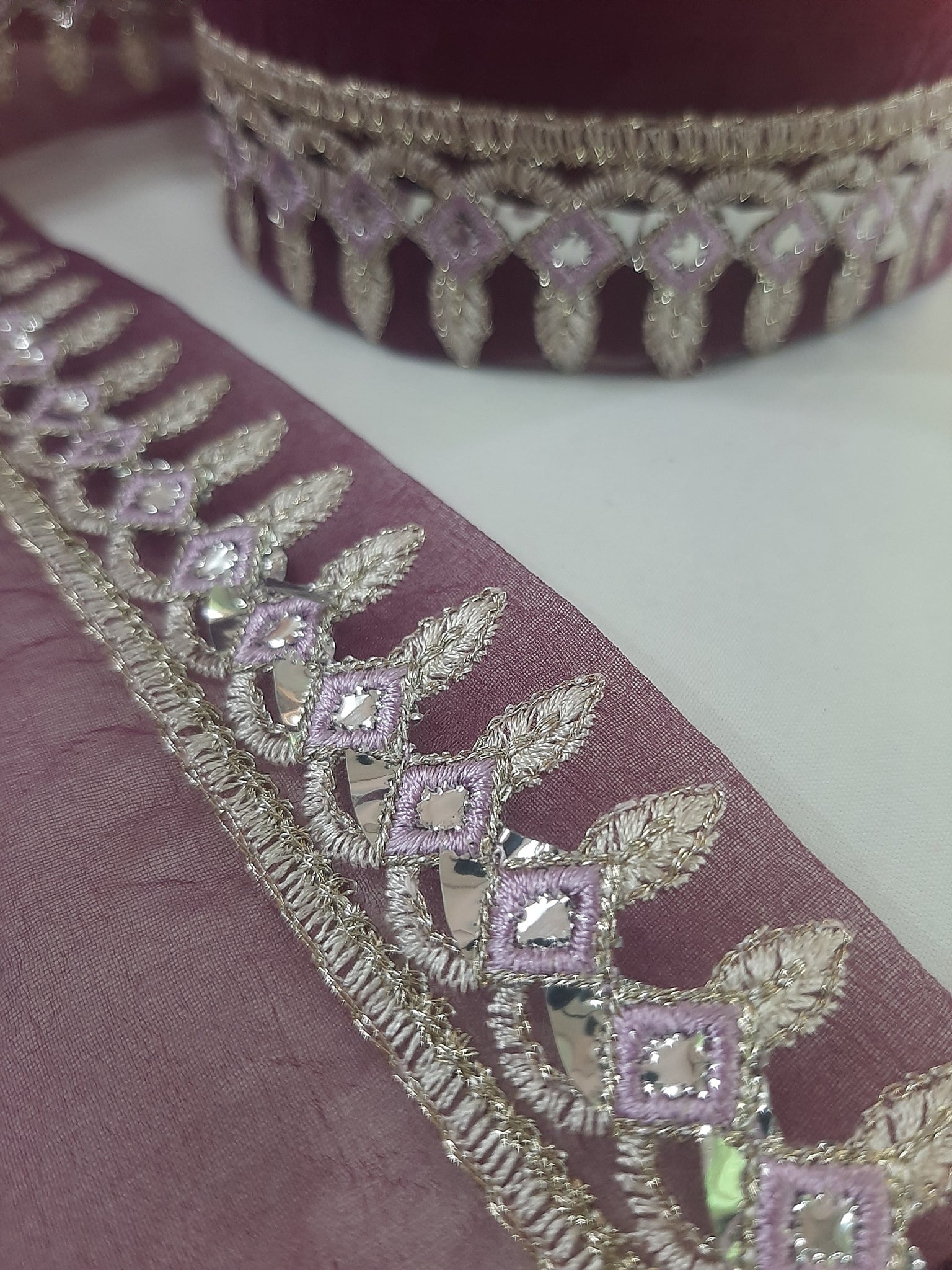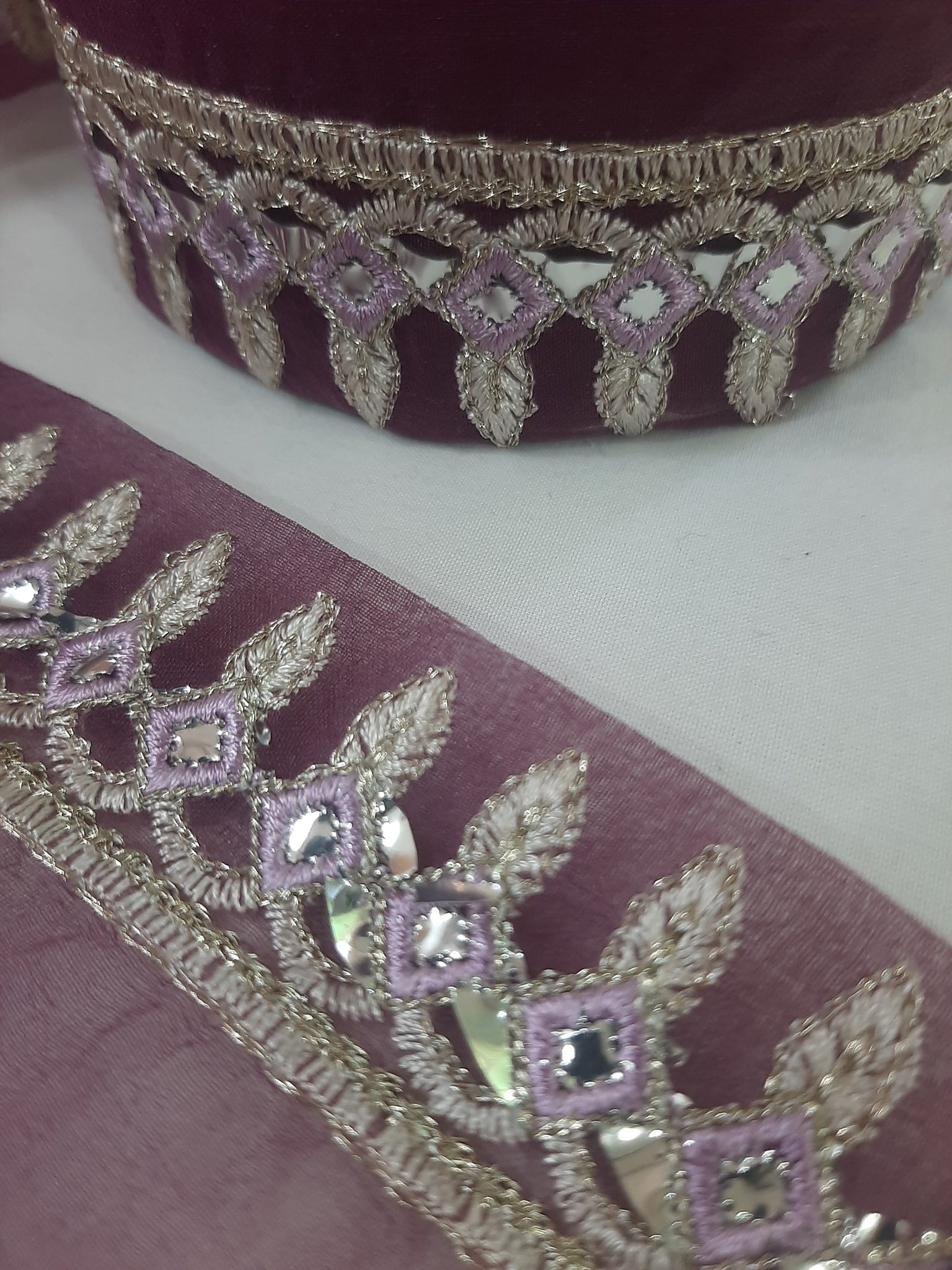 Heavily thread and golden tilla embroidered with foil work.