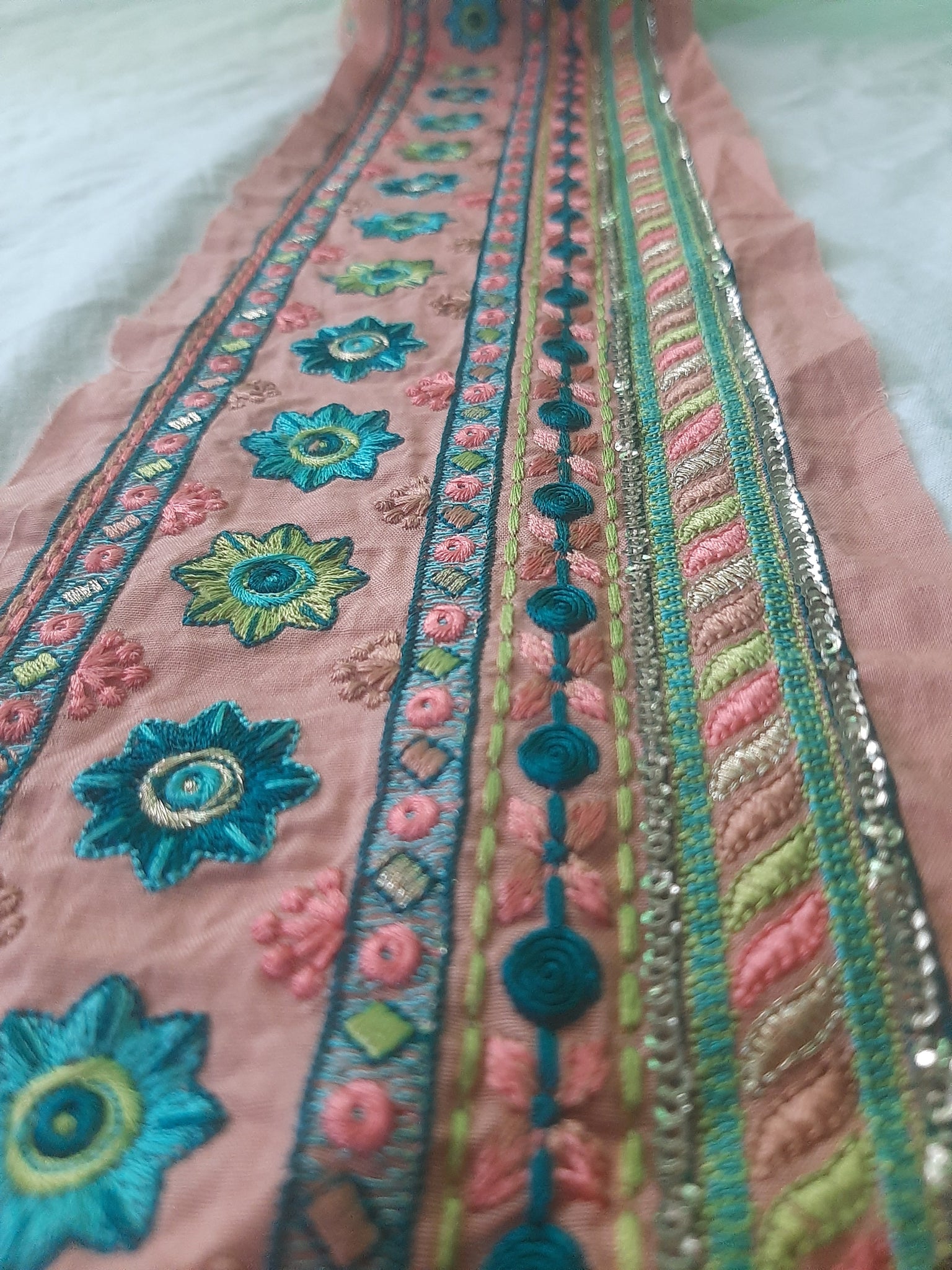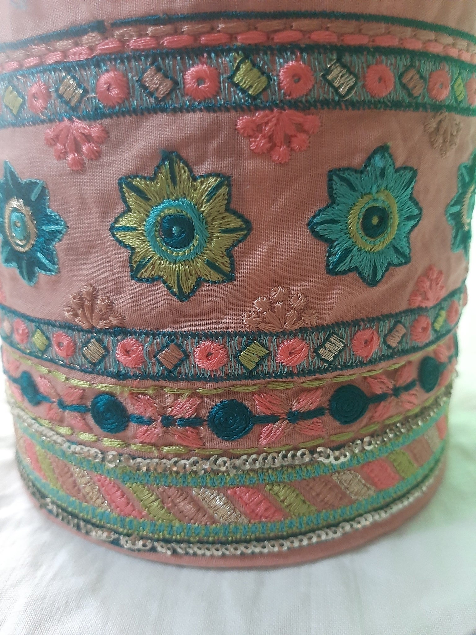 Heavily thread and golden tilla embroidered with golden sequins embellishment.
