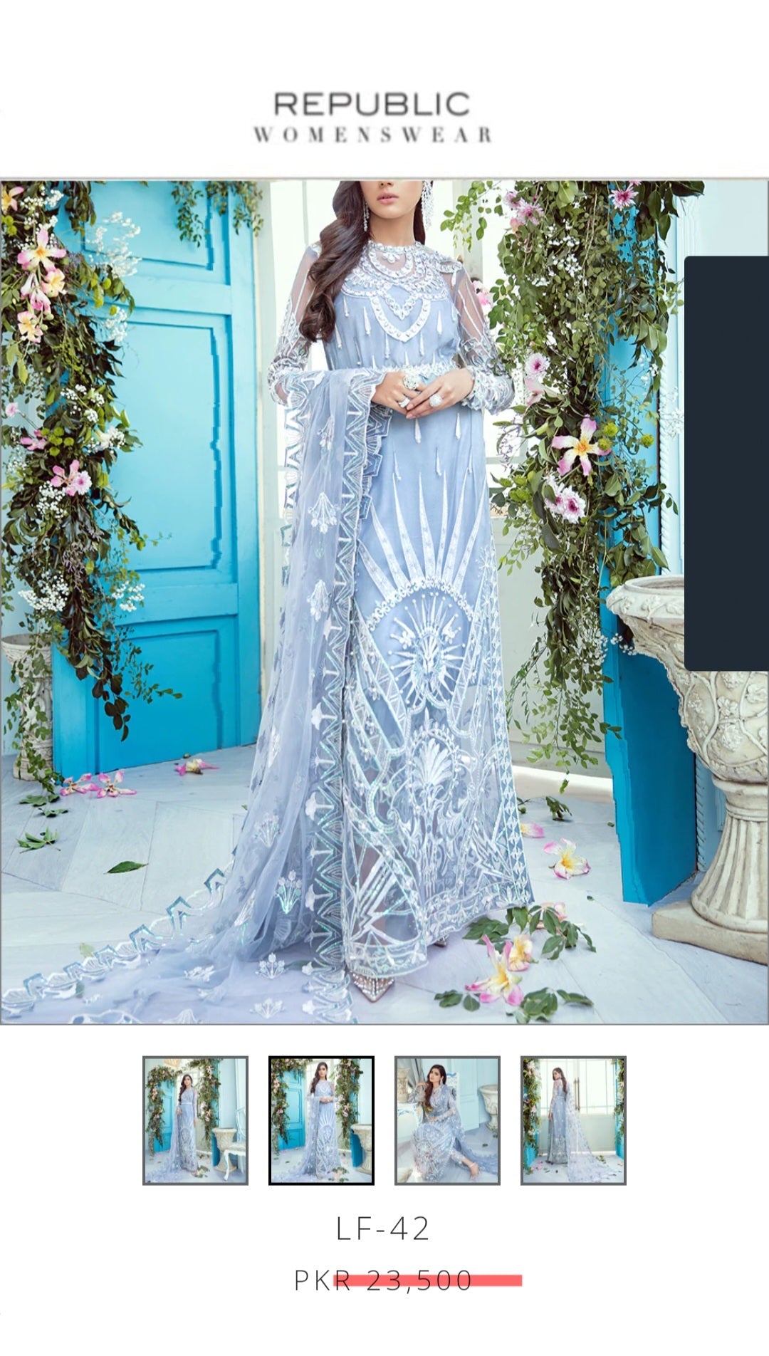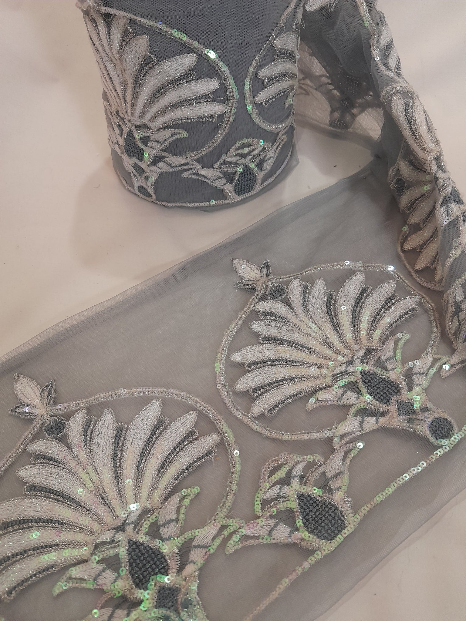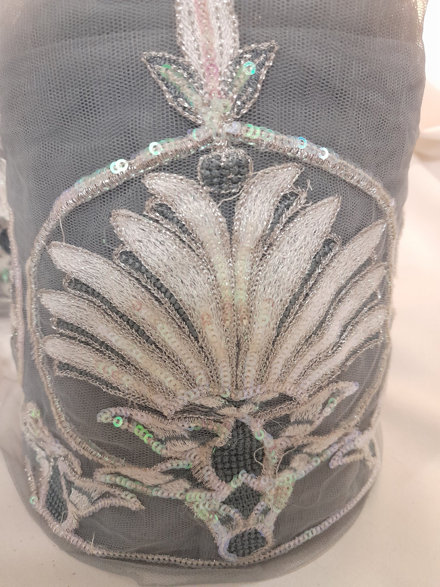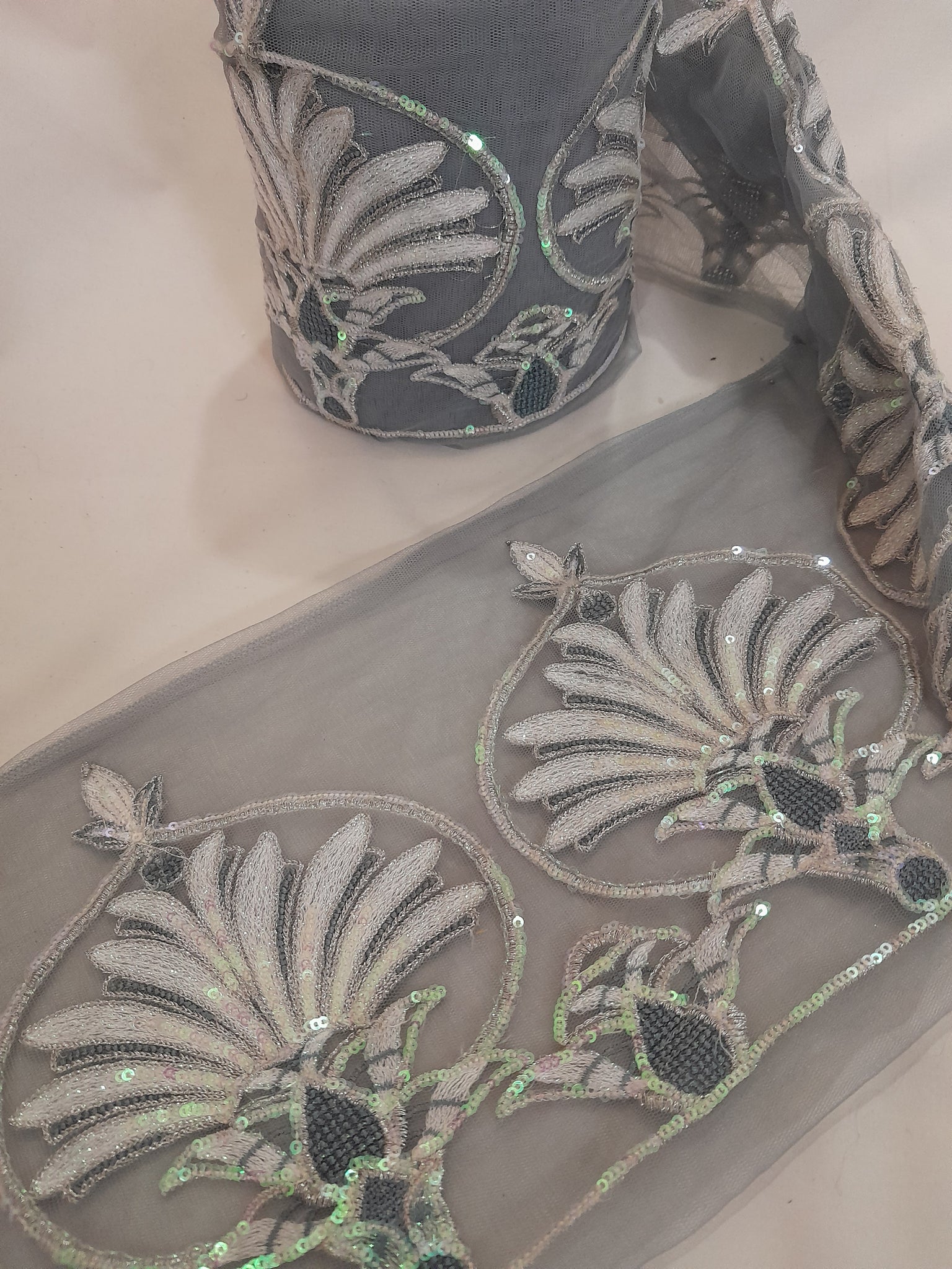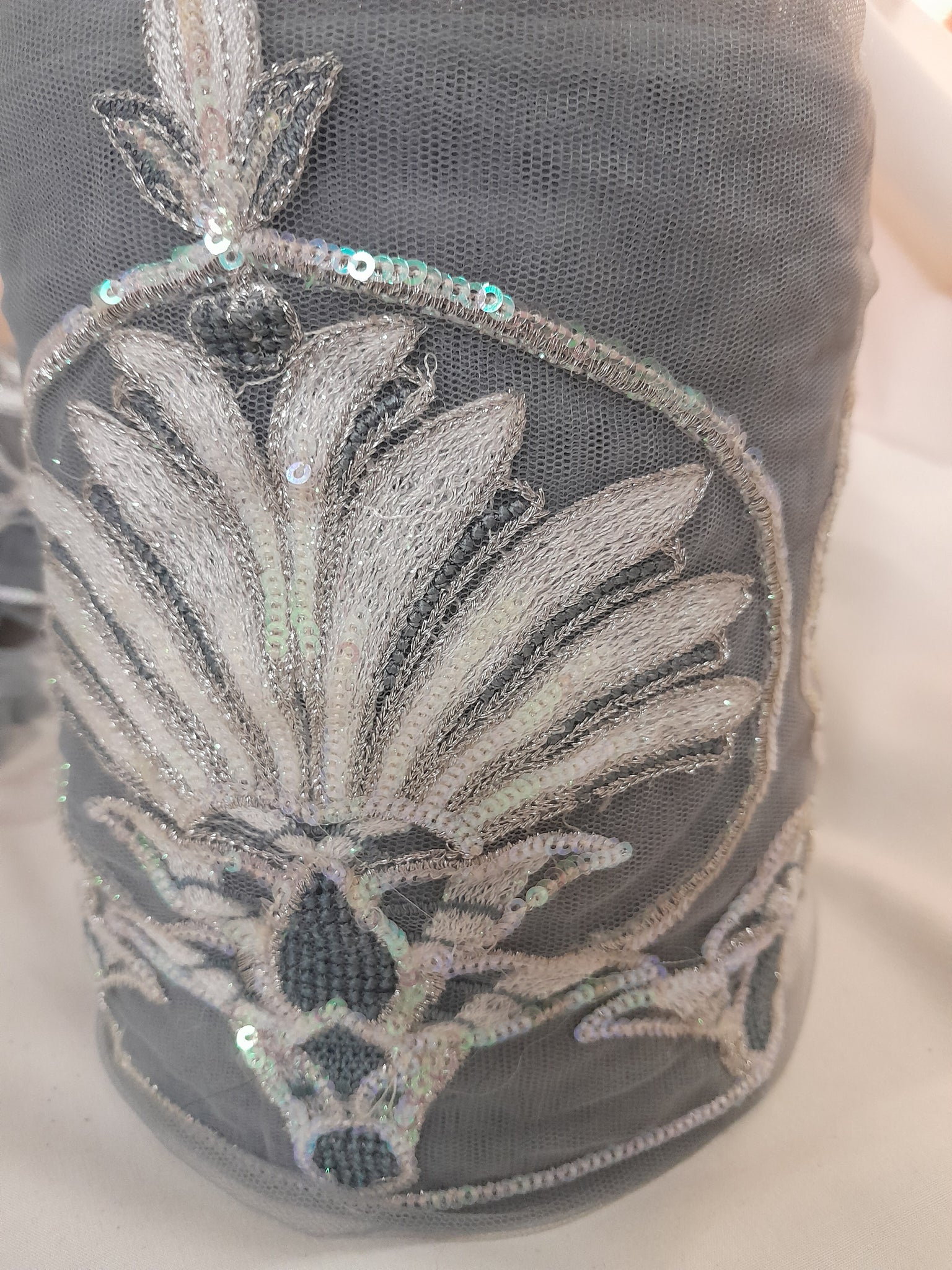 Heavily thread and silver tilla embroidered with watery sequins embellishment.