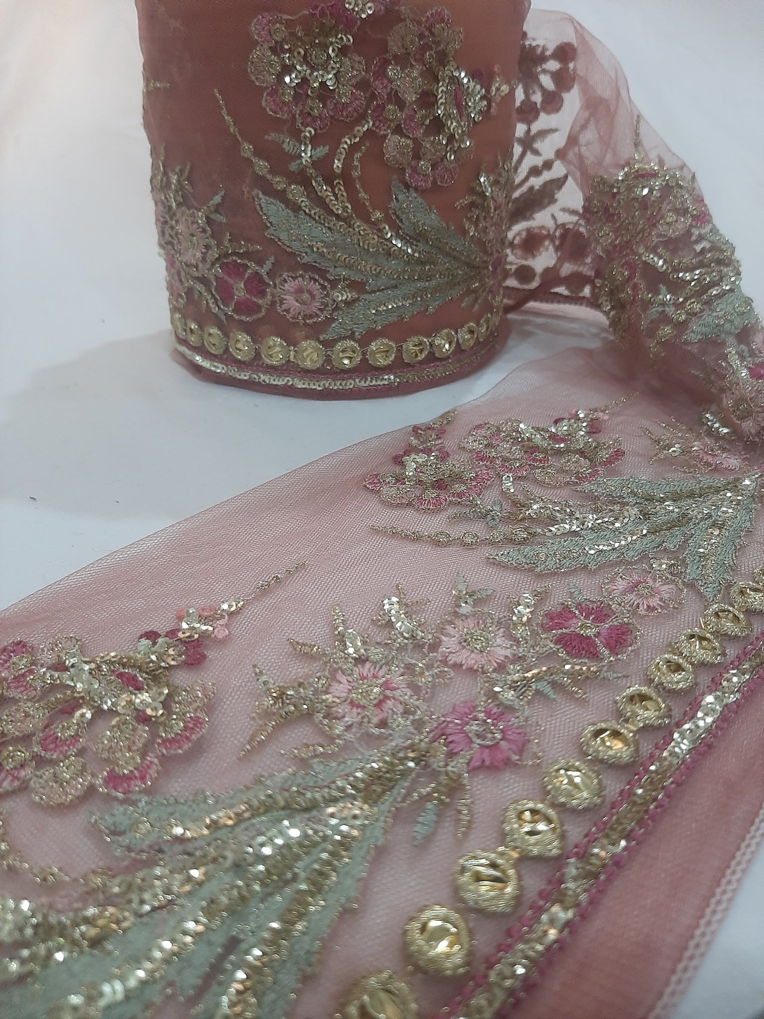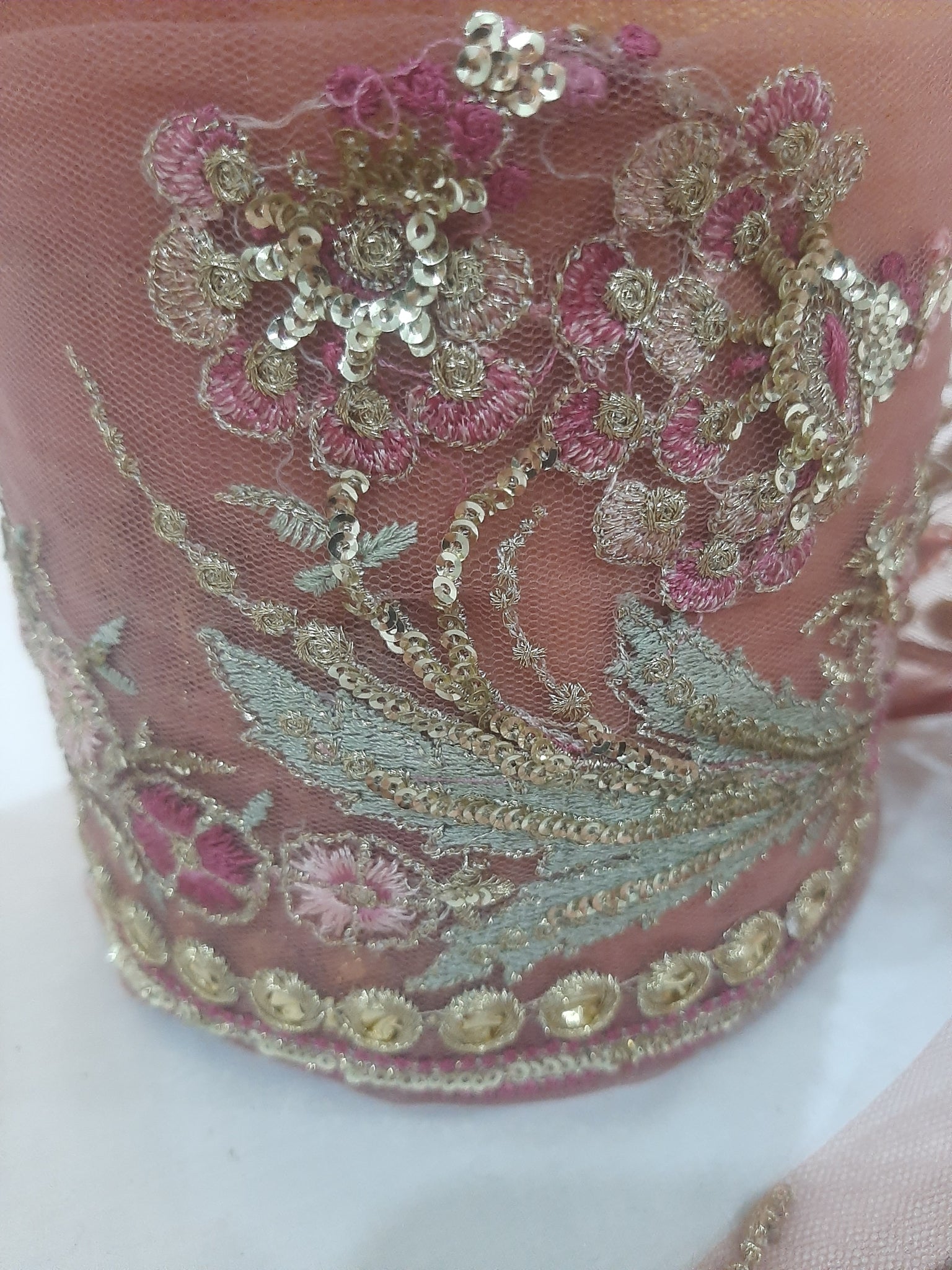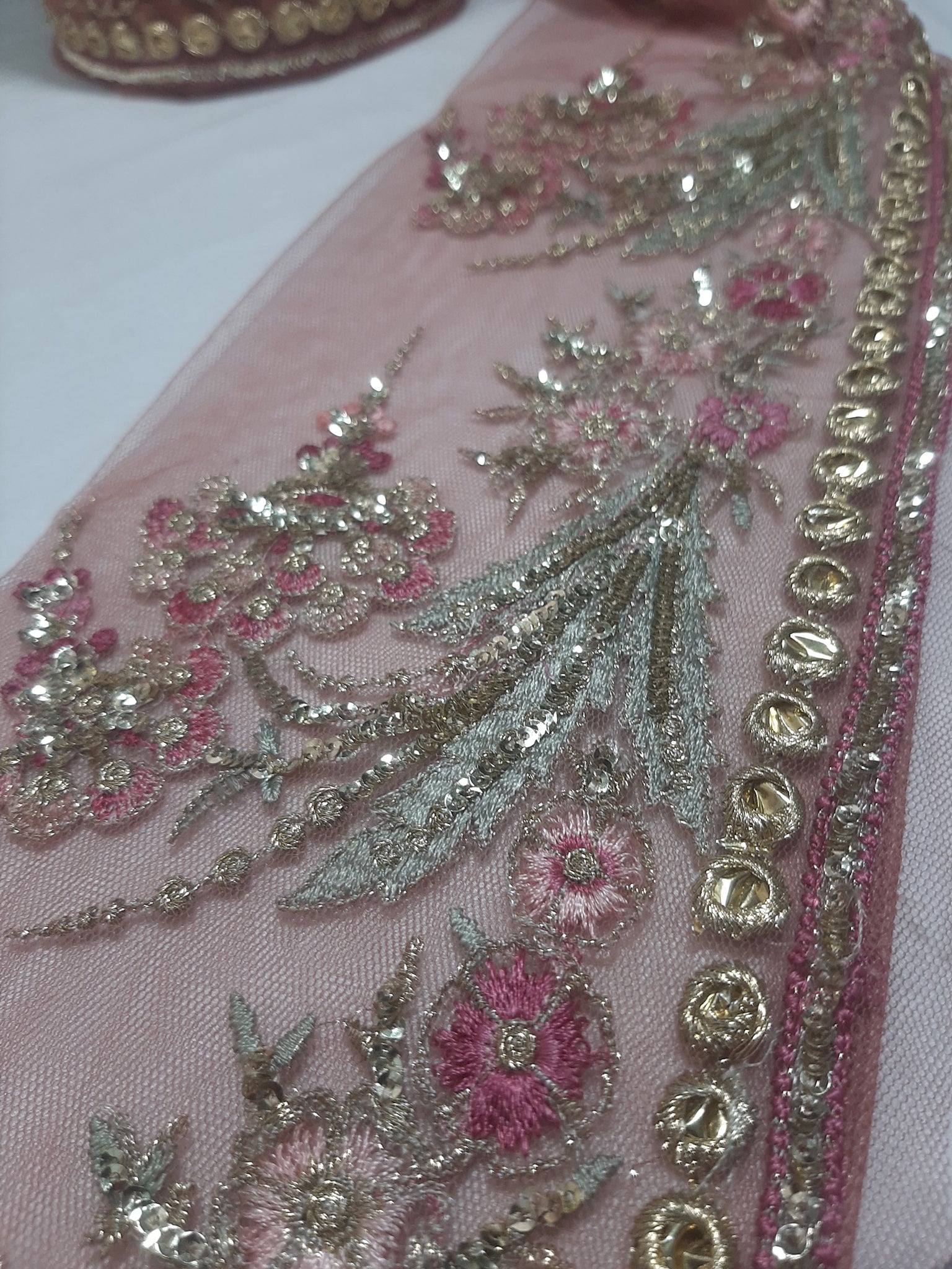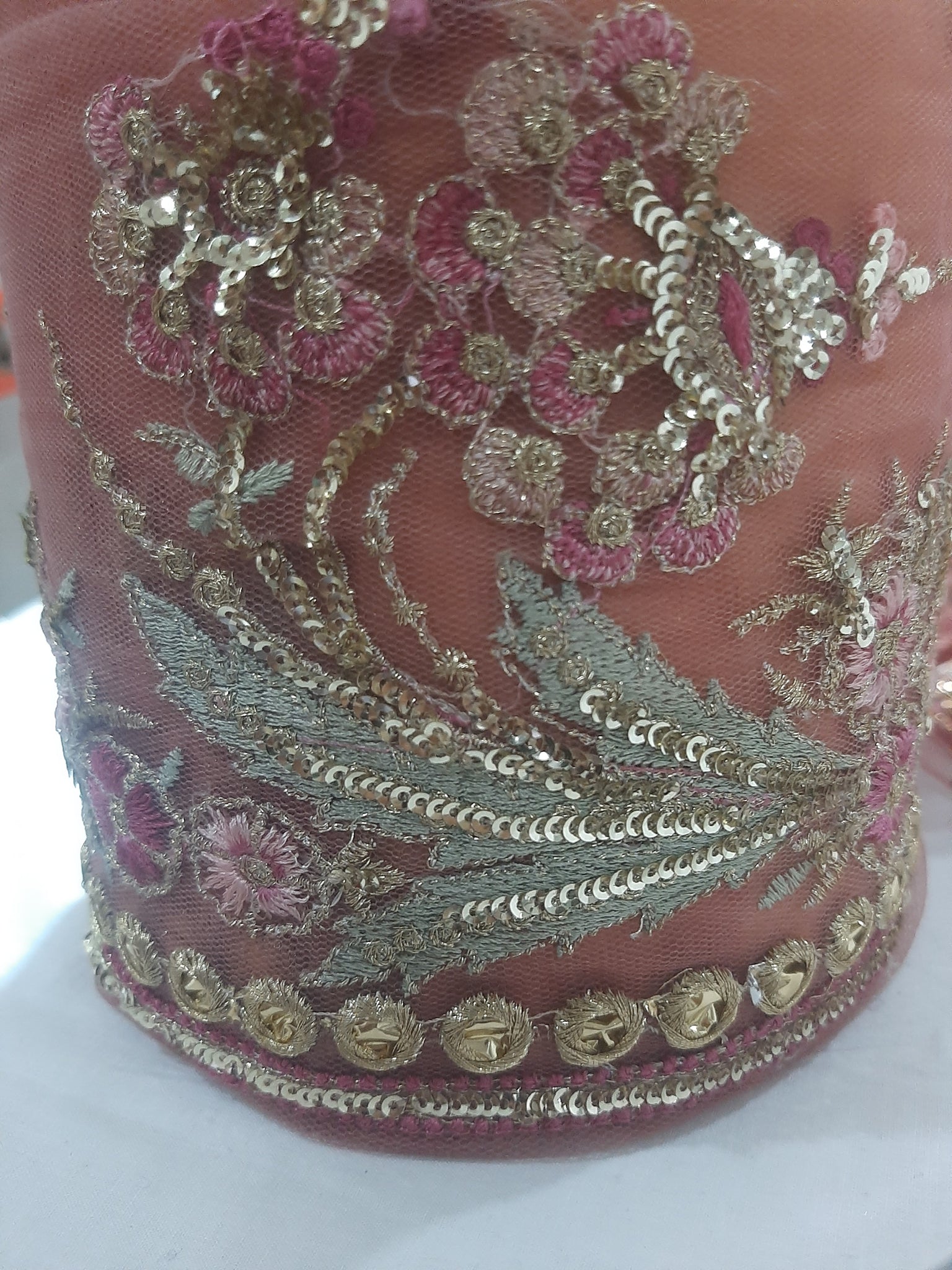 Heavily thread and golden tilla embroidered with golden sequins foil work embellishment.