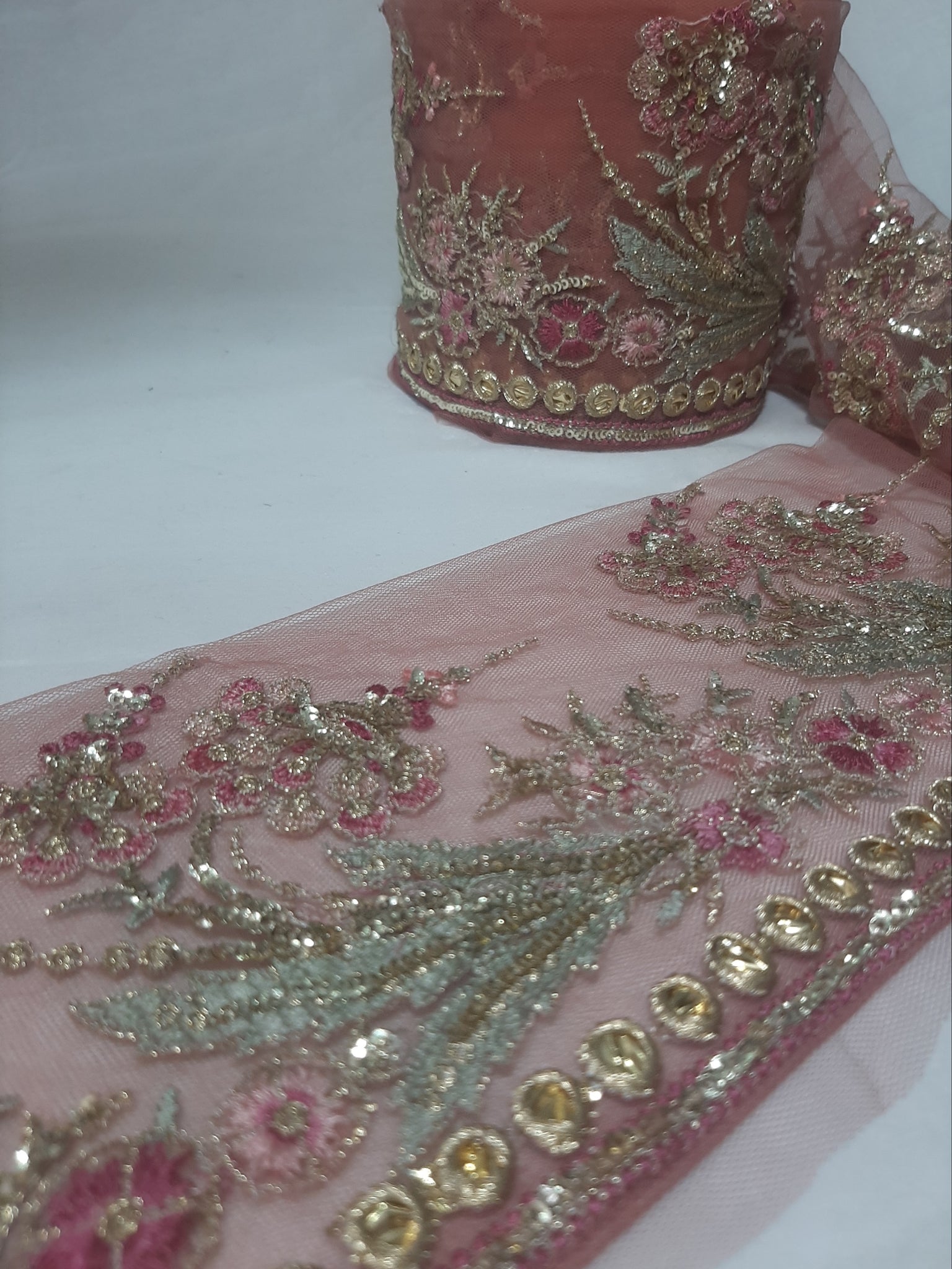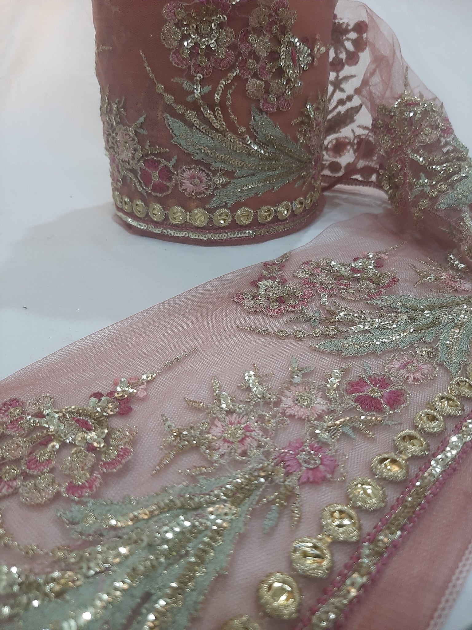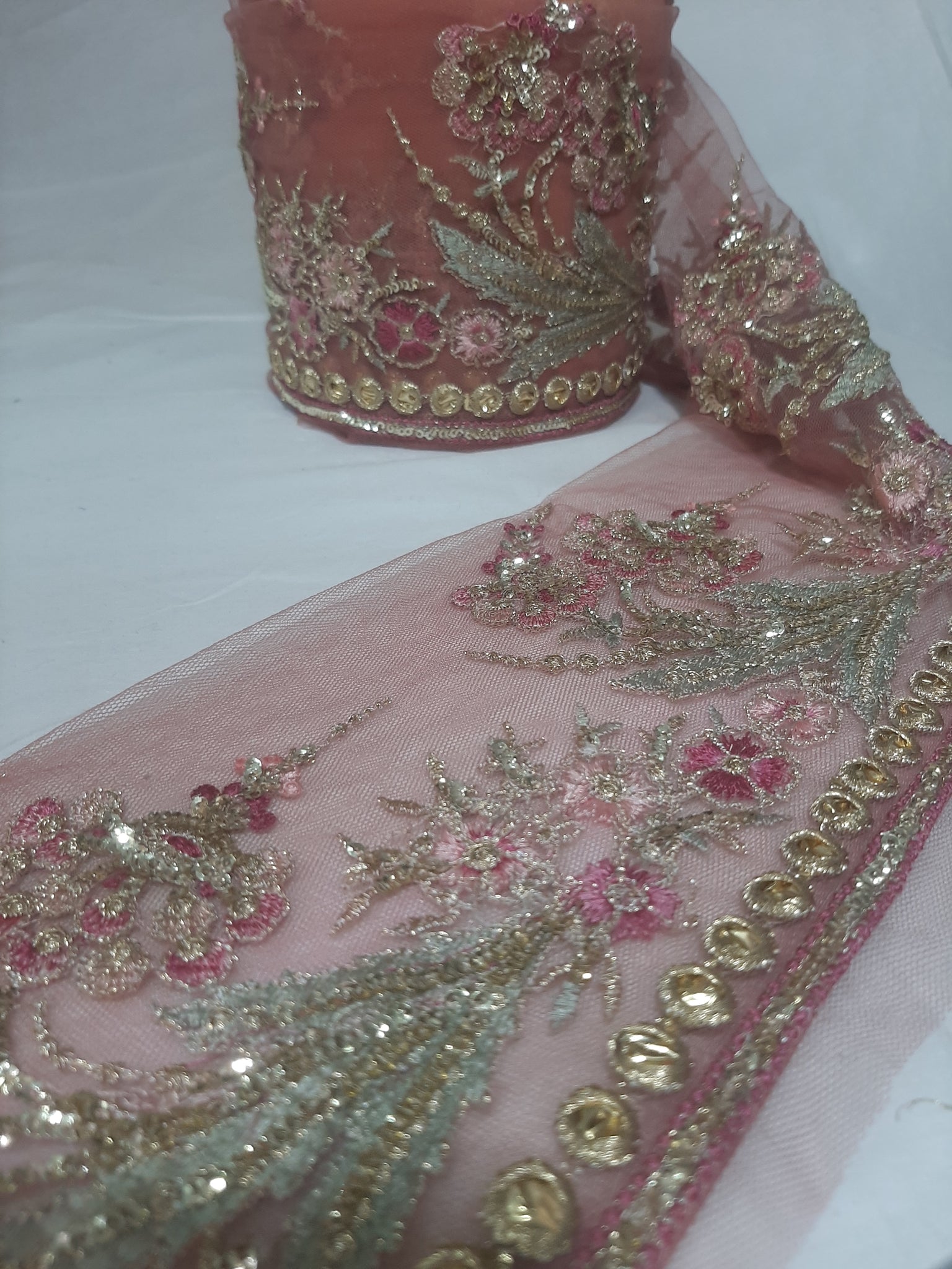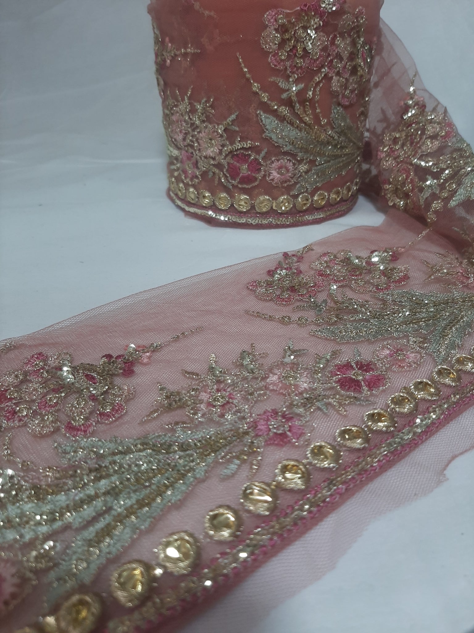Heavily thread and golden tilla embroidered with golden sequins foil work embellishment.