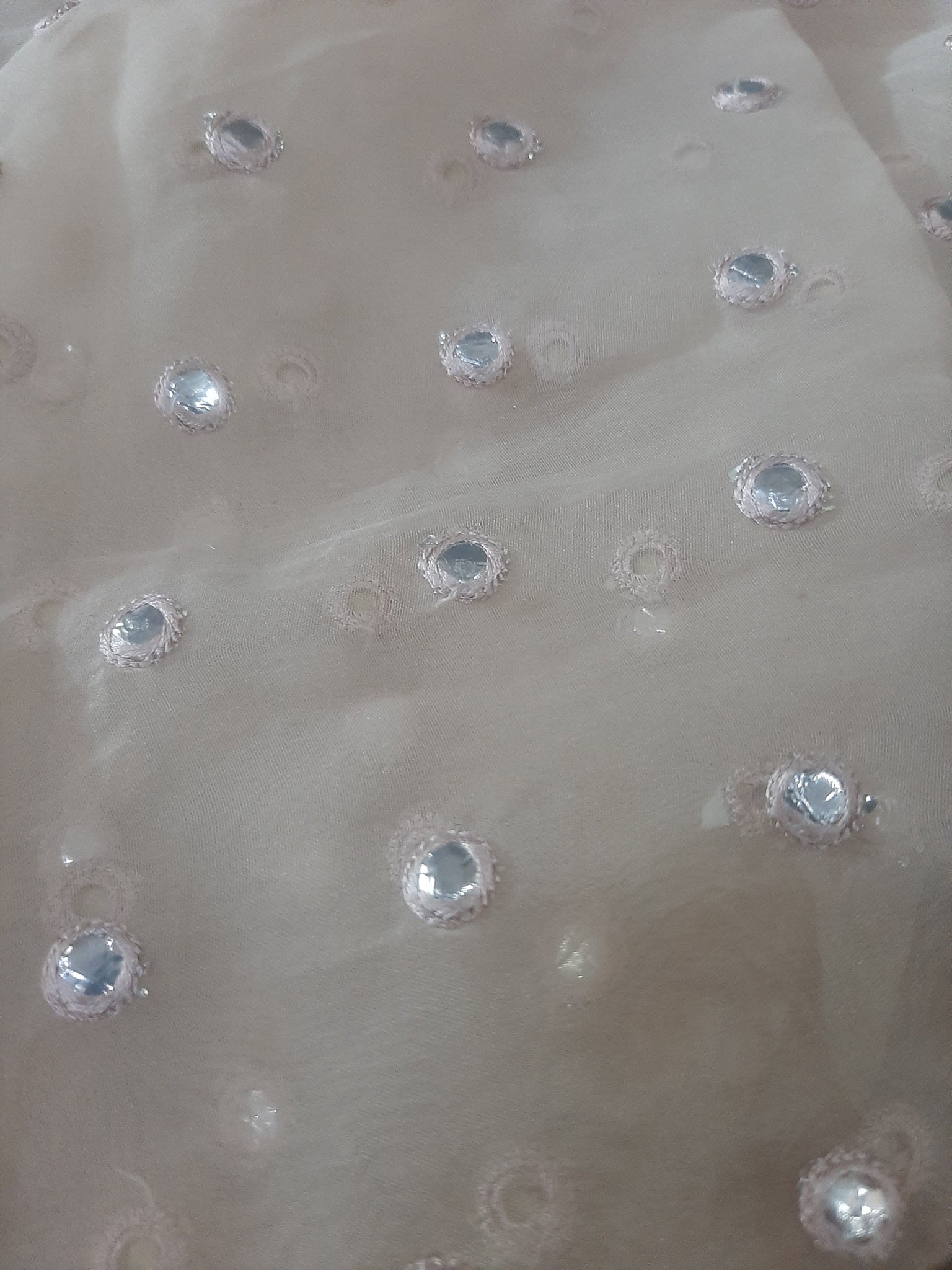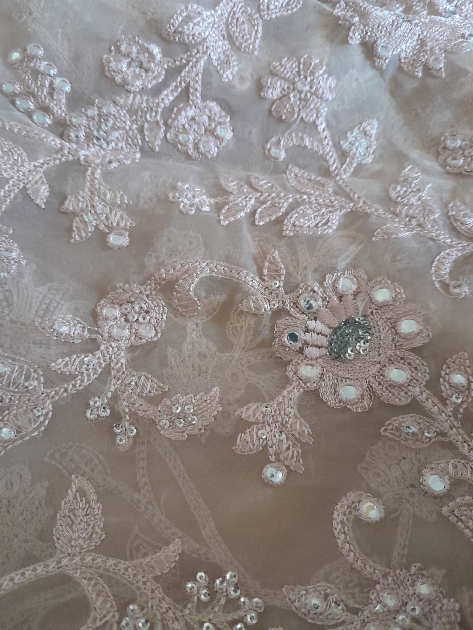 Heavily thread embroidered with silver sequins and  foil work embellishments on three different designs Fabric separately.